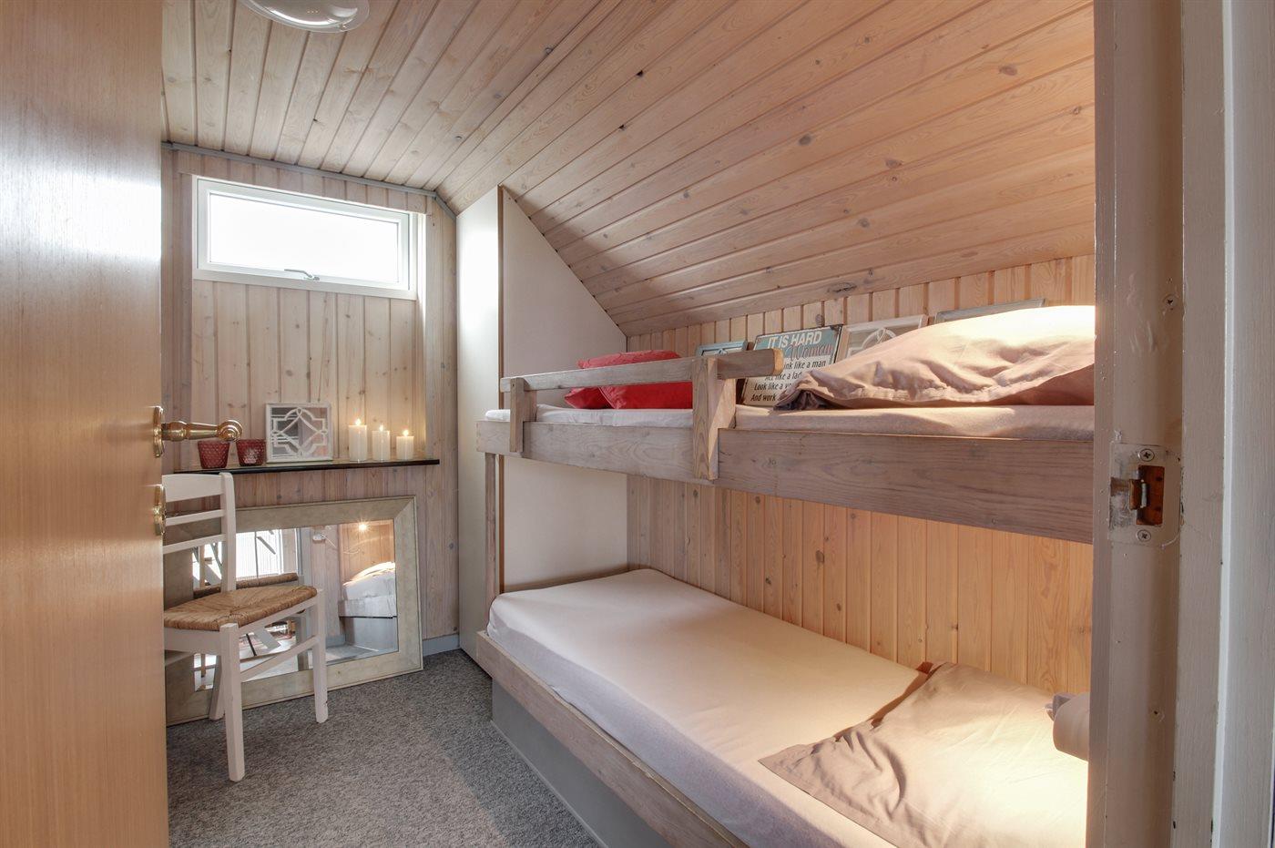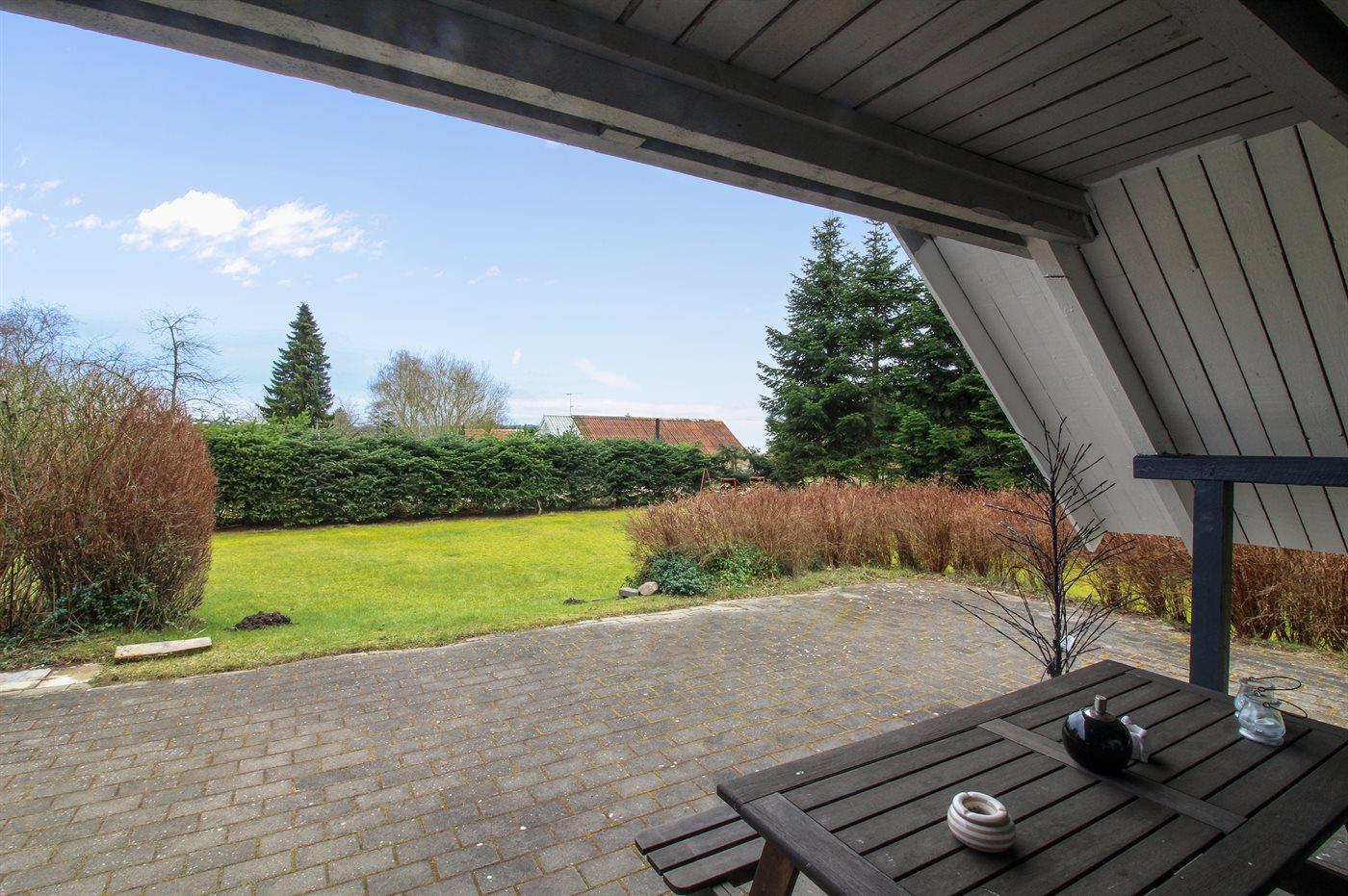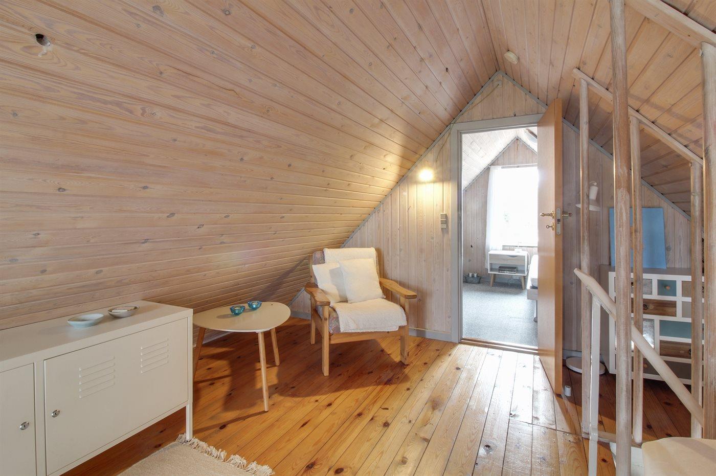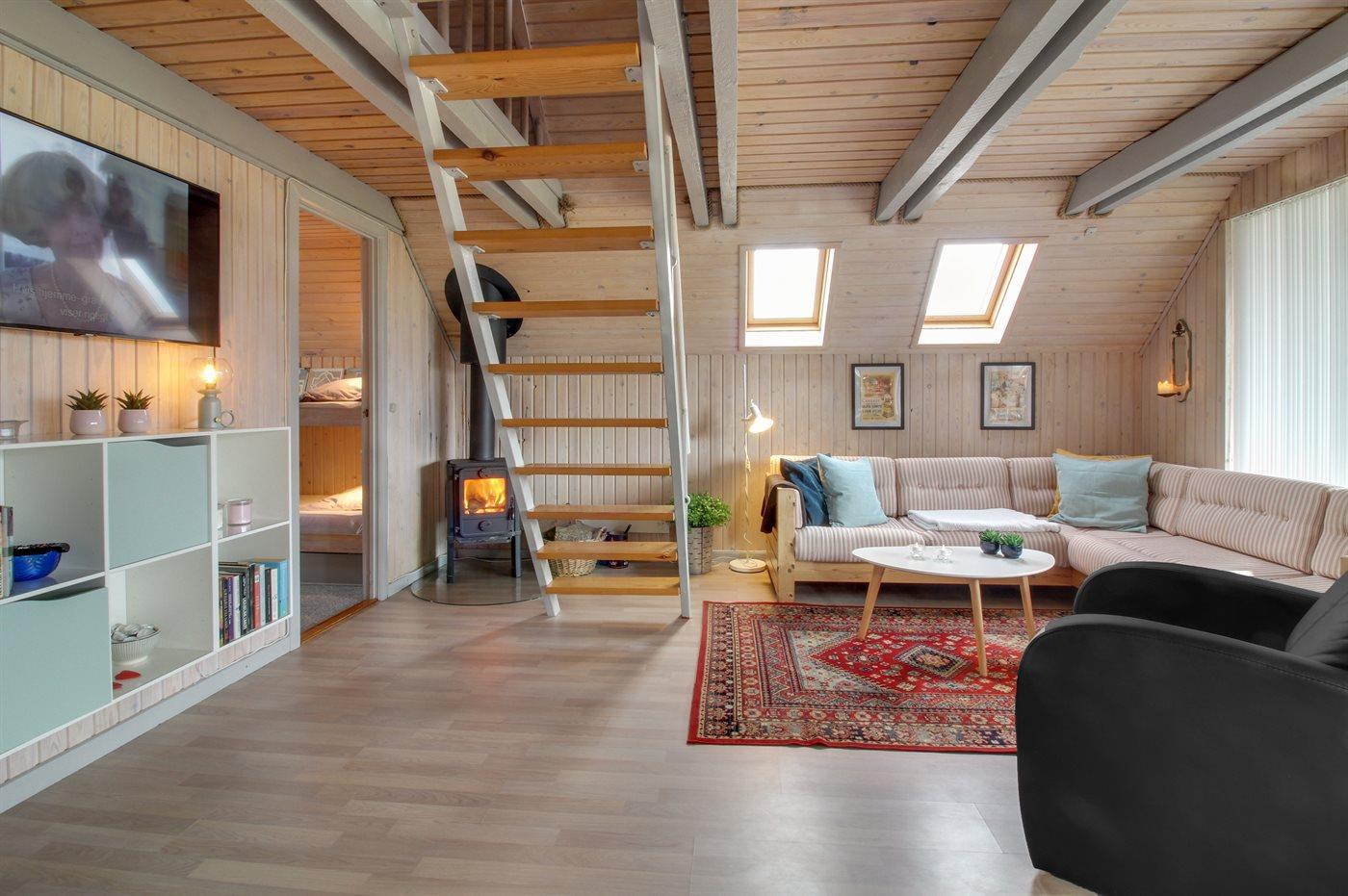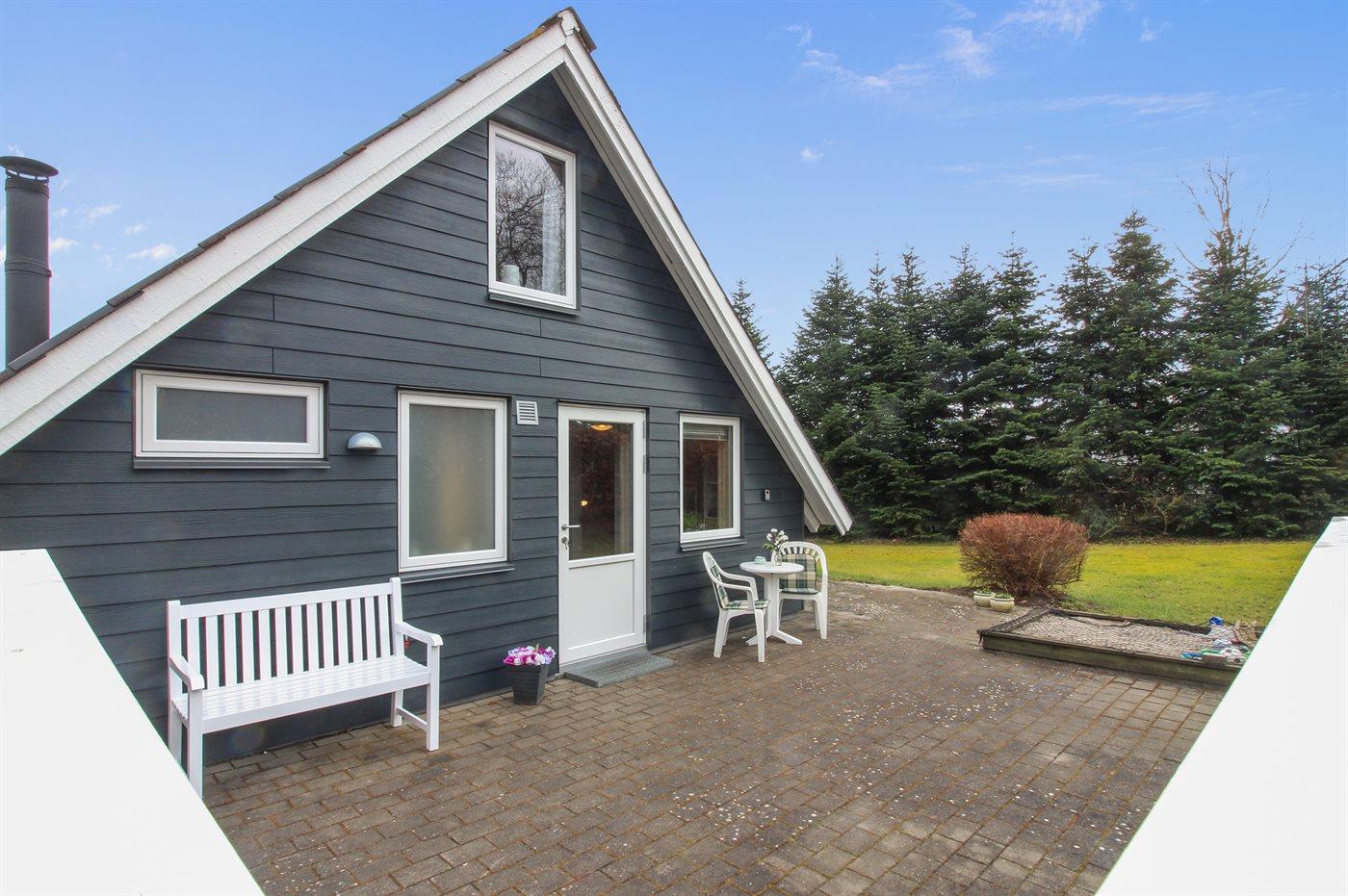 Dieses 2-stöckige Ferienhaus liegt auf einem leicht schrägenden Grundstück, das von Bäumen und Büschen umgeben ist, in einem ruhigen Gebiet dicht am Hjarbæk Fjord gelegen. Im Obergeschoss gibt es 1 Schlafzimmer mit Doppelbett und ein kleines Wohnzimmer.