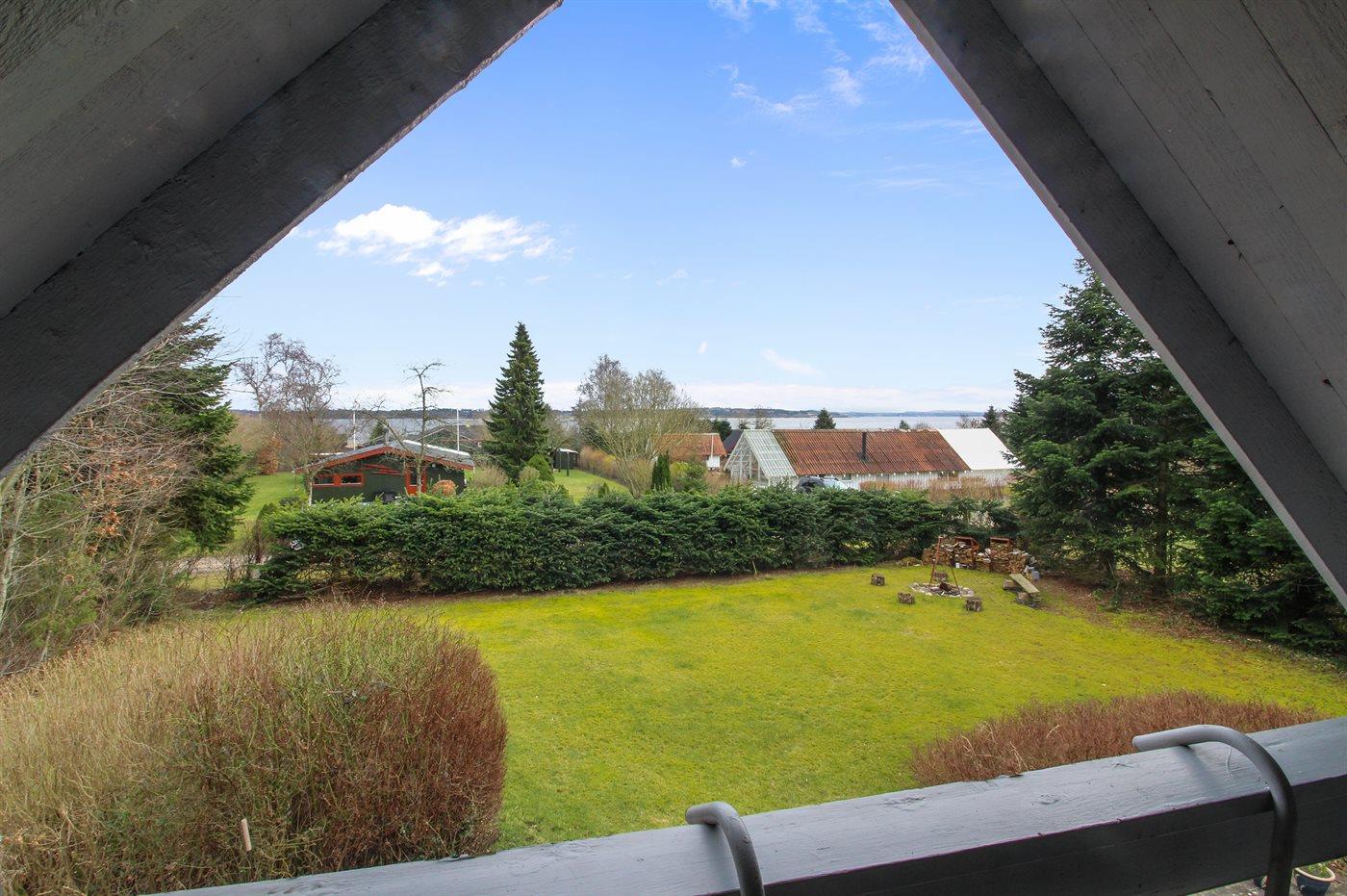Die Ferienunterkunft liegt auf einem 1500 m² großen Naturgrundstück. Die Entfernung zum Fjord beträgt 300 m. Es gibt einen Badesteg in der Nähe. Die nächste Einkaufsmöglichkeit liegt 4000 m entfernt. Es steht ein 100 m² Terrassenareal zur Verfügung. Außerdem gibt es 30 m² überdachte Terrasse.Balkon im Obergeschoss. Sandkasten.Lagerfeuerstelle. Parkplatz auf dem Grundstück.