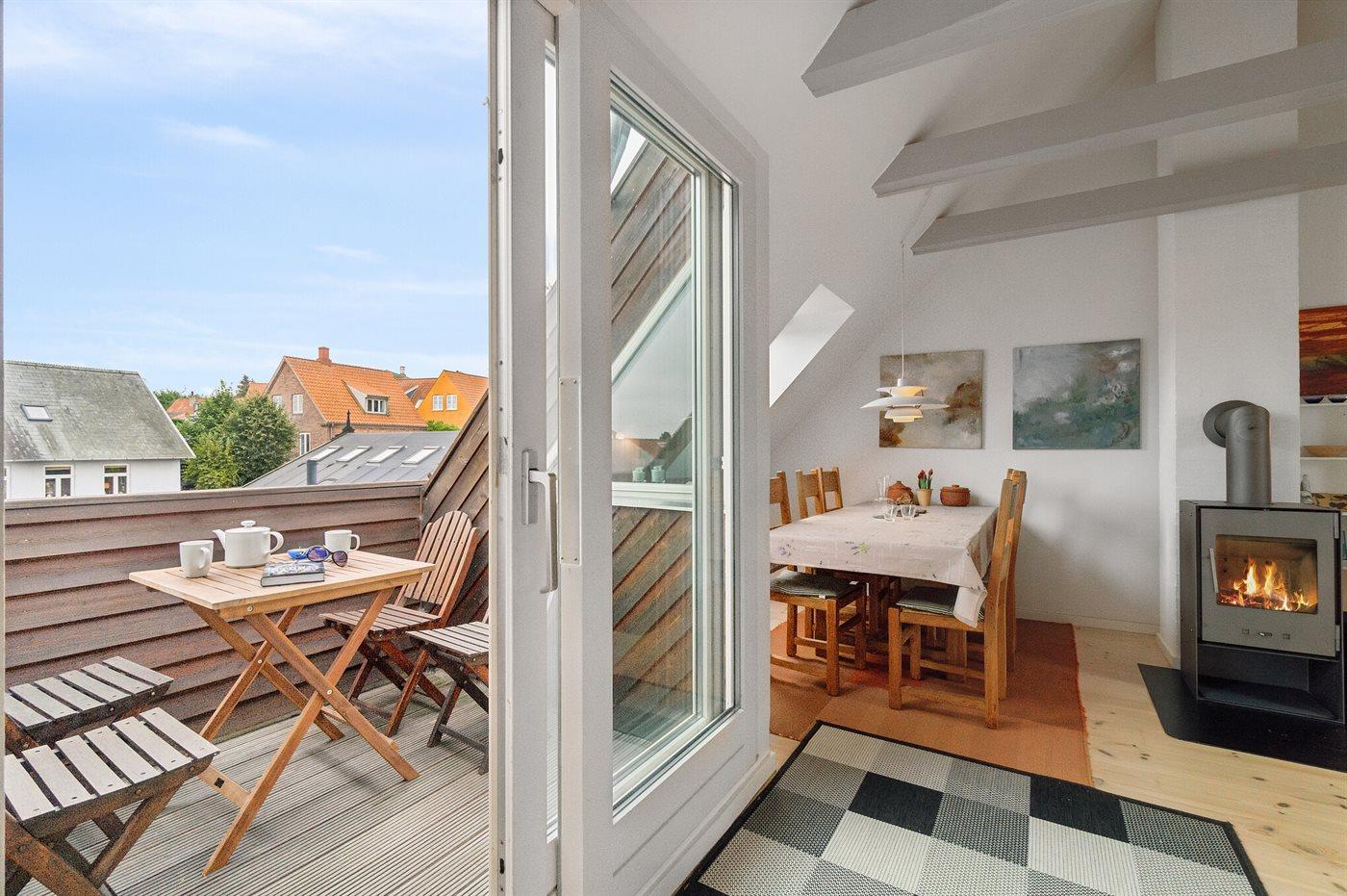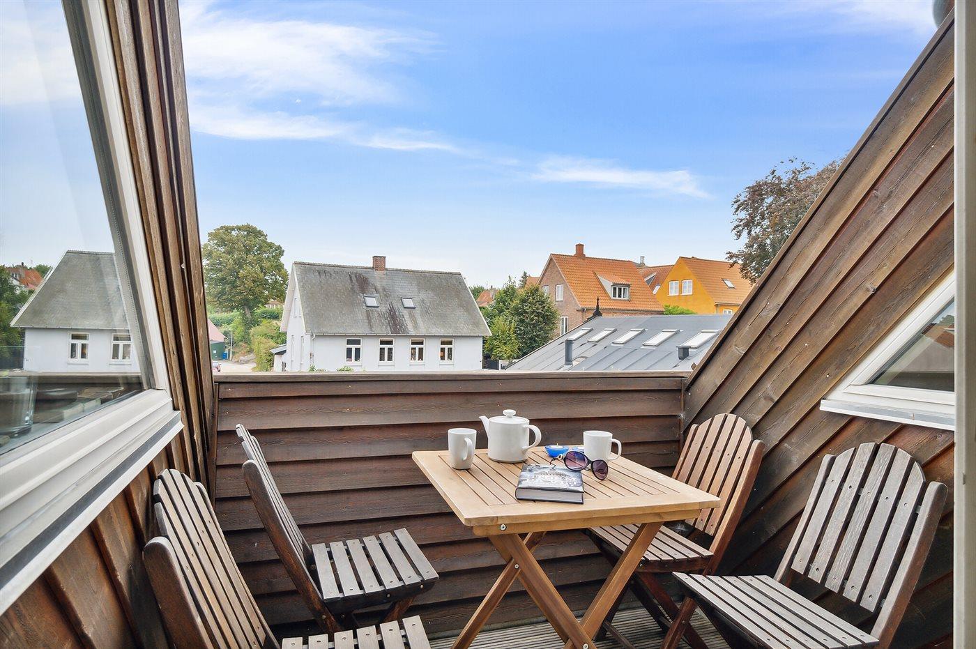 Moderne, gepflegte Ferienwohnung im Herzen von Svaneke, nur 200 m vom Meer entfernt, mit Balkon und Gemeinschaftsgrill.