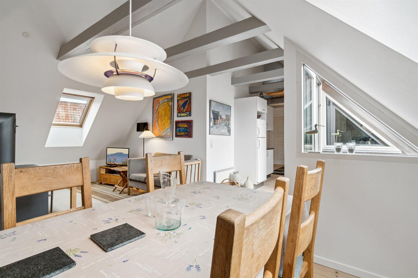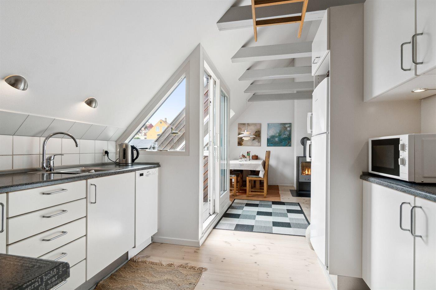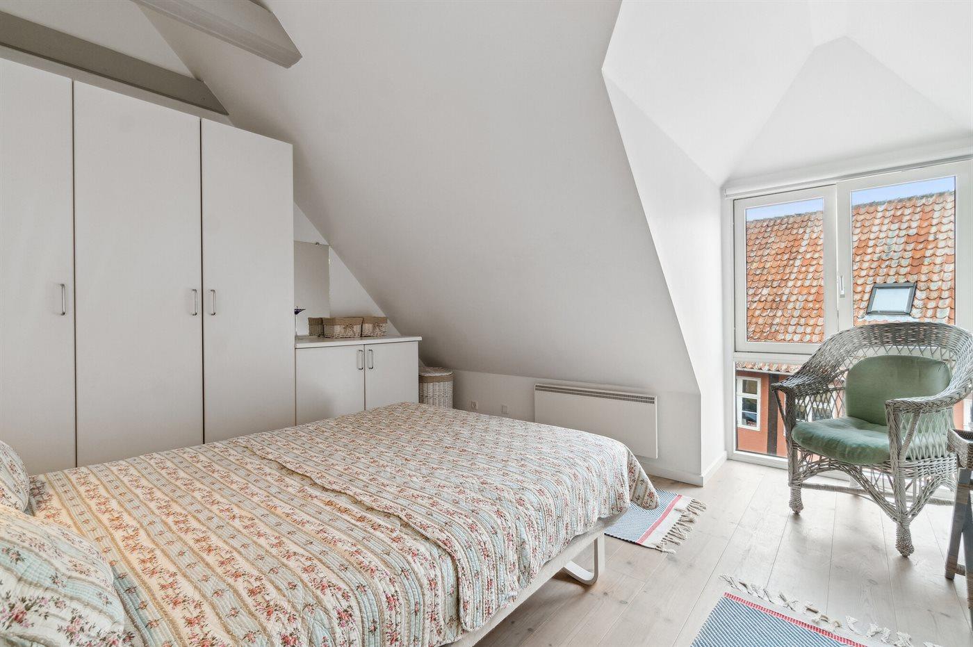 Äußerst gepflegte Ferienwohnung im 1. Stock in einem größeren Stadthaus im Herzen von Svaneke, nahe dem gemütlichen Marktplatz mit Geschäften, Restaurant, Kneipe, Bonbonkocherei und vielem mehr. Den Sommer in der alten Kaufstadt zu genießen bedeutet, dass es hier viel Leben gibt - auch unten am gemütlichen Hafen, wo man sowohl Fischgerichte als auch gehobene Küche in einigen der Restaurants genießen kann, die eine wunderschöne Aussicht auf den Hafen und das Meer bieten. Ein Ausflug zur Hullehavn mit Sprungbrett, kleinem Sandstrand und dem Treiben bei "Øst for Paradis", dem kleinen lebendigen Café, lohnt sich ebenfalls.