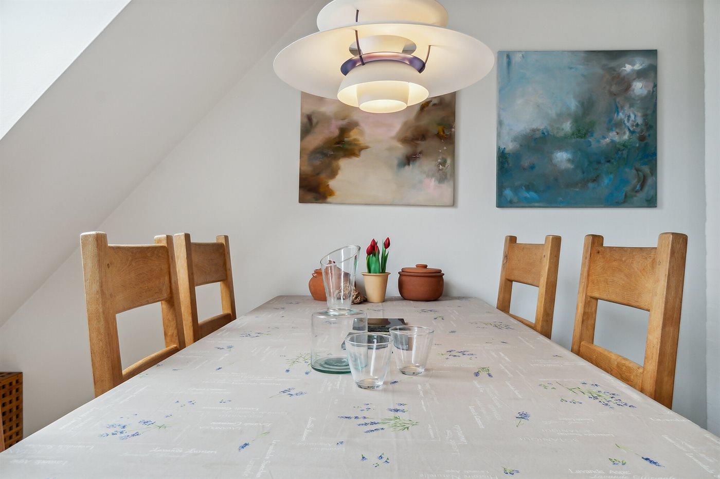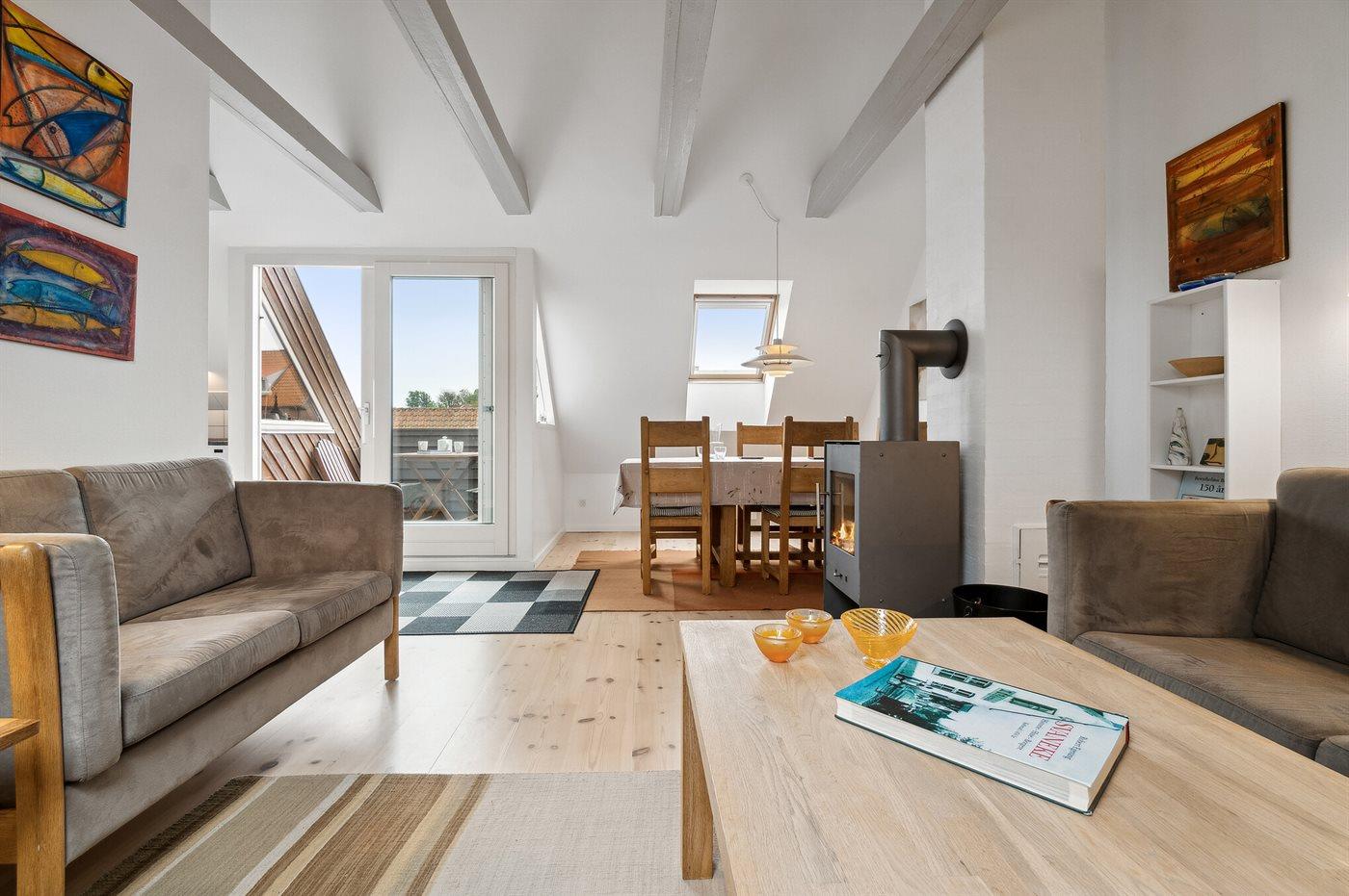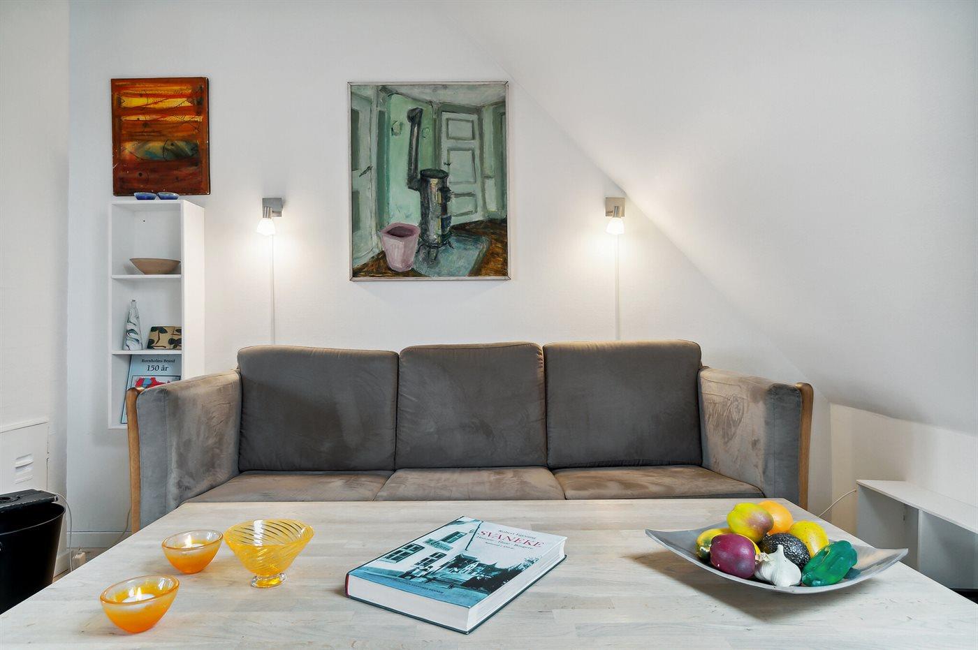 Äußerst gepflegte Ferienwohnung im 1. Stock in einem größeren Stadthaus im Herzen von Svaneke, nahe dem gemütlichen Marktplatz mit Geschäften, Restaurant, Kneipe, Bonbonkocherei und vielem mehr. Den Sommer in der alten Kaufstadt zu genießen bedeutet, dass es hier viel Leben gibt - auch unten am gemütlichen Hafen, wo man sowohl Fischgerichte als auch gehobene Küche in einigen der Restaurants genießen kann, die eine wunderschöne Aussicht auf den Hafen und das Meer bieten. Ein Ausflug zur Hullehavn mit Sprungbrett, kleinem Sandstrand und dem Treiben bei "Øst for Paradis", dem kleinen lebendigen Café, lohnt sich ebenfalls.