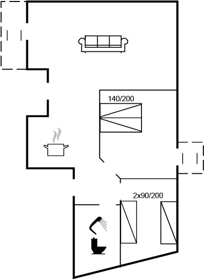 Diese Ferienwohnung eignet sich für 4 Personen. Die Ferienunterkunft hat eine Wohnfläche von 77 m² und wurde 1967 gebaut. 2004 wurde die Ferienunterkunft renoviert. Haustiere dürfen nicht mitgebracht werden. Die Ferienunterkunft ist mit Waschmaschine ausgestattet. Tiefkühlmöglichkeit mit 30 Liter Nutzinhalt. Es gibt außerdem einen Kaminofen.