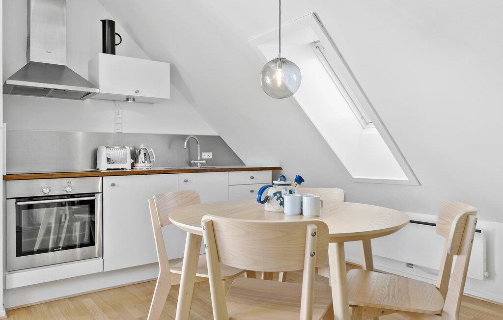 In einem historischen Fachwerkhaus am Hafen in Svaneke erwartet Sie diese helle und geschmackvoll eingerichtete Wohnung. Lassen Sie sich von der liebevollen Dekoration und den stilvollen Möbeln bezaubern, die eine warme und behagliche Atmosphäre schaffen. Beginnen Sie den Tag mit einem gemütlichen Frühstück auf Ihrem Balkon, nachdem Sie vielleicht ein paar Runden im Pool gedreht haben.