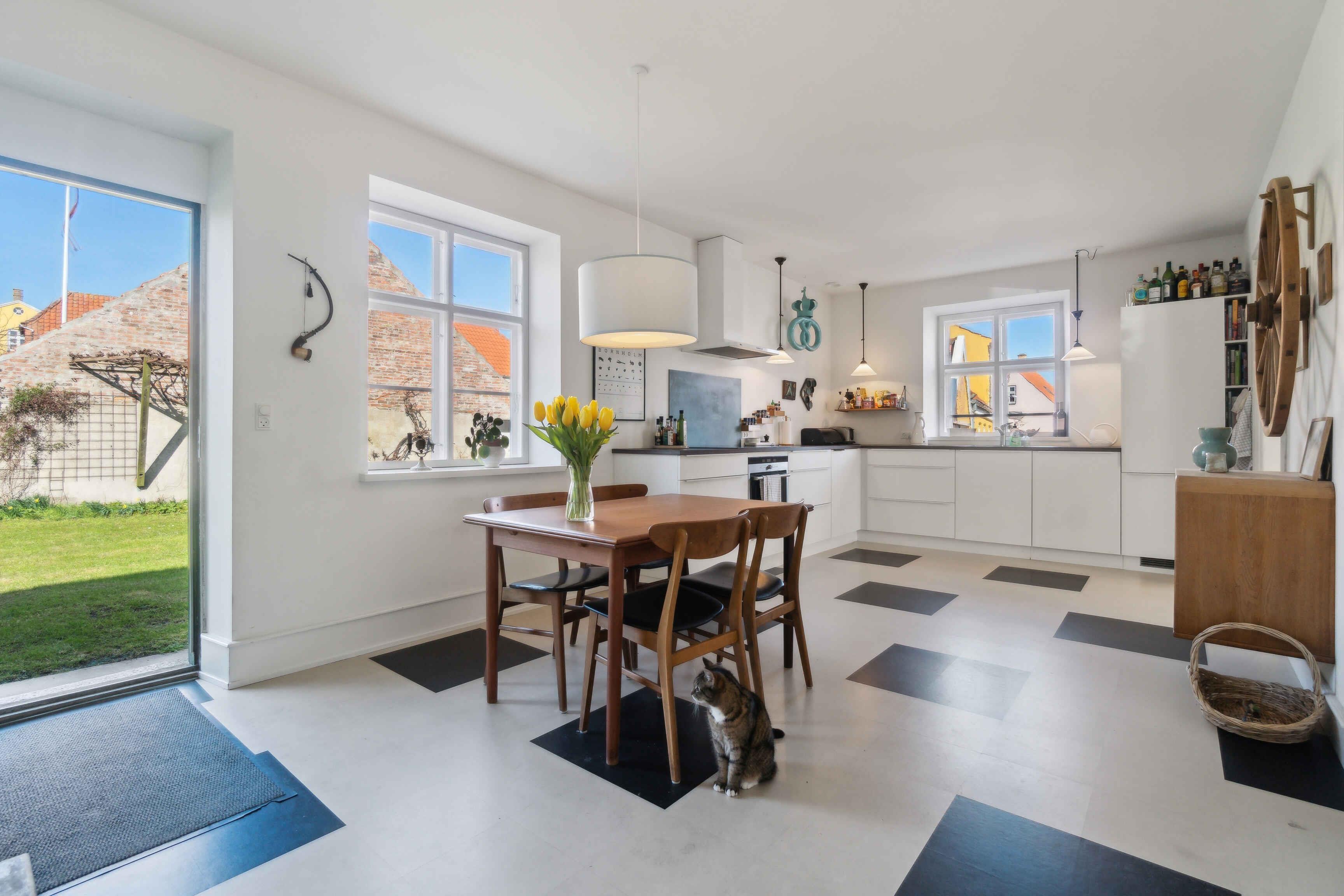Dieses geräumige Ferienhaus mit 178 m² bietet den idealen Rahmen für einen erholsamen Urlaub. Vier Schlafzimmer und fünf Schlafplätze machen es perfekt für Familien oder kleinere Gruppen. Nur 500 Meter vom Meer entfernt bietet es einfachen Zugang zum Strand, zu Küstenwanderungen und atemberaubenden Meeresblicken. Machen Sie einen Spaziergang entlang der Küste oder genießen Sie eine ruhige Morgenstunde mit dem Rauschen der Wellen. Die zentrale Lage erleichtert den Alltag. Restaurants, Cafés und Geschäfte sind in wenigen Gehminuten erreichbar. Erleben Sie das charmante Stadtleben ohne auf Verkehrsmittel angewiesen zu sein. Das Haus verfügt über einen Kamin für gemütliche Abende und moderne Annehmlichkeiten wie Internet, Smart-TV und ein Sonos-Soundsystem in mehreren Räumen. Funktionalität trifft auf Komfort. Die Umgebung bietet zahlreiche Urlaubserlebnisse. Küstenwege laden zu Spaziergängen mit Meerblick ein, während kleine Galerien, Kunsthandwerker und Boutiquen der Stadt eine besondere Atmosphäre verleihen. Der Hafen ist ein lebhafter Treffpunkt. Kaufen Sie frischen Fisch, genießen Sie ein Eis oder entspannen Sie sich einfach in der maritimen Atmosphäre. Alles ist fußläufig erreichbar. Märkte und Hofläden bieten frische, regionale Produkte. Kaufen Sie frisches Brot, Obst und Gemüse oder probieren Sie lokale Spezialitäten. Hier wird das Kochen mit hochwertigen Zutaten zum Vergnügen. Im Garten hält die Katze Smukke Wache über das Grundstück. Eine freundliche Wächterin, die nur Trockenfutter und Wasser für ihre treuen Dienste benötigt. Ein kleines Detail, das diesen Ort besonders macht. Achtung: Wird nicht für gewerbliche Nutzung vermietet.