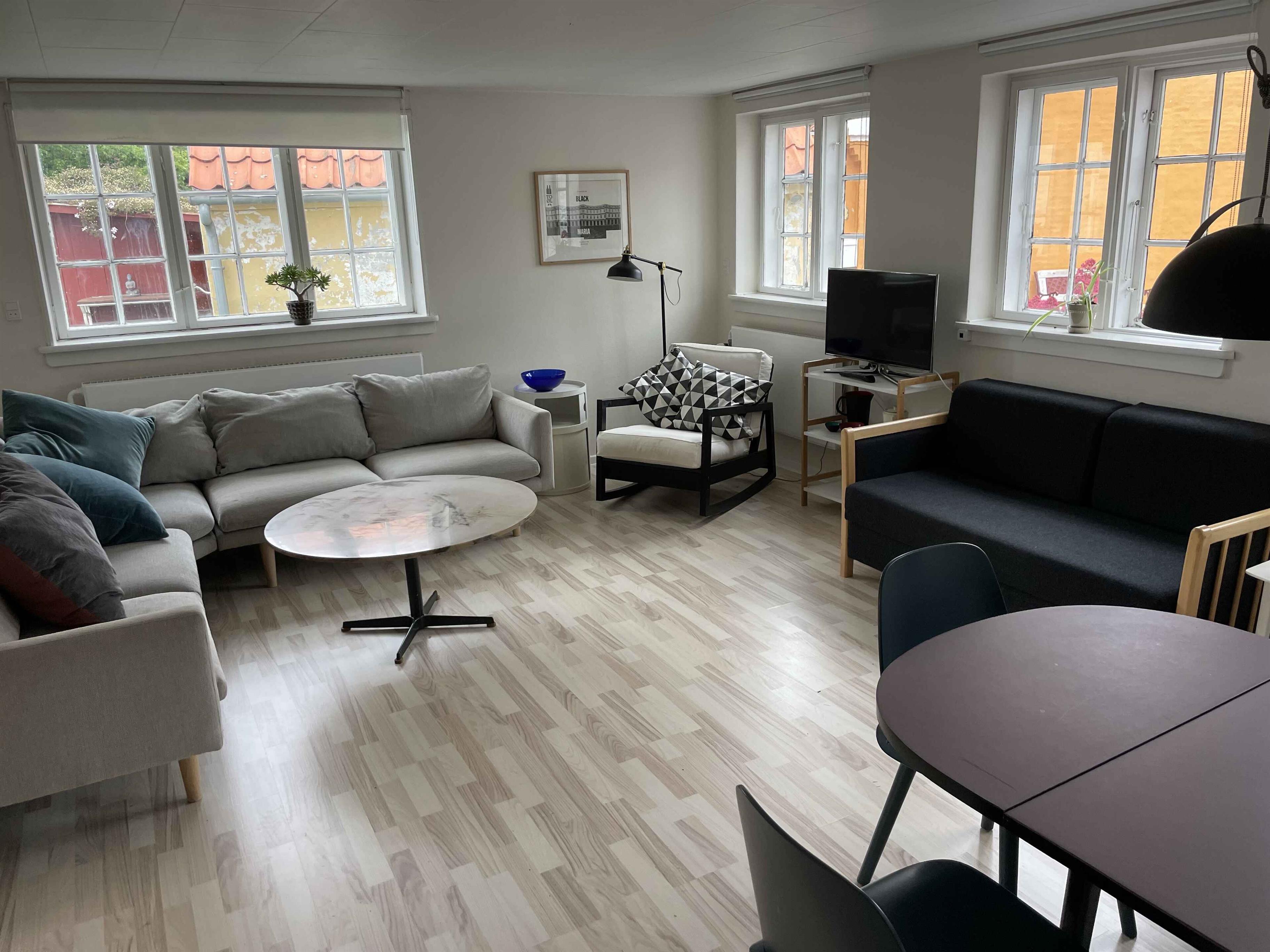 Die Wohnung liegt im Herzen des Küstendorfs Årsdale mit entspannter Atmosphäre und allem in Gehweite. Sie befindet sich in einem ruhigen Innenhof mit sonnigem Garten und gemeinschaftlichen Sitzgelegenheiten. Im Inneren vereint ein heller Wohnbereich offene Küche, Essplatz und Lounge. Zwei separate Schlafzimmer und zusätzliche Schlafmöglichkeiten machen sie ideal für Paare oder Familien. Die Einrichtung ist schlicht und funktional. Nur 250 Meter von der Küste entfernt liegen Strand, Fischerhafen und ein malerischer Spazierweg am Wasser. Årsdale bietet sowohl Ruhe als auch Aktivität. Spazieren Sie zur Mikkeller-Bar oder zum örtlichen Lebensmittelladen. Auf beiden Seiten führt ein schöner Küstenweg nach Svaneke und Nexø — zwei Städtchen mit Geschäften, Galerien, Fischräuchereien und sommerlicher Stimmung. Svaneke, wenige Kilometer entfernt, ist bekannt für seine historische Altstadt und den reizvollen Hafen. In Nexø erwartet Sie eine eher lokale Atmosphäre und gute Einkaufsmöglichkeiten. Beide Orte sind bequem zu Fuß, mit dem Rad oder dem Auto erreichbar. Die Unterkunft ist ideal für alle, die nahe an Natur, Stadt und Strand sein möchten—ohne auf Ruhe und Privatsphäre zu verzichten. Der Innenhof und der Garten bieten Raum zum Beisammensein und Entspannen. Ein idealer Ausgangspunkt für Urlaub mit Strandtagen, Wanderungen und lokalen Genusserlebnissen—und perfekt, um die Ostküste Bornholms intensiv zu entdecken.