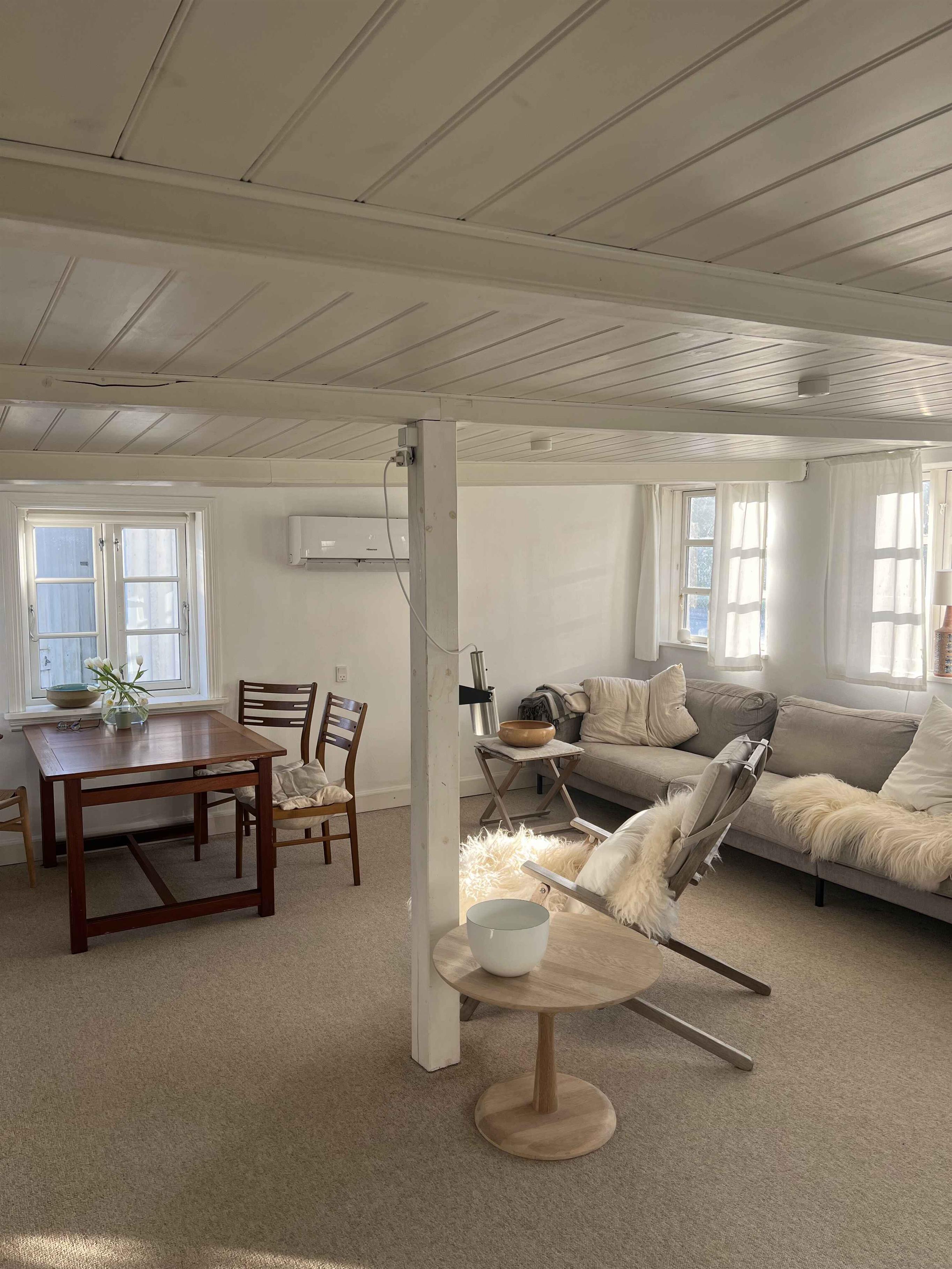 Authentisches Fischerhaus mit Meerblick von Listed Hafen. Dieses charmante Ferienhaus mit 80 m² Wohnfläche bietet drei Zimmer für bis zu sechs Personen. Die Zimmer verteilen sich auf ein Zimmer im Erdgeschoss und ein gemeinsames Zimmer im ersten Stock. Vom Haus und insbesondere vom Garten, der sich über die Dächer erstreckt, genießt man einen herrlichen Meerblick auf das Wasser und Listed Hafen. Auf der Terrasse können Sie die Zeit vergessen und die wunderschöne Vogelwelt an den Klippen beobachten. Zum Schwimmen schnappen Sie sich einfach Ihr Handtuch und gehen Sie zum Hafenbad oder in die malerische, kinderfreundliche Lagune. Die Wanderung nach Svaneke am Wasser entlang zählt zu den schönsten auf Bornholm. Der kleine Bäcker vor Ort backt köstliches Sauerteigbrot. Gleich gegenüber befindet sich die Werkstatt eines der talentiertesten Keramiker Bornholms. Wenn Sie Gesellschaft suchen, besuchen Sie das Café am Hafen.