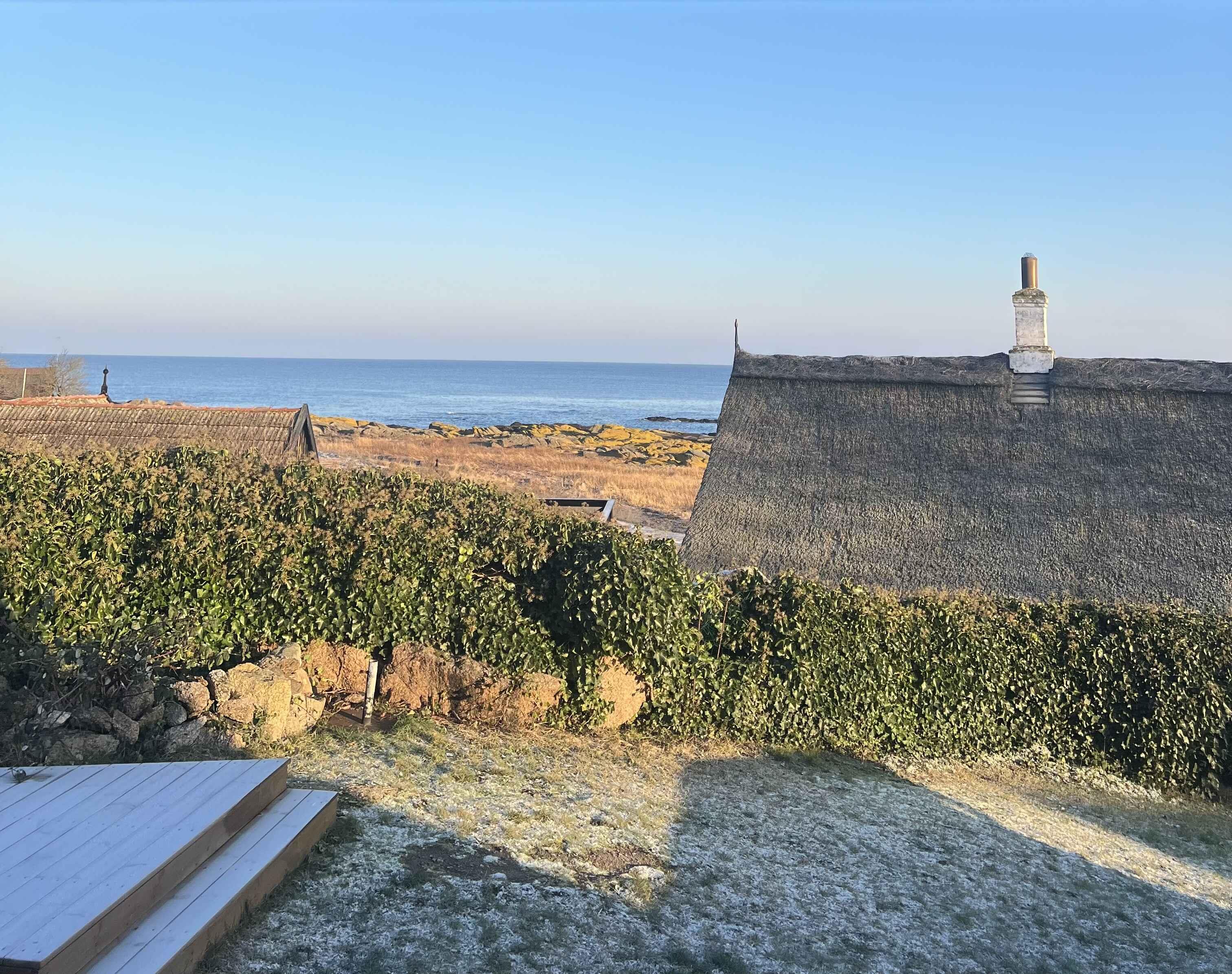 Charmantes Fischerhaus mit Meerblick und direktem Zugang zum Hafenbad in Listed, Bornholm.