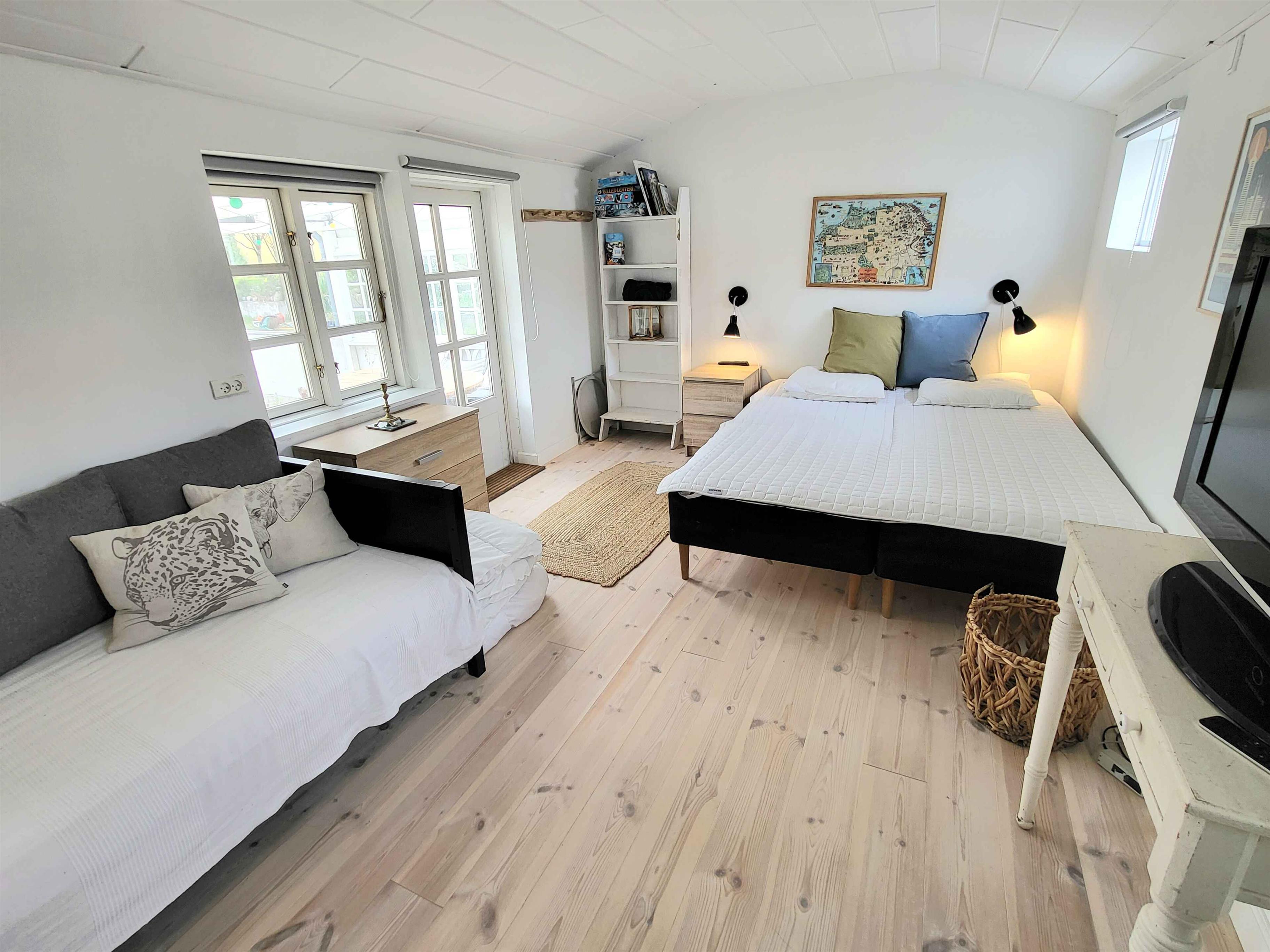 Willkommen in dieser wunderschönen, modernisierten Villa in der zweiten Reihe vom Wasser, umgeben von der malerischen Schönheit von Årsdale. Dieses idyllische Dorf bietet viele reizvolle Erlebnisse. Jeden Morgen lockt Sie die Räucherei mit frisch geräuchertem Hering, während ein gemütlicher Strand und der Hafen zu einem erfrischenden Bad einladen. Die atemberaubende Felsküste erstreckt sich über 2,5 km und nimmt Sie mit auf eine unvergessliche Wanderung nach Svaneke. Im Sommer ist Mikkeler Ølbar mit seiner guten Atmosphäre ein Muss und es gibt reichlich Gelegenheit, lokale Schätze wie die alte Mühle, Kunstgalerien und einen kleinen, lebhaften Flohmarkt in der Stadt zu erkunden. Der großzügige Innenhof erwartet Sie mit einem Gasgrill und Platz für bis zu 10 Personen am Tisch. Im Inneren finden Sie ein helles und freundliches Zuhause, neu renoviert mit einer modernen Küche und einem großen Wohnzimmer, in dem ein gemütlicher Holzofen eine einladende Atmosphäre schafft. Drei Schlafzimmer im Obergeschoss sorgen für eine komfortable Unterkunft, während im Erdgeschoss ein großes Gästezimmer, ausgestattet mit einem Doppelbett und einem Einzelbett, als praktischer Anbau mit eigenem Eingang und direktem Zugang zum Haus fungiert. Mit zwei gut ausgestatteten Badezimmern, von denen eines über eine erfrischende Dusche verfügt, ist für Ihren Komfort gesorgt. Ein großzügiger Carport und ein Parkplatz für mehrere Autos vervollständigen dieses schöne Haus, das Sie dazu einlädt, die Schönheit der Umgebung zu erkunden und die vielen Erlebnisse zu genießen, die Årsdale zu bieten hat. Achtung: Wird nicht für gewerbliche Nutzung vermietet.