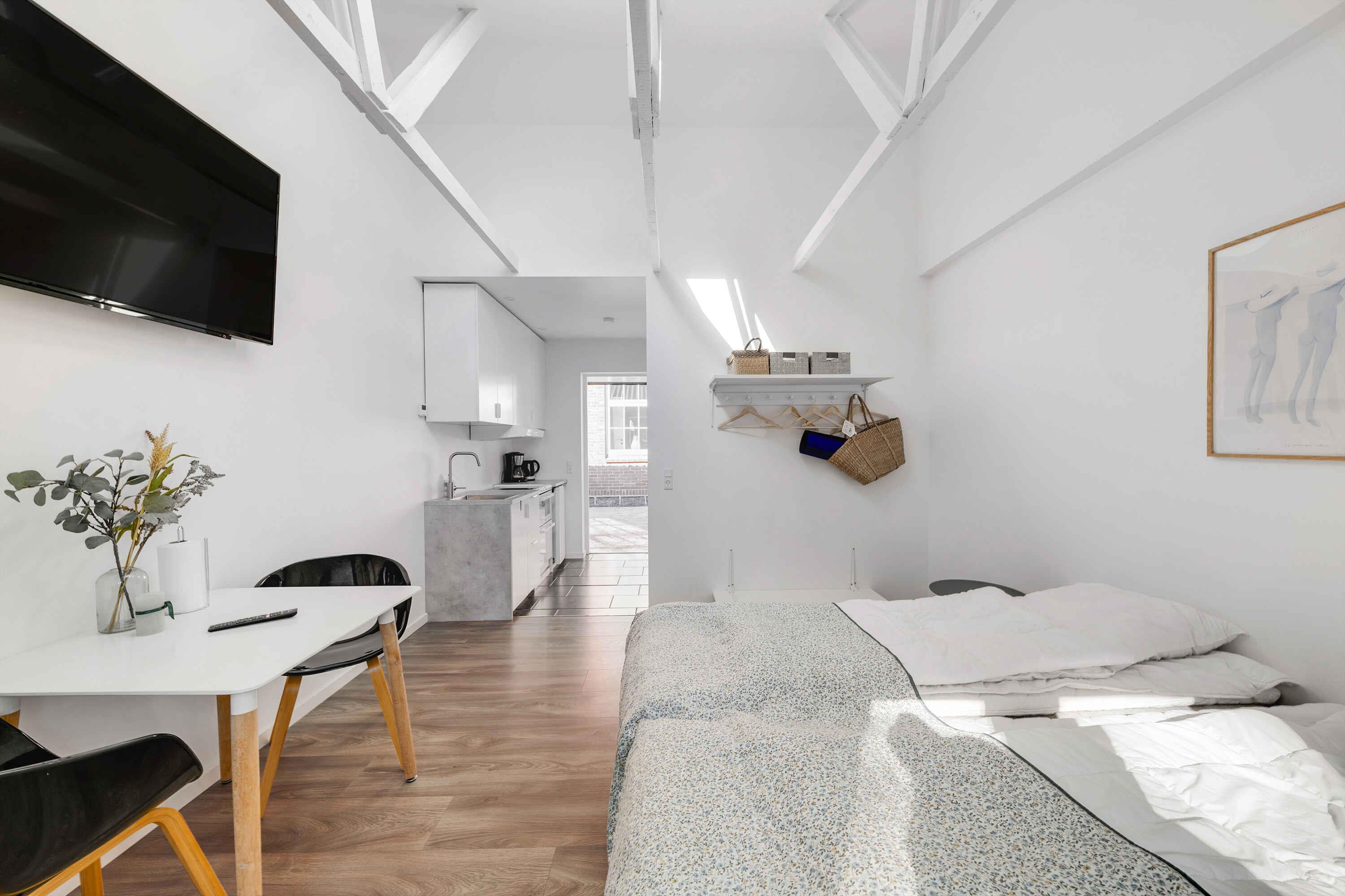 Willkommen im SOLGAARDEN BADEPENSION – Ihrem gemütlichen Aufenthaltsort im Herzen des ursprünglichen Bornholm. Eine moderne Oase von 25 m2. Die Unterkunft verfügt über ein Schlafzimmer und zwei Schlafplätze. Perfekt für Paare oder eine kleine Familie. Solgaarden ist für diejenigen, die die Ruhe der Natur und einige von Bornholms wunderschönen Umgebungen genießen möchten – ganz zu schweigen von all den herrlichen gastronomischen Möglichkeiten auf Bornholm. Solgaarden hat insgesamt 9 Apartments und ist daher auch der Ort für Gruppen oder Großfamilien über Generationen hinweg. Solgaarden bietet einen vollständigen Blick auf die Ostsee. Ursprünglich war der Hof eine Schule, die später erweitert wurde, um als Veranstaltungsort und Ferienlager zu dienen. Heute wurden die Räume in kleine, neu renovierte Apartments mit eigenem Bad und Küche umgewandelt. Der Ort verfügt über eine wirklich gemütliche Umgebung im Hof mit einem Essensschuppen und einer großen Feuerstelle. Darüber hinaus hat das Apartment einen eigenen Zugang zu einer großen Terrasse, die zur wilden Natur hinausführt. Vom Hof aus kann man in den wunderschönen großen Garten von Solgaarden hinuntergehen, der ideal ist zum Spielen, Entspannen, Mittagessen unter Apfelbäumen und für alle sonnigen Augenblicke. Svaneke bietet einzigartige Erlebnisse. Lokale Handwerker, historische Straßen und das Rauschen des Meeres.