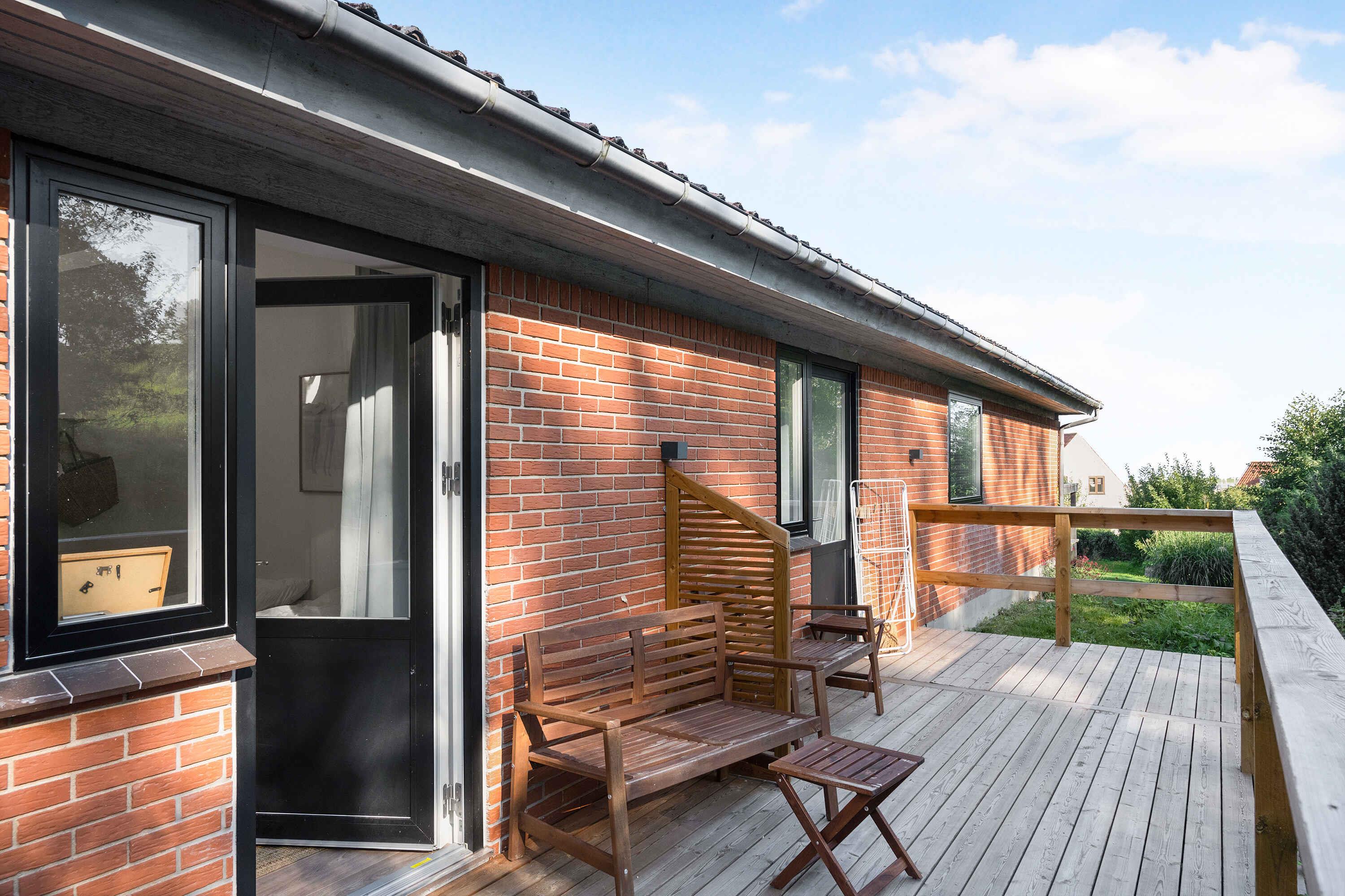 Gemütliche Ferienwohnung Solgaarden mit Ostseeblick, privater Terrasse und Zugang zu großem Garten in Svaneke, Bornholm.