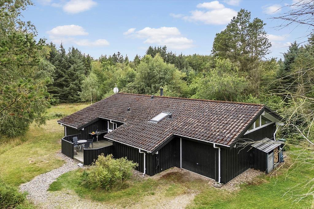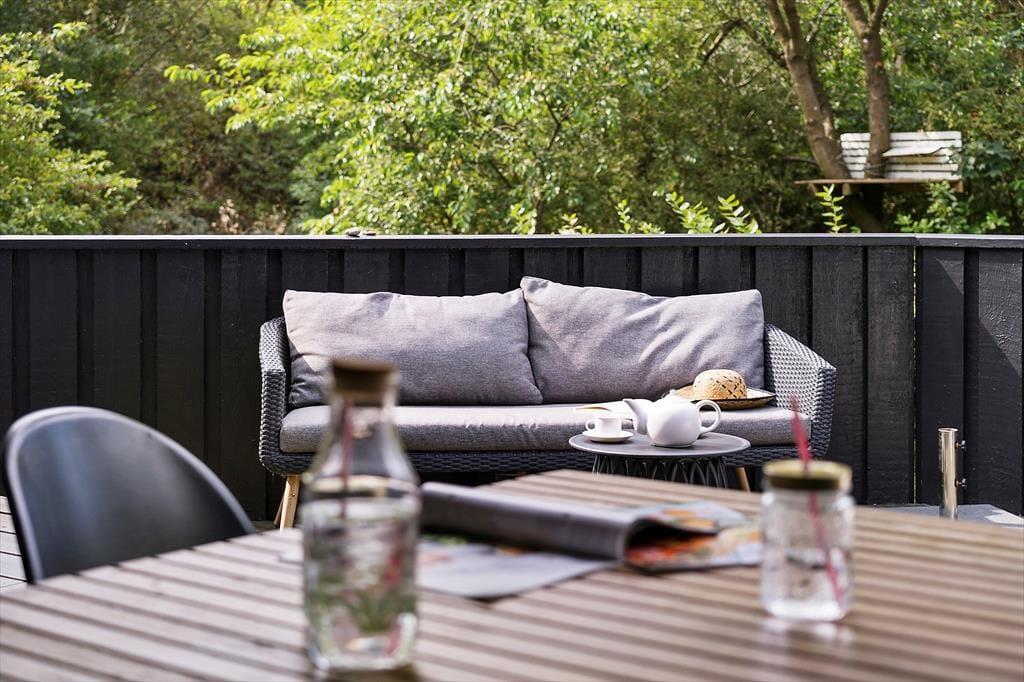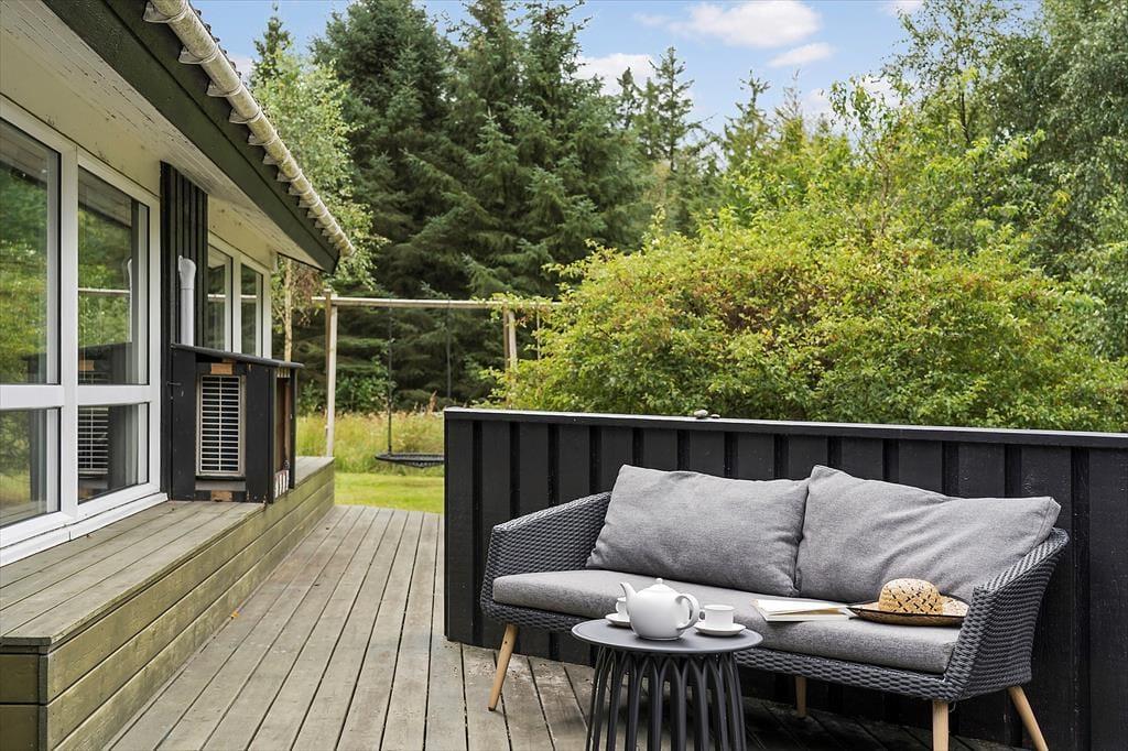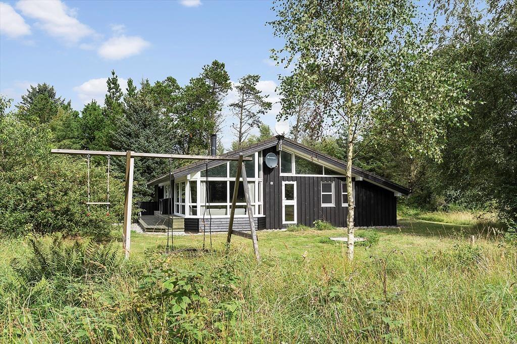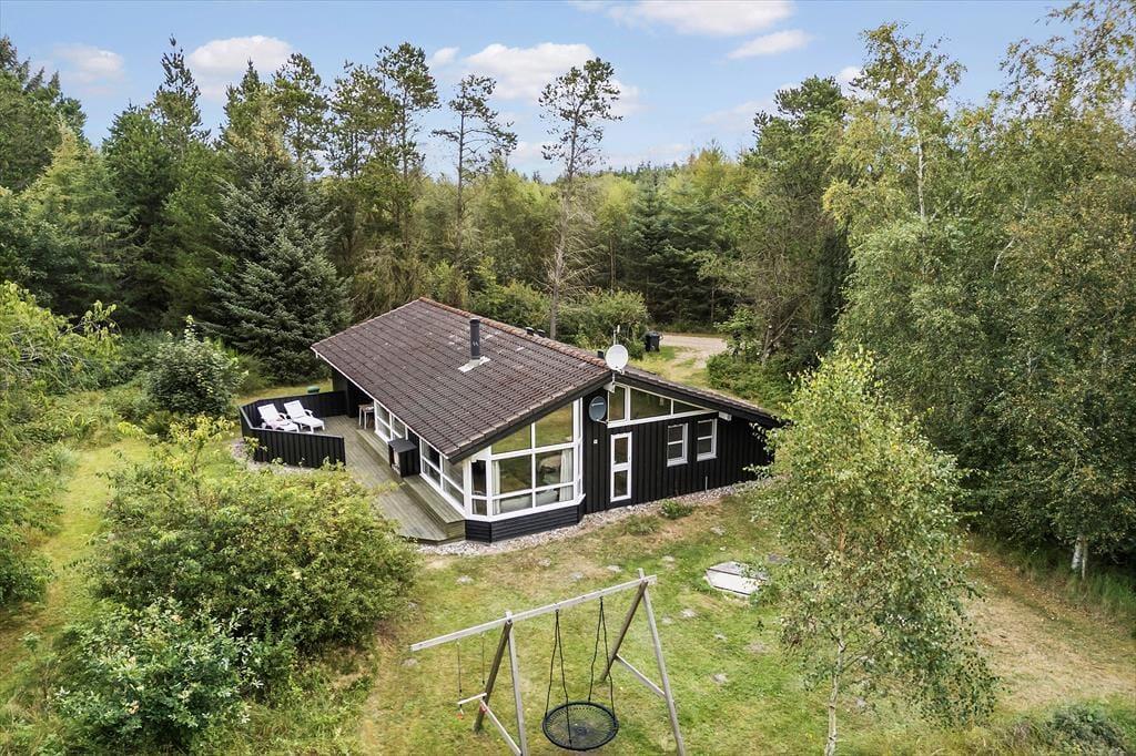 Das Ferienhaus liegt auf einem mehr als 4.000 m² großen Naturgrundstück mit hohen Bäumen, kleinen Büschen und Strandroggen. Für Kinder wurden Schaukel und Sandkasten ausgestellt, außerdem ist eine Außenküche vorhanden, damit sozusagen das Maximale aus dem Sommer geholt werden kann. Auf zwei Hausseiten befinden sich Terrassen, so dass es mehrere Möglichkeiten zum Sonnen und Essen bei gutem Wetter gibt.