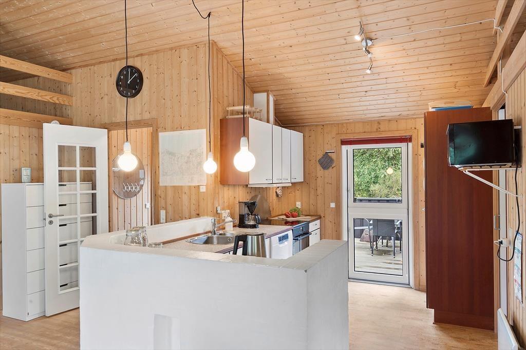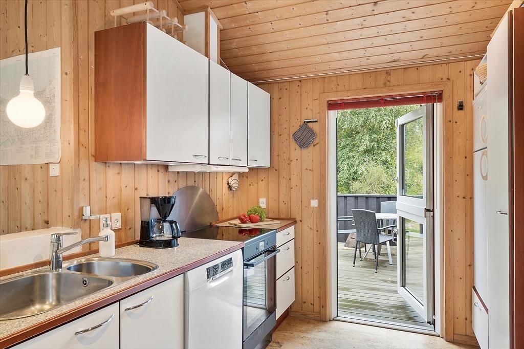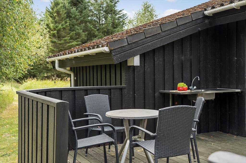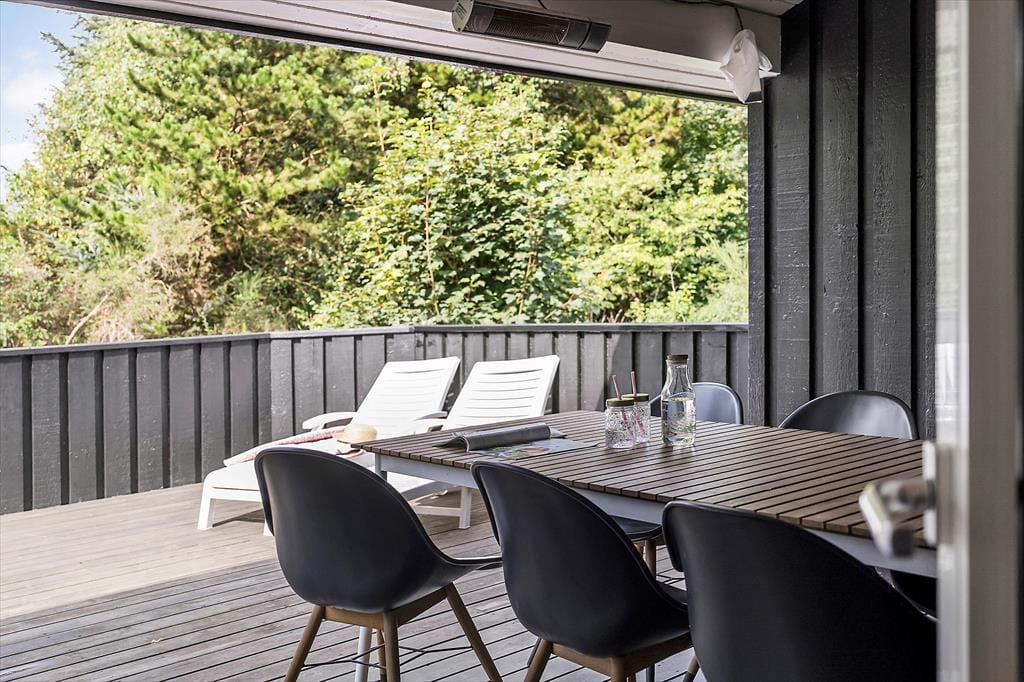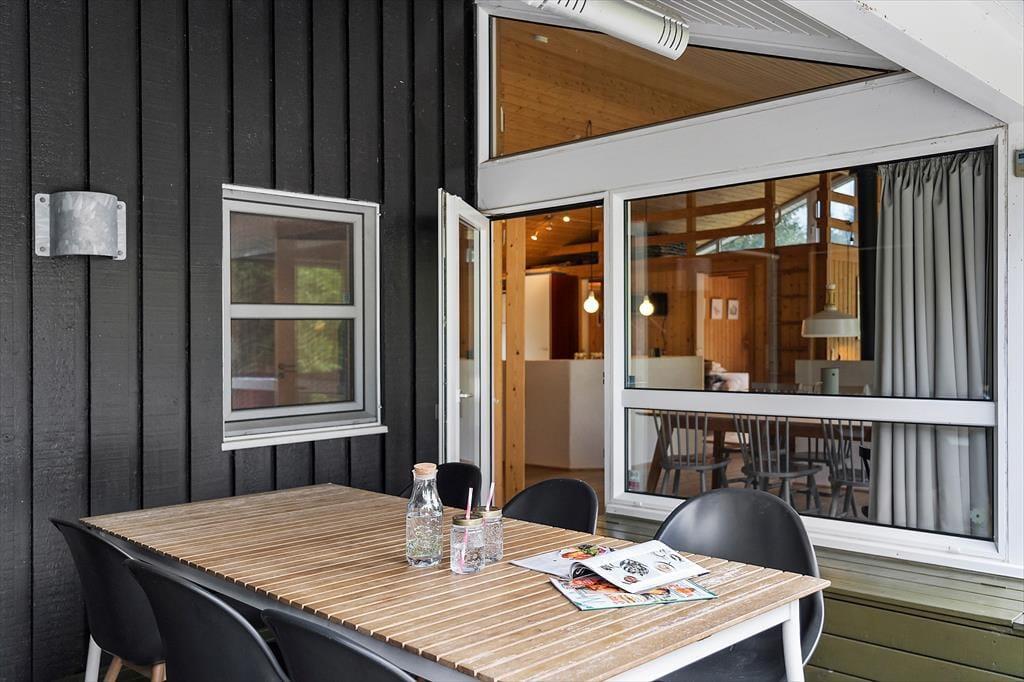 Das Ferienhaus liegt auf einem mehr als 4.000 m² großen Naturgrundstück mit hohen Bäumen, kleinen Büschen und Strandroggen. Für Kinder wurden Schaukel und Sandkasten ausgestellt, außerdem ist eine Außenküche vorhanden, damit sozusagen das Maximale aus dem Sommer geholt werden kann. Auf zwei Hausseiten befinden sich Terrassen, so dass es mehrere Möglichkeiten zum Sonnen und Essen bei gutem Wetter gibt.