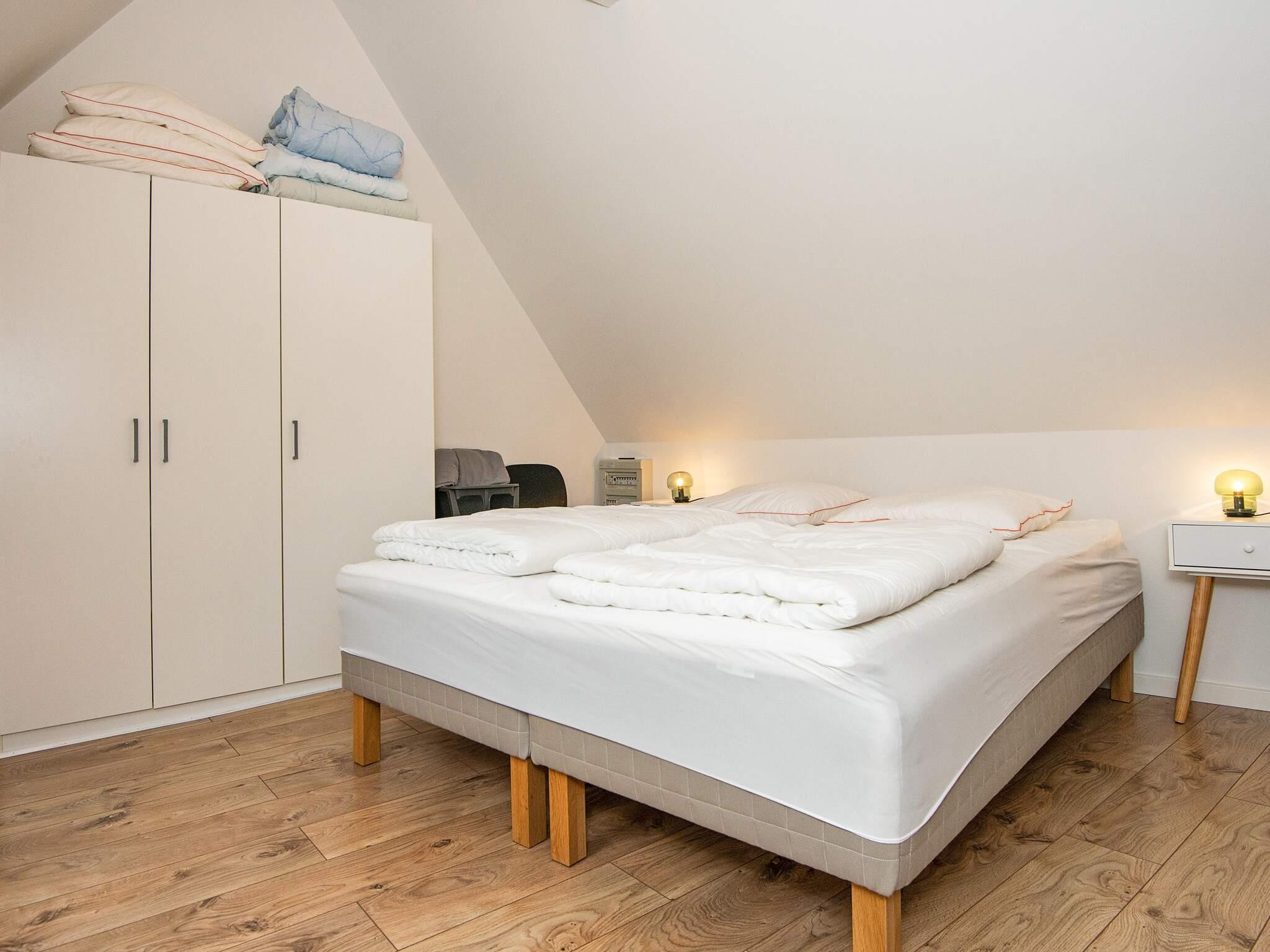 Im Erdgeschoss befinden sich ein kleiner Eingangsbereich mit Stauraum für Schuhe und Oberbekleidung sowie eine helle, gut ausgestattete Küche mit Geschirrspüler und Mikrowelle, die zum Fernsehzimmer hin offen ist. Im Fernsehzimmer bietet ein Schlafsofa Platz für bis zu zwei Gäste. Das Erdgeschoss verfügt außerdem über ein voll ausgestattetes Badezimmer mit Dusche. Im Dachgeschoss befindet sich ein Schlafzimmer mit einem Doppelbett. Die gesamte Wohnung ist gepflegt, praktisch und geschmackvoll eingerichtet und sorgt für einen komfortablen Aufenthalt.