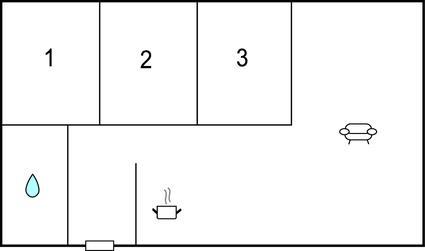 Badezimmer (nr. 1) - WC. Warmes und kaltes Wasser. Dusche