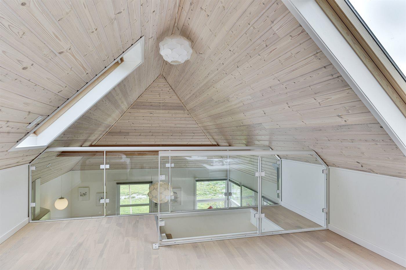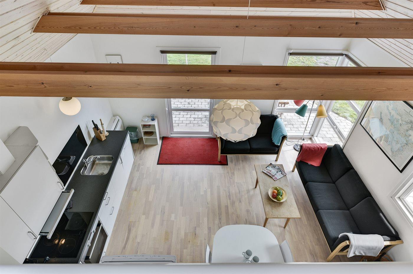 Übrigens befinden sich 2 der insgesamt 4 Schlafplätze im offenen Obergeschoss. Außerdem liegt das Haus auf einem größeren Grundstück ohne Zaun, der es vom Nachbargrundstück trennt.
