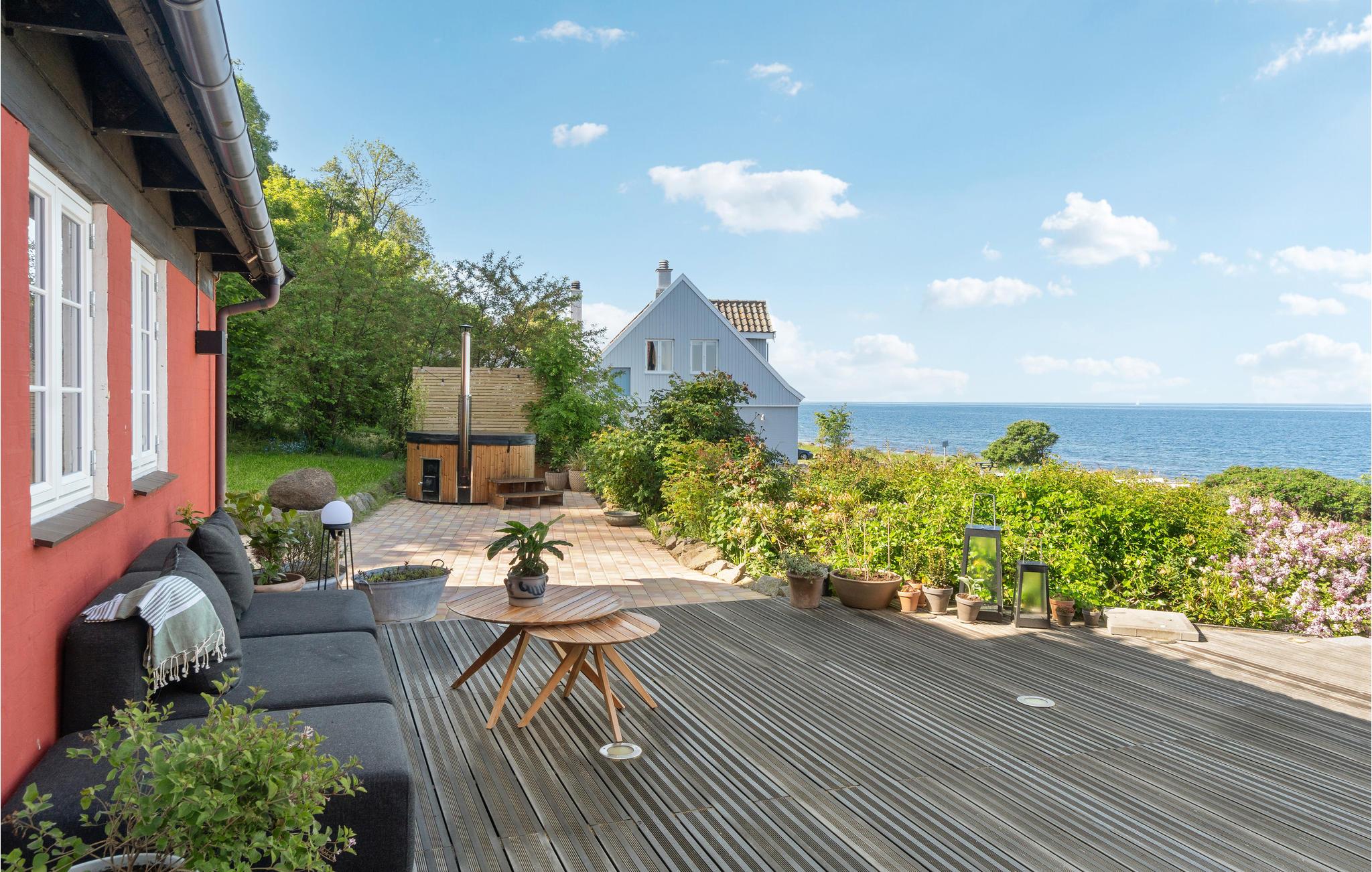Auch die zum Hafen und Meer hin ausgerichtete Terrasse bietet Ihnen ein tolles Erlebnis im Freien, das Sie an lauen Sommerabenden noch viele Stunden genießen können. Haben Sie unter dem Sternenhimmel schon mal ein Bad im Finnischen Holzbad genommen? Wenn nicht, haben Sie hier die Möglichkeit. Zudem können Ihren Kindern hinter dem Haus auch spielen und schaukeln.