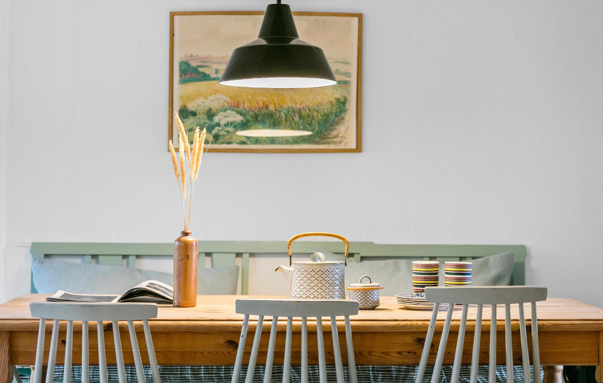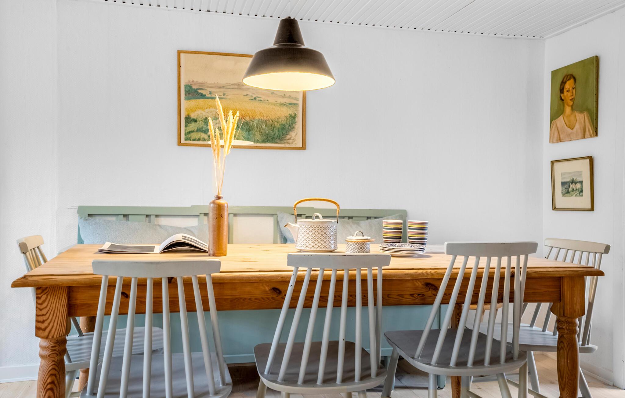 Im ruhigen Küstenort Tejn erwartet Sie dieses schöne Ferienhaus. Es ist heimelig und liebelvoll eingerichtet und lädt Sie ein, eine ruhevolle Auszeit in seiner angenehme Atmosphäre zu verbringen. Das geräumige Haus bietet mehrere Ecken für entspannte Lesestunden oder gemütliche Brettspielabende. Eine Spielecke ist zudem in den oberen Etagen für die Kleinen eingerichtet und wird sicher ihren Lieblingsort werden.