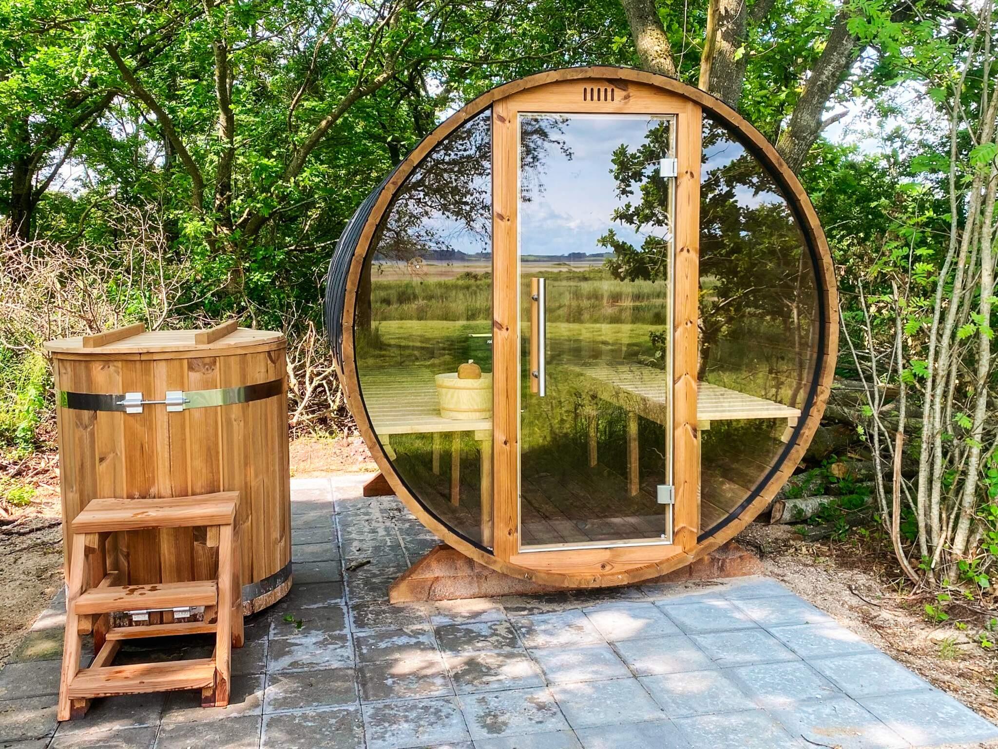 Der Whirlpool im Freien hat einen direkten Blick auf das Wasser und es gibt auch ein Eisbad/Kaltwasserbecken für die Mutigen. In Verbindung mit dem Badebereich gibt es auch eine Sauna, die zum Entspannen und Relaxen nach einem Bad einlädt.