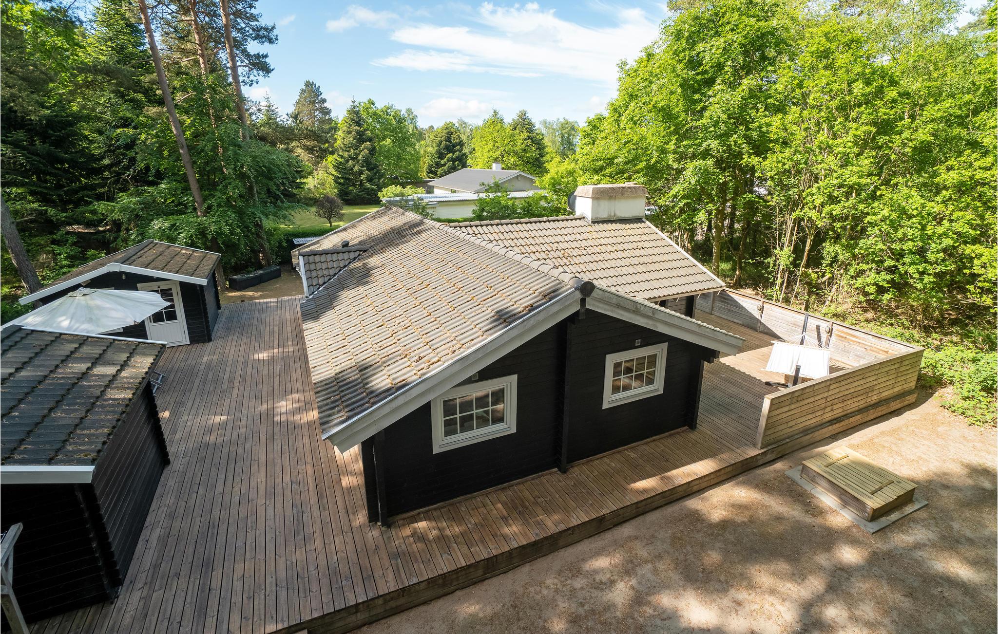 Gemütliches Ferienhaus in ruhiger Waldlage bei Thorsager, perfekt für einen erholsamen Familienurlaub mit Kamin und großer Terrasse.