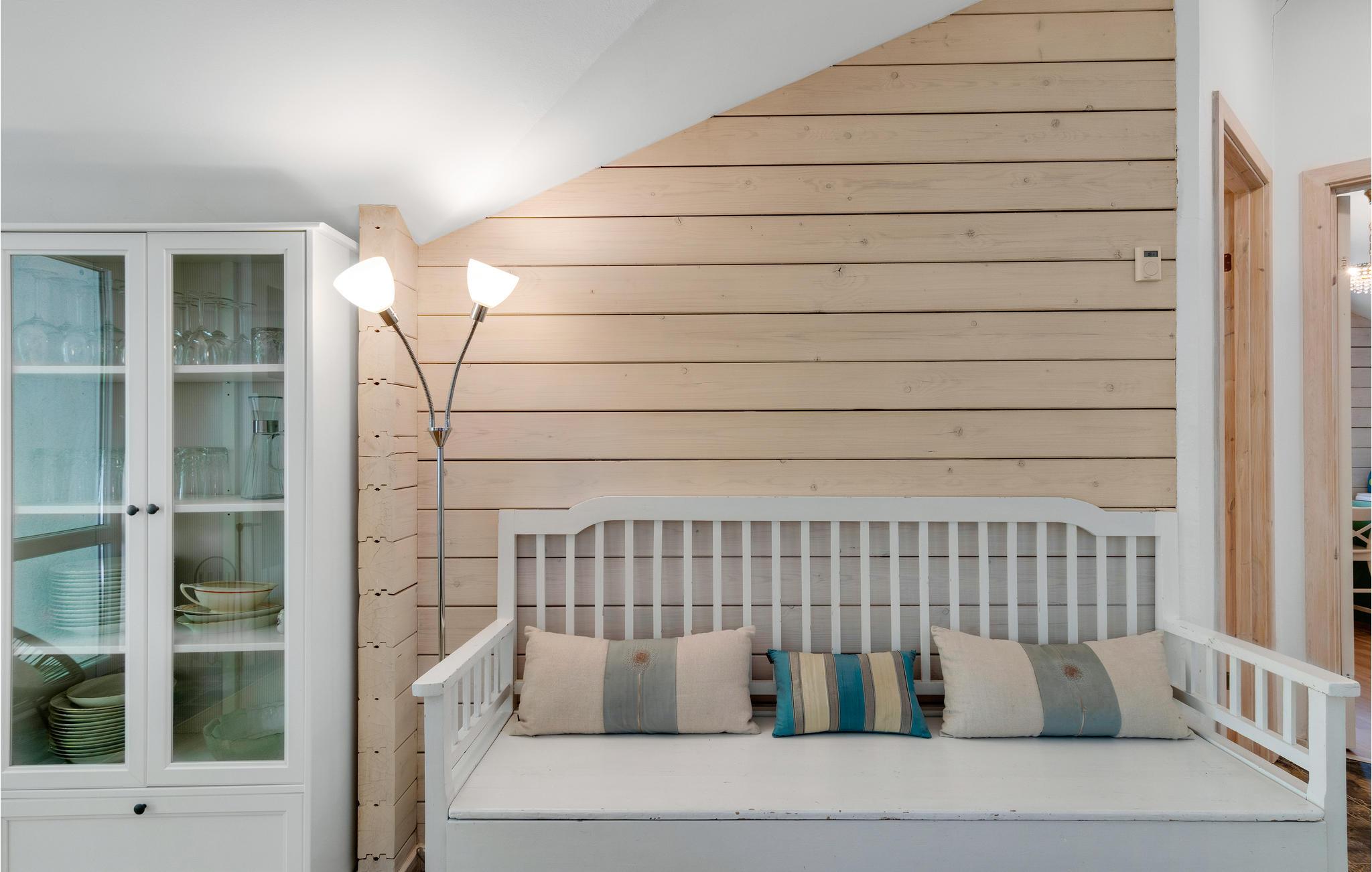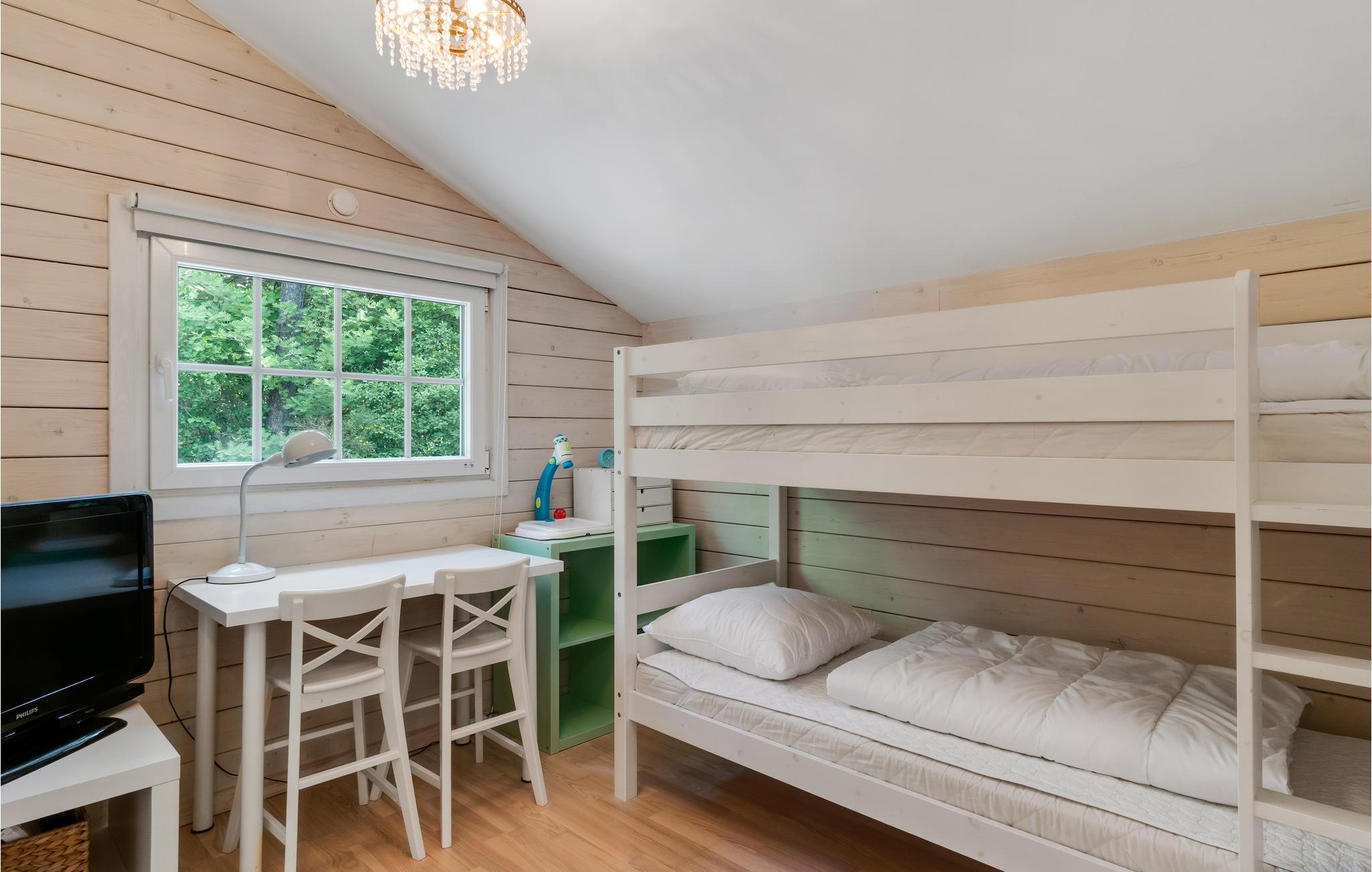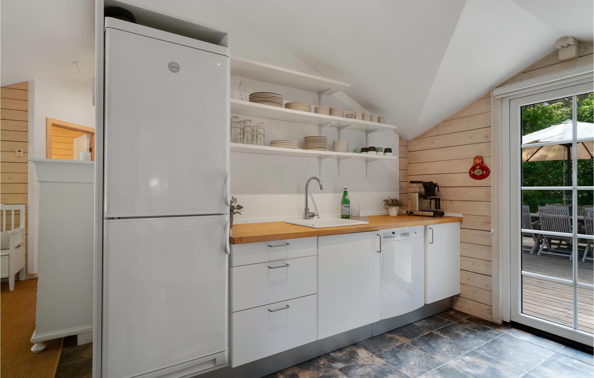 Das Haus umgibt eine große Holzterrasse, die auch das Nebengebäude mit dem Haupthaus verbindet. Kommen Sie hier zum Grillen und Relaxen im Schatten der Bäume zusammen und schmieden Pläne für Ihre anstehenden Urlaubstage. Anschließend können Ihre Kinder im Garten spielen oder Sie versammeln sich um die Feuerschale.