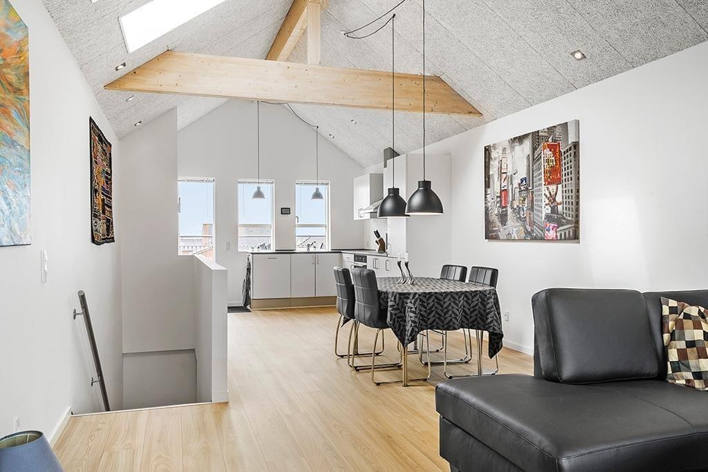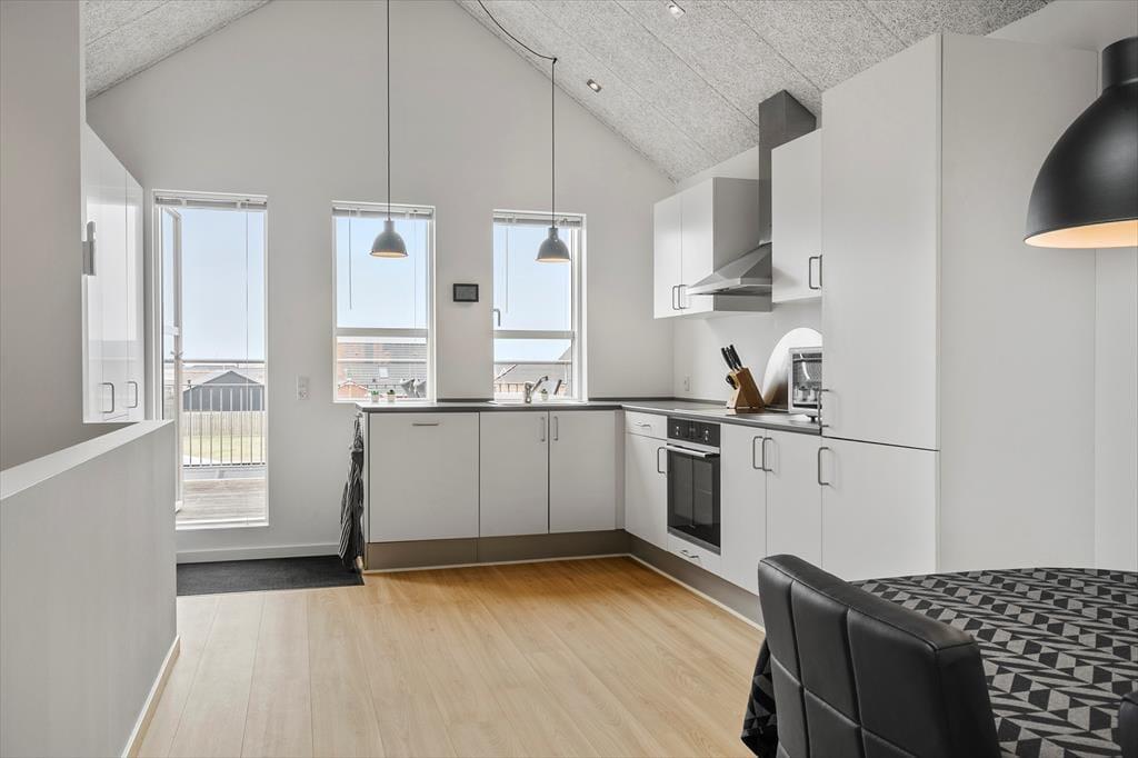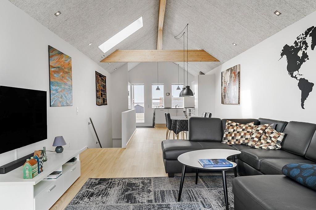Willkommen in diesem schönen, zweigeschossigen Ferienreihenhaus, das dich mit einem hellen, luftigen Ambiente und viel Komfort begrüßt. Das Reihenhaus wurde erstmals im Jahr 2023 vermietet und präsentiert sich daher annähernd neuwertig. Dank der stilvollen, einladenden Einrichtung wirst du dich vom ersten Moment an heimisch und wohl fühlen. Im Obergeschoss empfängt dich ein offener, großzügig bemessener Aufenthaltsbereich mit einer gut ausgestatteten Küche, die unter anderem mit einem Geschirrspüler und einem Zugang zur Südterrasse überzeugt - perfekt für entspannte Tage in der Sonne. Am entgegengesetzten Ende des Raumes sind der gemütliche Ess- und Wohnbereich platziert. Dieser Teil des Aufenthaltsbereichs besticht mit komfortablen Möbeln und einem Zugang zu einem kleinen Balkon, auf dem dich eine atemberaubende Aussicht über die Schleuse und den Nissum Fjord im Nu in den Bann ziehen wird. Das Erdgeschoss umfasst zwei schöne Schlafräume, in denen jeweils ein Doppelbett bereit steht. Das ebenfalls im Erdgeschoss platzierte, luxuriöse Badezimmer verwöhnt dich mit einem Whirlpool, einer Sauna und einer Dusche. Praktischerweise steht zusätzlich ein Gäste-WC zur Verfügung. Dieses Urlaubsdomizil glänzt mit einer perfekten Kombination aus modernen Annehmlichkeiten, stilvollem Design und fantastischer Natur ringsum. Wenn du von einem Urlaub im Zeichen von Luxus und Erholung träumst, bist du in diesem Mietobjekt bestens aufgehoben.