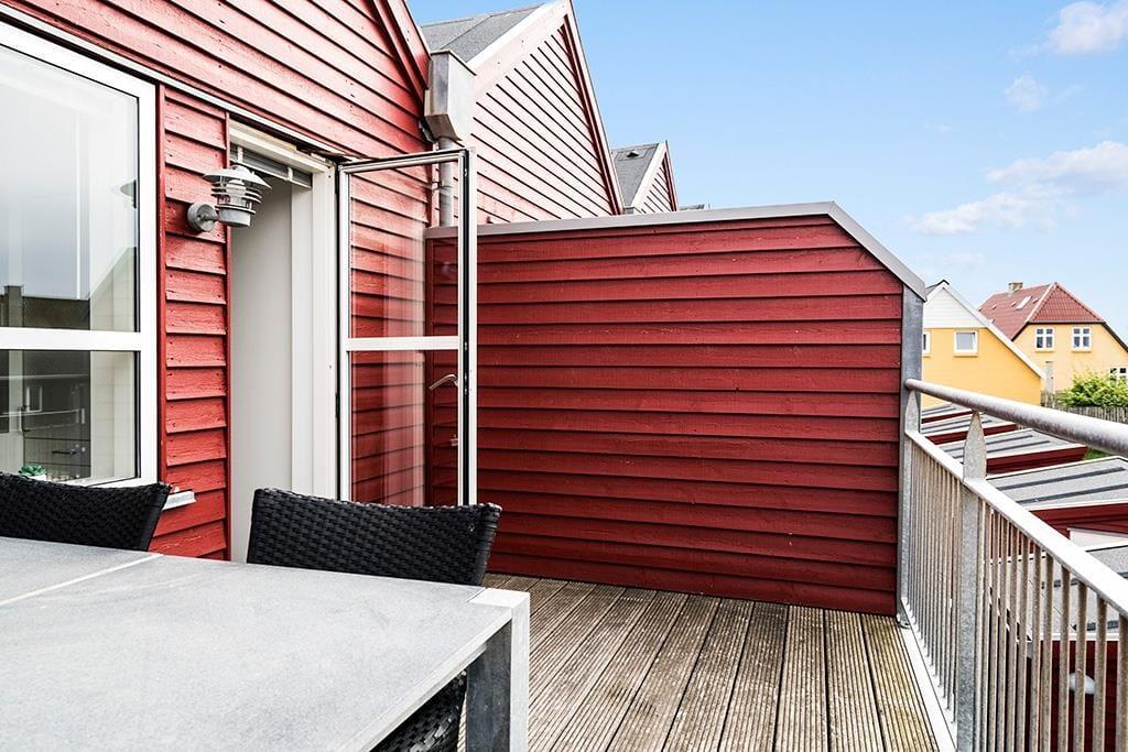 Hinter deinem Ferienreihenhaus befindet sich ein praktischer, geräumiger Gemeinschaftsparkplatz, von dem du deinen Hauseingang erreichst. Als erstes betrittst du einen gemütlichen, komplett geschlossenen Hinterhof, der sich als kleine Oase erweist, in der du dich an der frischen Luft in Ruhe niederlassen kannst. Vom Hinterhof aus gelangst du in einen praktischen Geräteschuppen, in dem du deine Angelausrüstung und ähnliche Dinge lagern kannst. Die Terrasse, die an das obere Stockwerk schließt, ist mit komfortablen Gartenmöbeln versehen, die zum Sonnen, zum Lesen und zu gemeinsamen Abendessen unter freiem Himmel einladen. Die Außenbereiche deines Urlaubsdomizils bestechen mit angenehm viel Funktionalität. Du darfst dich somit darauf freuen, stimmungsvolle Urlaubstage im Freien zu genießen.