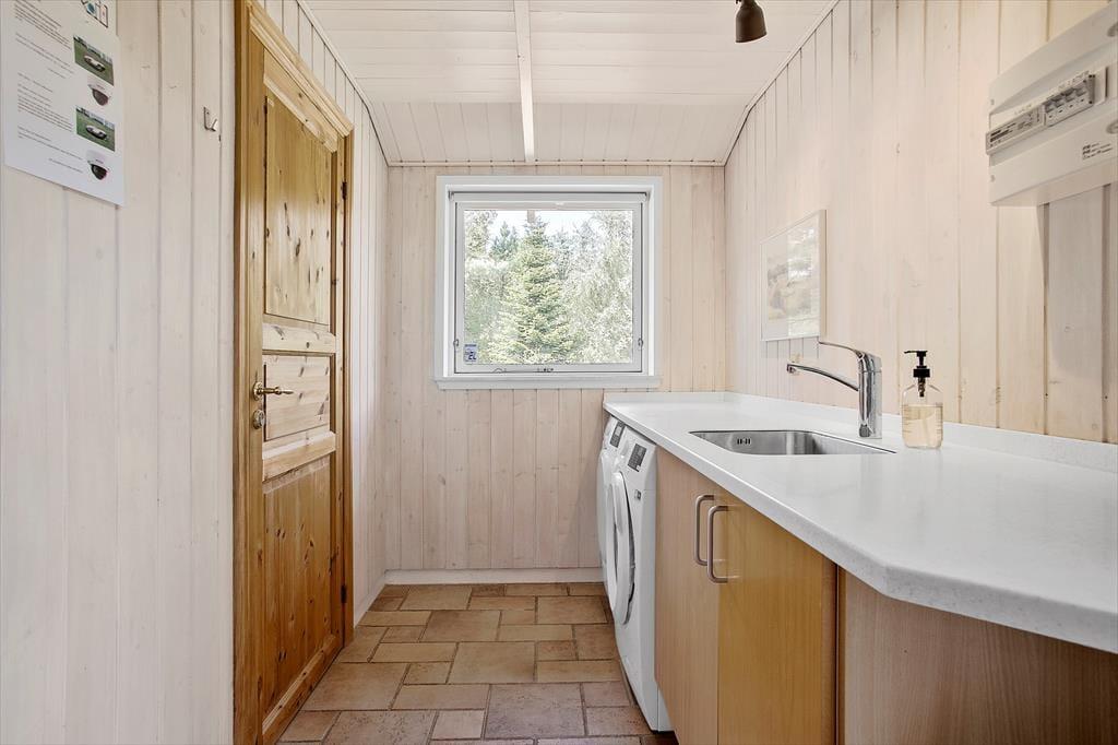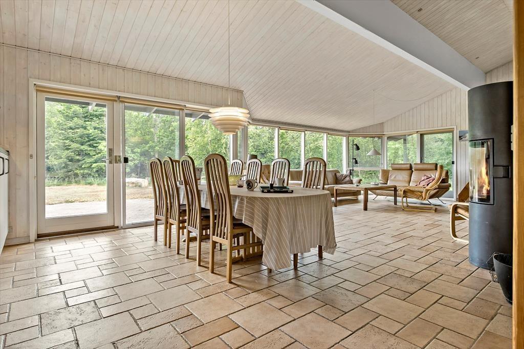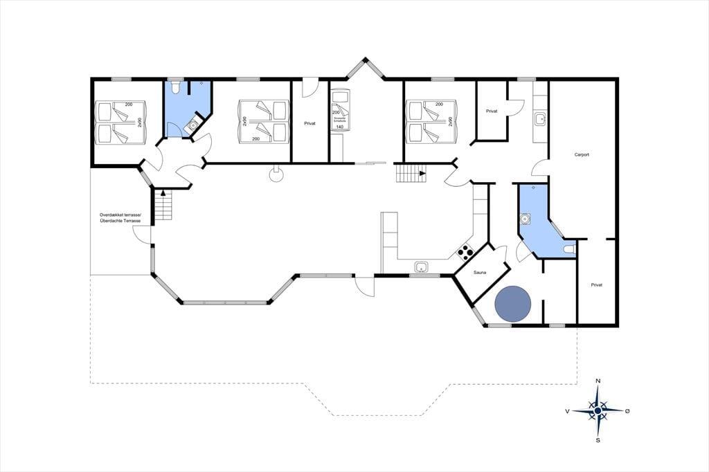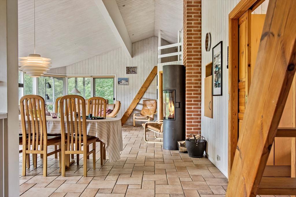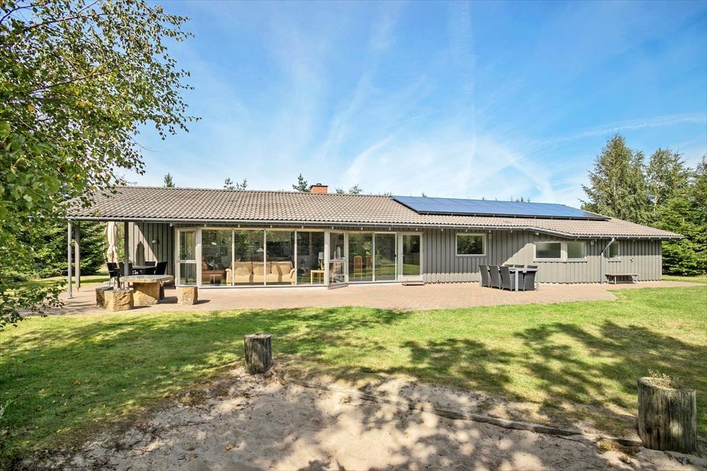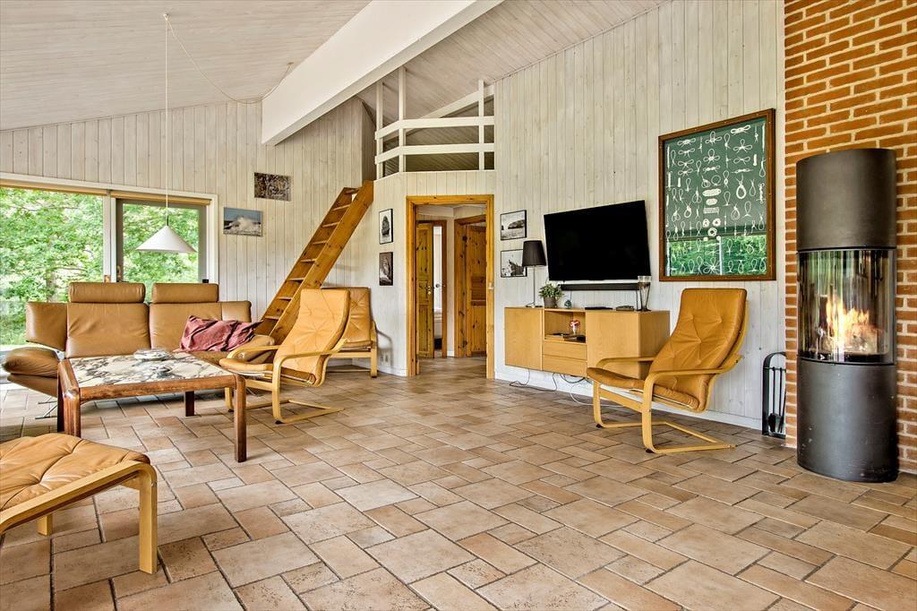 Dieses Ferienhaus ist ganz außergewöhnlich, hier gibt es wirklich die Möglichkeit den Wünschen aller Teilnehmer entgegenzukommen. Das Ferienhaus ist herrlich eingerichtet mit zwei Badezimmern, jeweils eins an jedem Ende des Hauses. An beiden Badezimmern Schließen sich Schlafmöglichkeiten an, so dass das Ferienhaus sich gut für zwei Familien eignet. Mitten im Ferienhaus befindet sich die große gut ausgestattete Küche, hier besteht die Möglichkeit zu kochen und gleichzeitig am Leben, das sich im Aufenthaltsraum um den grossen Esstisch herum abspielt, teil zu haben. Der Aufenthaltsraum liegt mitten im Ferienhaus und hat Verbindung zu allen anderen Zimmern, und ist der natürliche Sammelpunkt des Hauses. Außerdem wurde im ganzen Haus darauf Wert gelegt, dass hier die Möglichkeit zu richtig gemütlichem Zusammensein besteht. Deshalb ist eines der Zimmer an der Küche wie ein kleiner gemütlicher Aufenthaltsraum eingerichtet, wo die Kinder sitzen können und z.B. Karten spielen, Teenager mit Ihrem Computer oder die Mama mit einem richtig guten Buch. Hier ist Platz für Alles. Hier im Raum gibt es auch eine Schlafcouch, so dass die Möglichkeit besteht einen extra Schlafraum zu schaffen, wenn dieses gewünscht wird. Alle Räume sind mit einer Schiebetür ausgestattet. Alle Schlafräume sind groß und verfügen über viel Platz. Beachten Sie, dass sich vier der Schlafplätze auf Schlafböden (Hems) befinden. Diese sind besonders für Jugendliche geeignet, es gibt jedoch gute feste Treppen mit offenen Stufen hinauf. Das Ferienhaus verfügt über einen grossen Whirlpool, wo Sie richtig entspannen können. Es gibt auch einen Kaminofen, wo Sie sich es an kühlen Tagen gemütlich machen können, und möchten Sie im Verlaufe der Ferien das Internet benutzen, ist dieses natürlich auch möglich. Am Ferienhaus ist auch an die Autofahrer gedacht worden, da hier die Möglichkeit besteht das Auto am CEE Kontakt mit 16 Amp. aufzuladen.