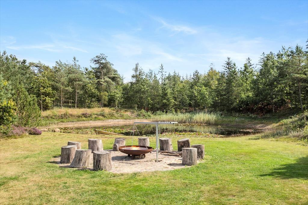 Die Außenbereiche bei diesem Ferienhaus sind sehr außergewöhnlich. Hier gibt es viel Platz auf den Terrassen, welche mit Aussicht auf einen kleinen See, der sich auf dem Grundstück befindet, liegen. Im See gibt es Fische, und Sie dürfen gerne Ihr Glück versuchen einen zu fangen, aber der Fischreiher ist auch hier und steht für den größten Teil der Fänge. Zwischen dem Ferienhaus und dem See befindet sich ein Feuerplatz, wo die Möglichkeit besteht an herrlichen Sommerabenden Zopf zu backen. Kleine Pfadsysteme führen zur Petanque Bahn und hinter dem Haus liegt ein kleiner Pavillon, der Ihnen an regnerischen Tagen auch die Möglichkeit gibt die Aussicht über das fantastische Grundstück zu genießen.