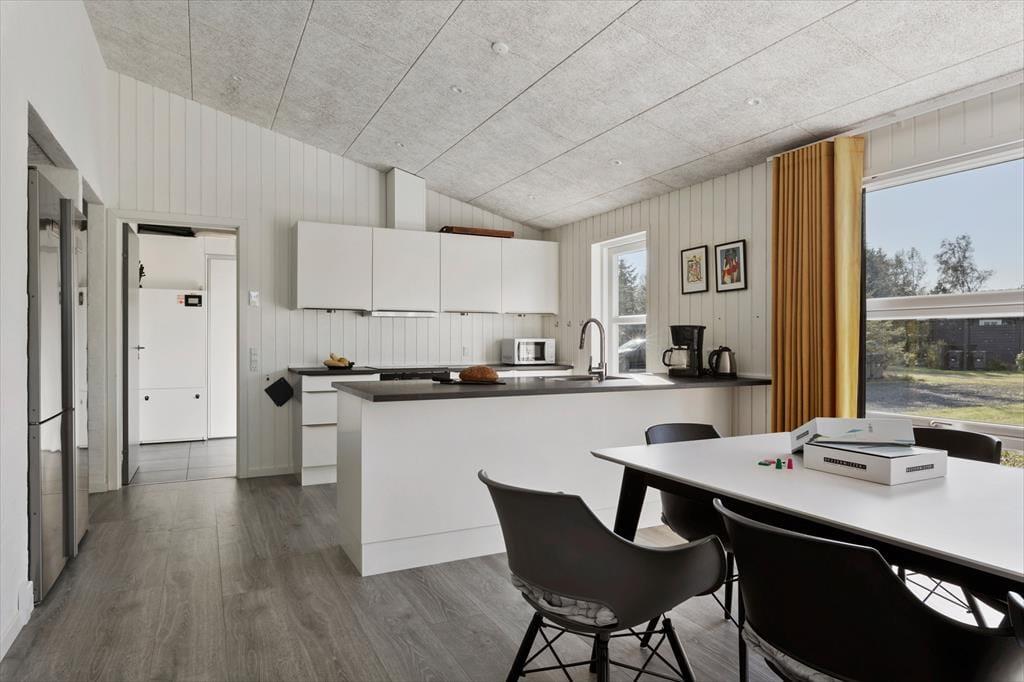 Das Ferienhaus liegt in ruhiger Umgebung mit schönen, naturnahen Erlebnissen in unmittelbarer Nähe. Von hier aus haben Sie die Möglichkeit, die Natur sowohl zu Fuß als auch mit dem Fahrrad zu erkunden. Der Strand ist in angenehmer Gehweite erreichbar, sodass Sie jederzeit einen Strandspaziergang machen oder ein erfrischendes Bad in der Nordsee genießen können. Die Umgebung bietet zudem malerische Wanderwege durch die Küstenlandschaft, und wenn Sie auf Entdeckungstour gehen möchten, liegen Fjerritslev und die beliebte Bade- und Touristenstadt Blokhus in kurzer Fahrdistanz. In Thorup Strand können Sie auch die traditionelle Landung der Fischerboote hautnah erleben, wenn die Boote direkt am Strand anlanden – ein einzigartiges Erlebnis, das Sie nicht verpassen sollten.