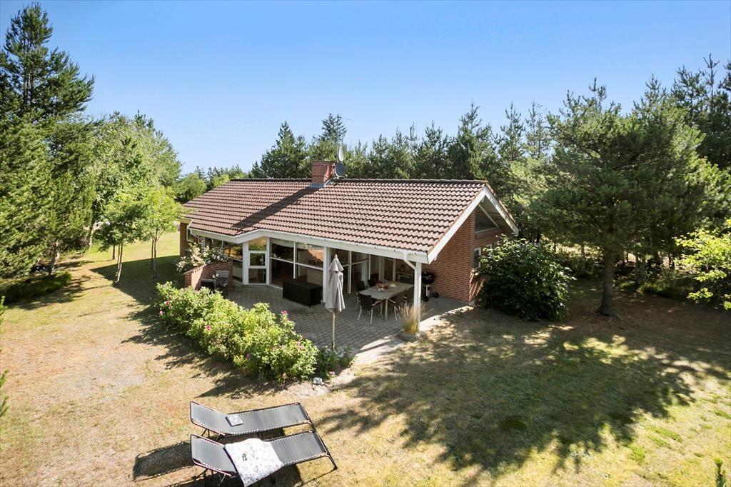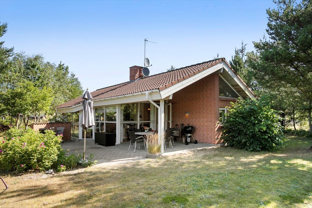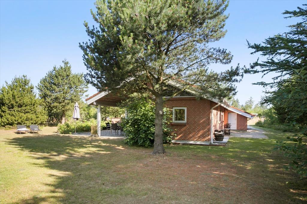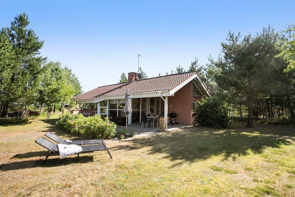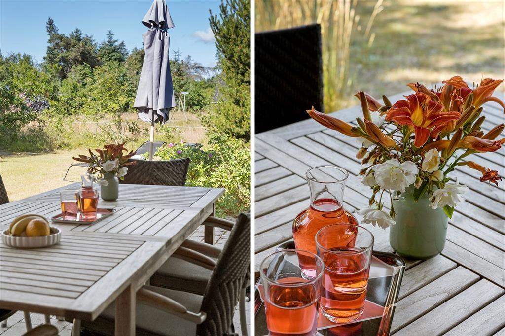 Wenn die Sommersonne hoch über dem Thorup Strand steht, werden Sie einen Großteil Ihres Urlaubes an der frischen Seeluft verbringen. Sie können zu jeder Zeit an den Strand spazieren, um dort zu baden oder mit den Kindern im warmen Sand zu spielen. Schön und stimmungsvoll geht es natürlich auch auf Ihrem 1.307 m² großen Grundstück zu, auf dem Sie eine gute Terrasse, eine Grasfläche und eine ansprechende Randbepflanzung erwarten. Die Terrasse weist gen Südwesten und wird daher einen Großteil des Tages über von der Sonne verwöhnt. Der überdachte Terrassenbereich stellt einen schönen Aufenthaltsplatz während der langen, hellen Sommerabende dar.