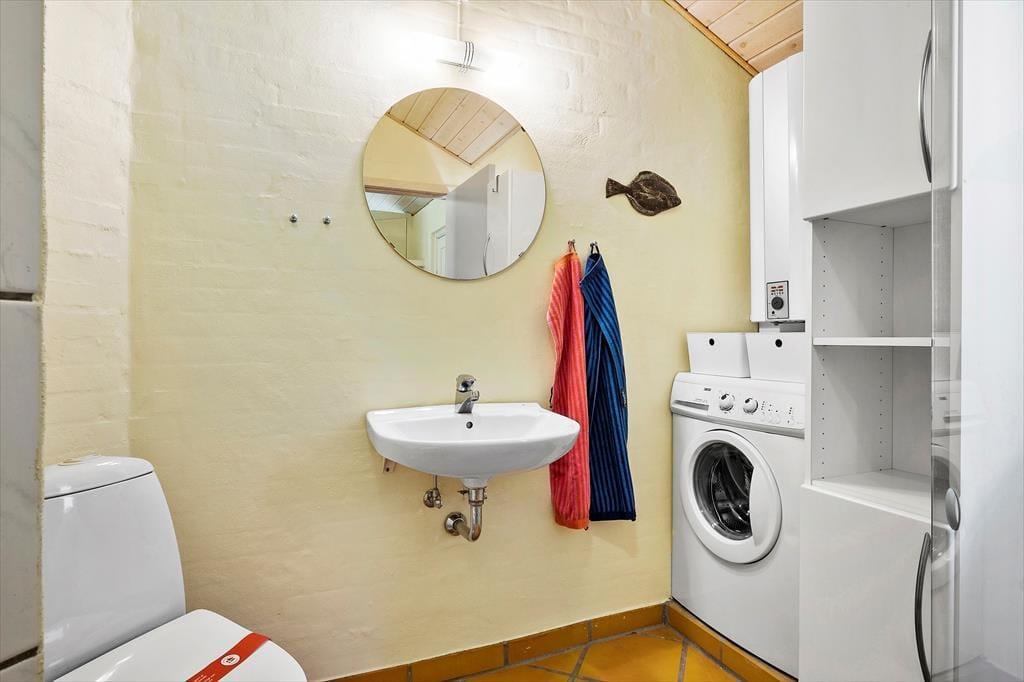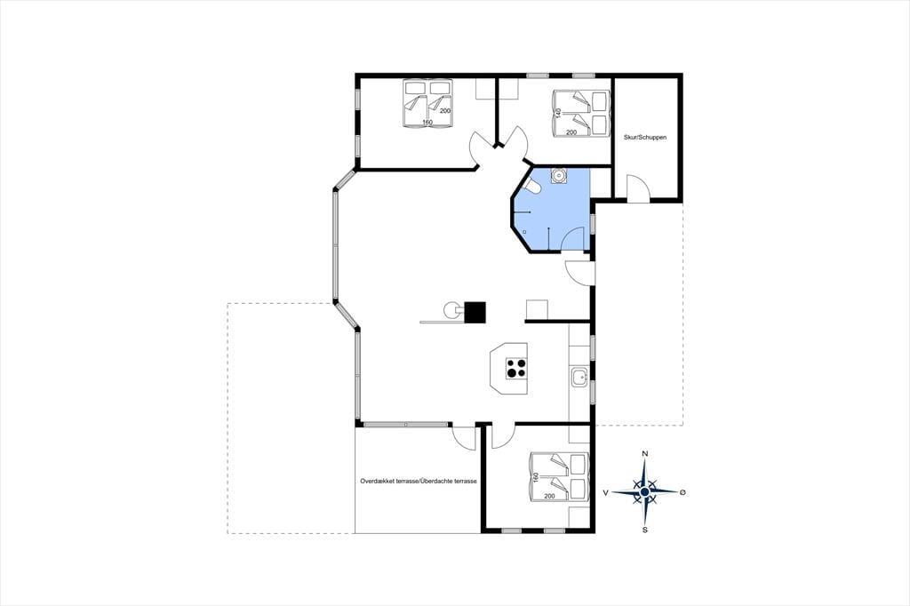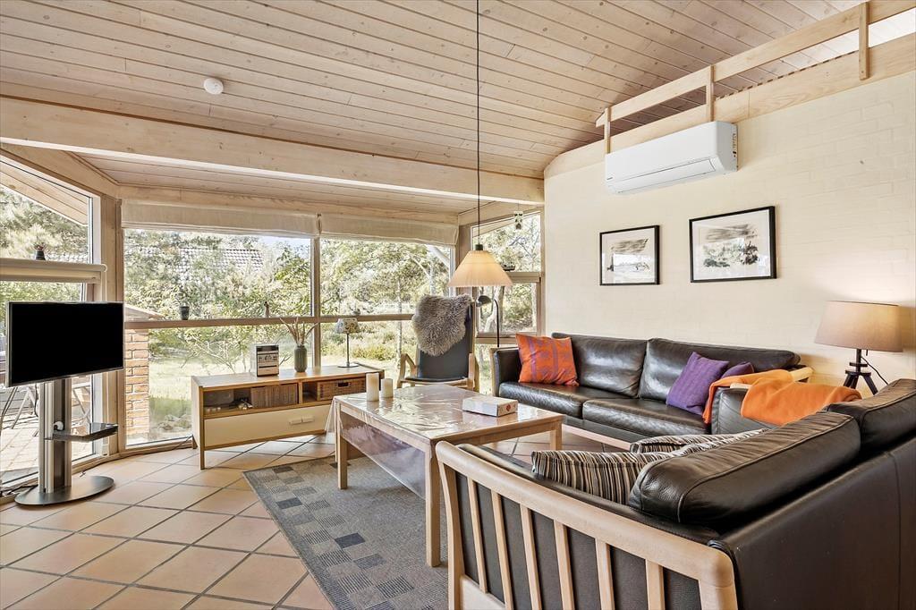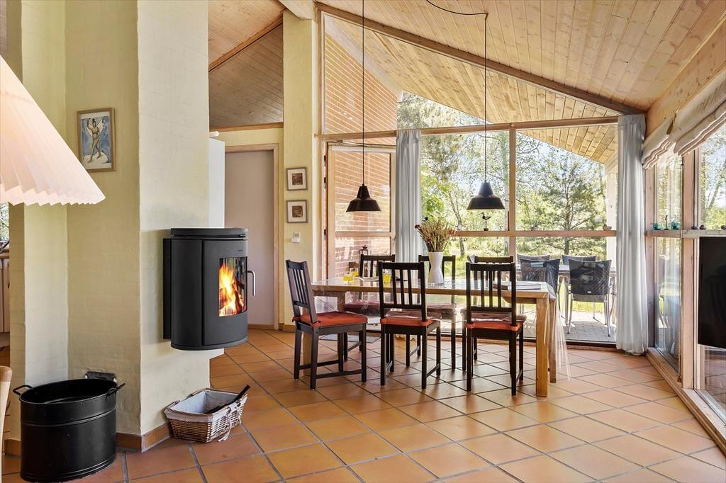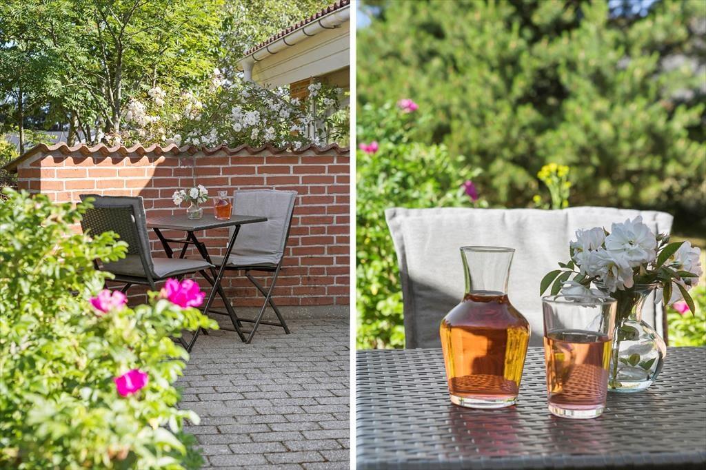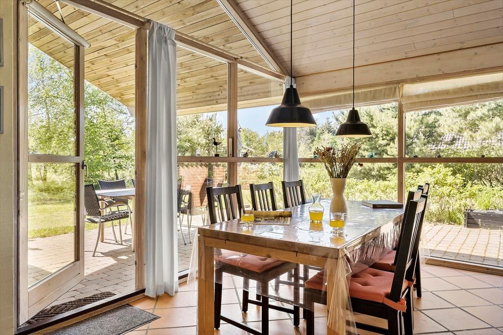 Wenn die Sommersonne hoch über dem Thorup Strand steht, werden Sie einen Großteil Ihres Urlaubes an der frischen Seeluft verbringen. Sie können zu jeder Zeit an den Strand spazieren, um dort zu baden oder mit den Kindern im warmen Sand zu spielen. Schön und stimmungsvoll geht es natürlich auch auf Ihrem 1.307 m² großen Grundstück zu, auf dem Sie eine gute Terrasse, eine Grasfläche und eine ansprechende Randbepflanzung erwarten. Die Terrasse weist gen Südwesten und wird daher einen Großteil des Tages über von der Sonne verwöhnt. Der überdachte Terrassenbereich stellt einen schönen Aufenthaltsplatz während der langen, hellen Sommerabende dar.