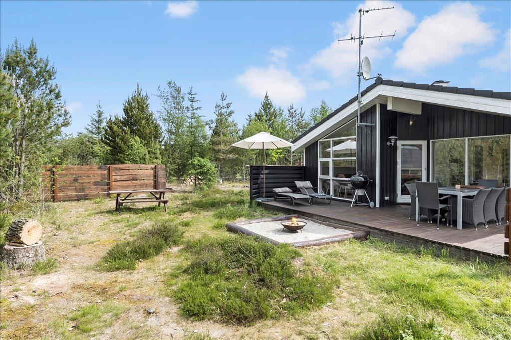 Das Ferienhaus liegt am Ende eines Weges, auf einem ausgesprochen schönen Naturgrundstück, das Sie mit einem freien Ausblick auf Heide und anderen schönen, abwechslungsreichen Bewuchs verwöhnt. Die Umgebung ist ruhig und schön und eignet sich hervorragend für alle, die viel Wert auf Frieden, Ruhe und attraktive Natur legen. An das Urlaubsdomizil schließt eine ansprechende, nach Süden gerichtete Holzterrasse. Hinzu gesellt sich eine teilweise überdachte Holzterrasse, die gen Südwesten weist. Auf dieser Terrasse können Sie sehr schön die lauen Sommerabende in entspannender Atmosphäre und einem köstlichen Essen vom Grill ausklingen lassen.