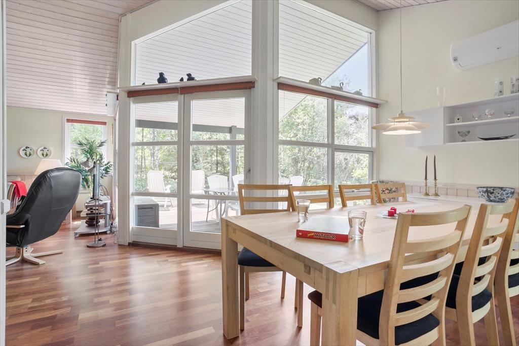 Das Naturgrundstück ist von Bäumen umgeben. Dank der ungestörten Lage in einer Sackgasse bieten sich Ihnen beste Erholungsmöglichkeiten. Zu schönen Ausflügen in die Natur laden das nahegelegene Waldgebiet Thorup Klitplantage und die Nordsee ein. Rund eineinhalb Kilometer trennen Sie von einem guten Waldspielplatz. Ein Strandspaziergang ist zu jeder Jahreszeit und bei jedem Wetter reizvoll. Spazieren Sie beispielsweise zum Thorup Strand Kutteranlandeplatz, an dem Sie die schönen Fischerboote begutachten und im beliebten Fiskehus eine köstliche Mahlzeit genießen können. Ihre Einkäufe erledigen Sie das gesamte Jahr hindurch in Fjerritslev. Für einen Ausflug eignen sich unter anderem der nördlich gelegene, pulsierende Badeort Blokhus und der populäre Vergnügungspark Fårup Sommerland oder der westlich gelegene Fischereihafenort Hanstholm und der fantastische Nationalpark Thy.