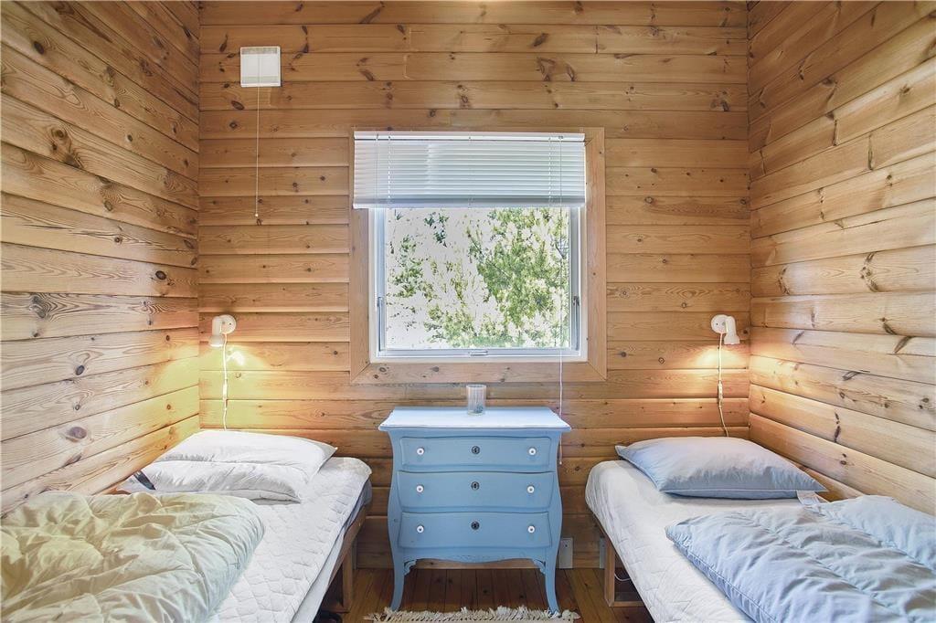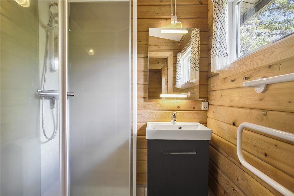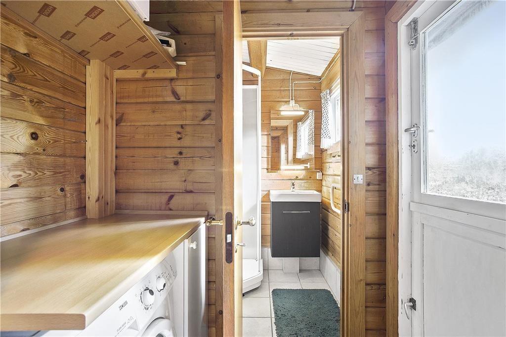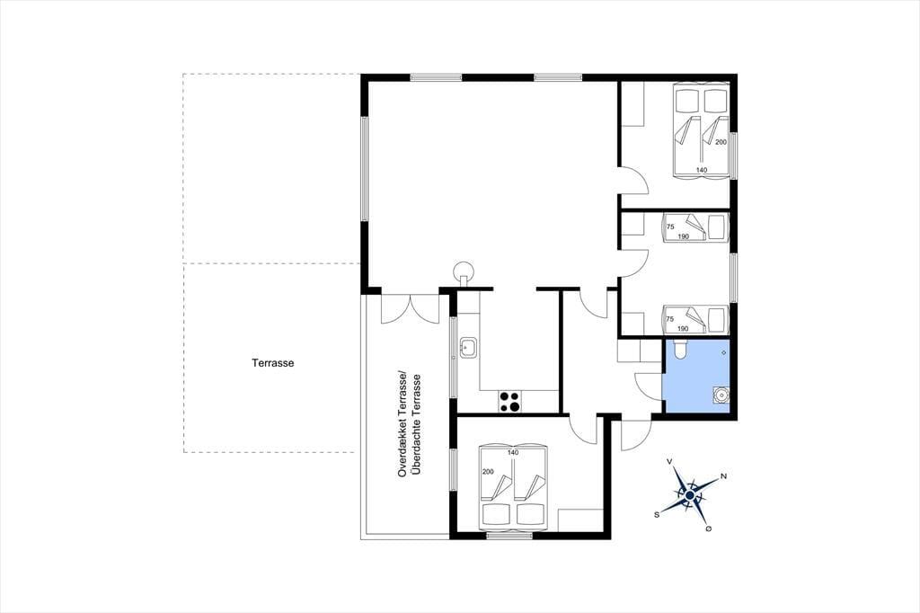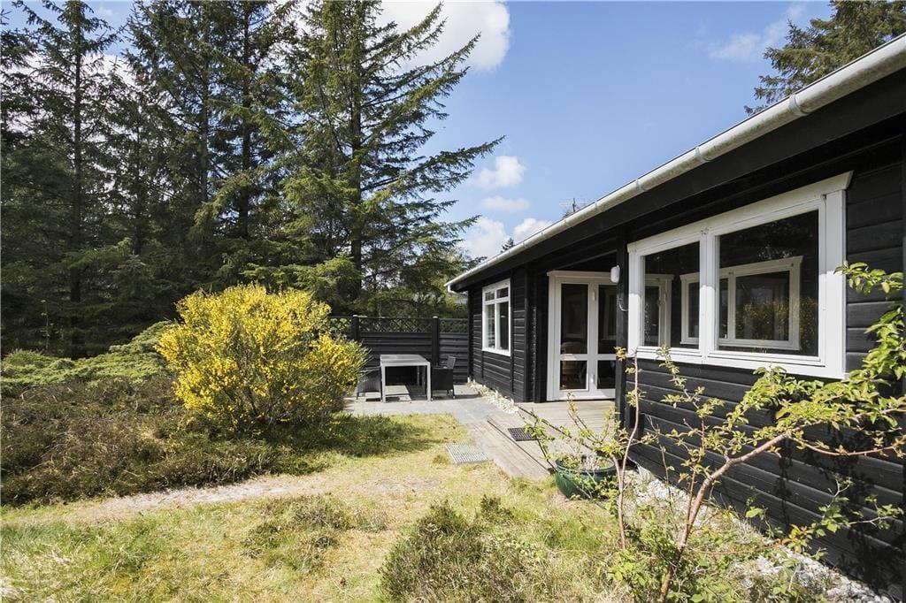 Trotz der wenigen Quadratmeter hat das Ferienhaus eine großzügige Raumaufteilung. Der Kamin steht zusammen mit gemütlichen und gepflegten Korbmöbeln im Wohnzimmer, und in der Ecke befindet sich eine Essecke mit Bank und Stühlen. Die Küche mit Ausgang zu einer überdachten Terrasse ist gut u. a. mit Geschirrspüler, Kühlschrank und Elektroherd ausgestattet - Sie werden keinen modernen Komfort vermissen. Das kleine Badezimmer ist mit Dusche und Waschbecken. Das Ferienhaus hat drei Schlafzimmer, wovon zwei mit jeweils einem Doppelbett und eins mit zwei Einzelbetten eingerichtet ist.