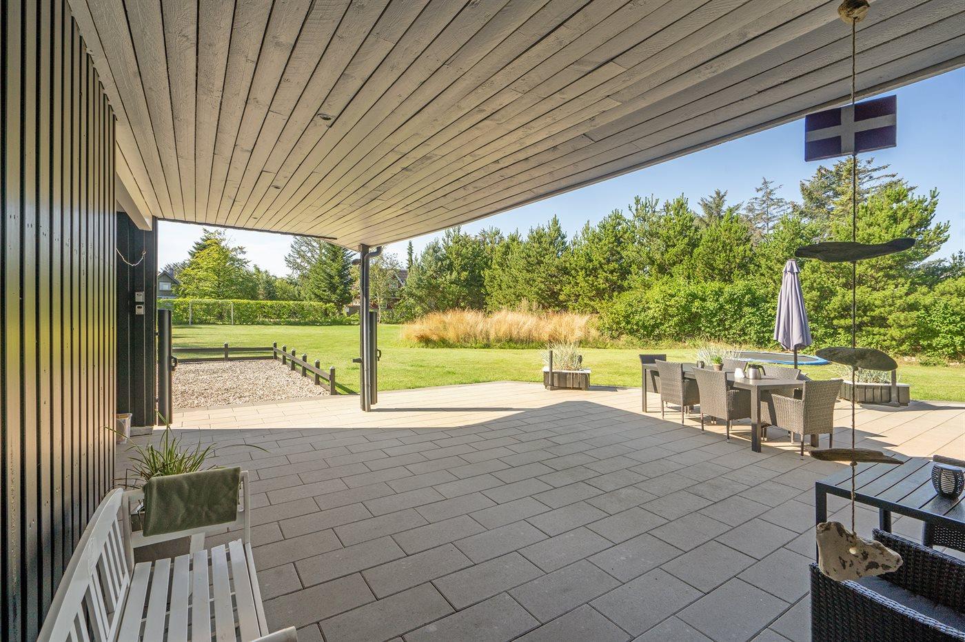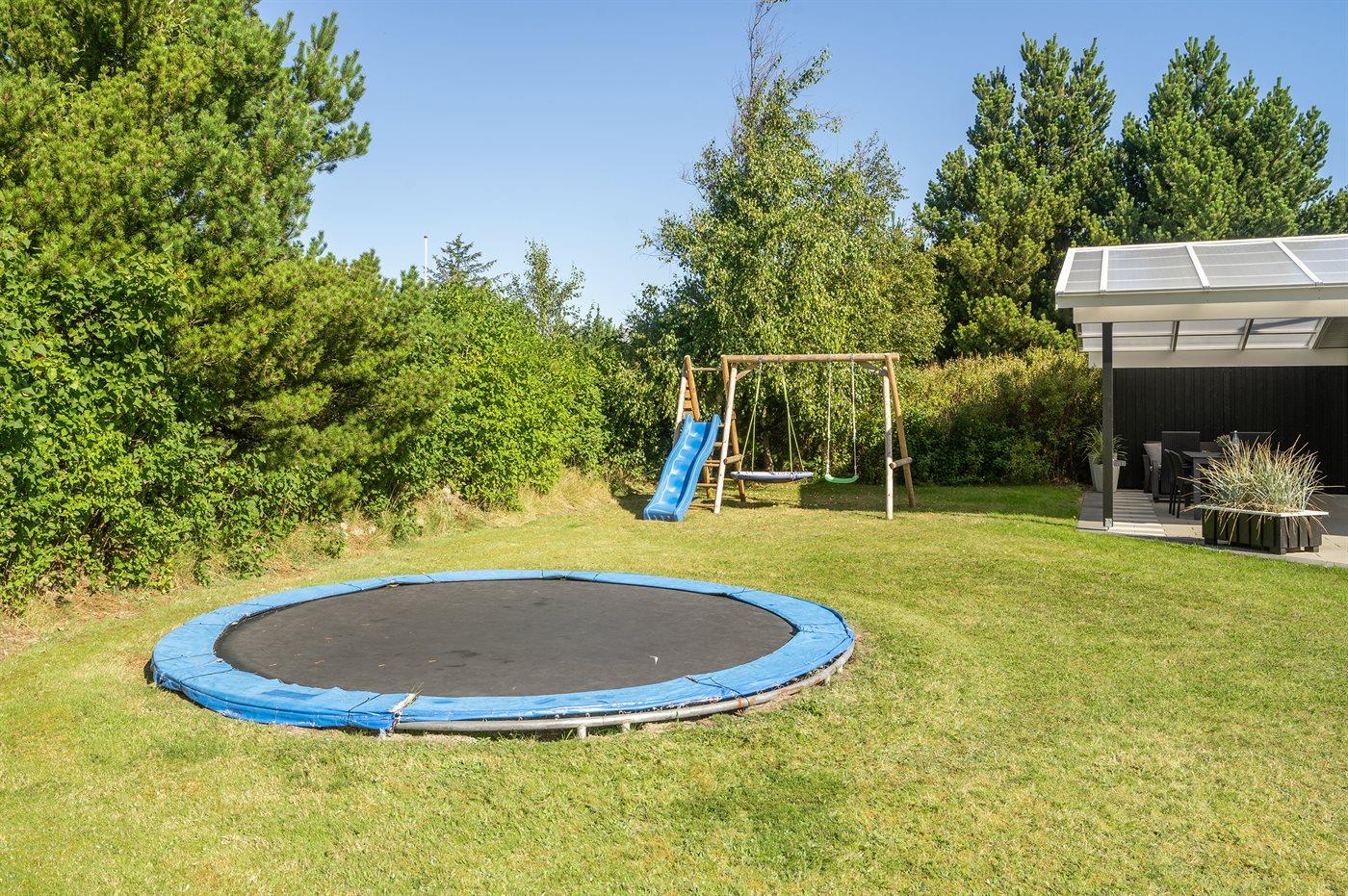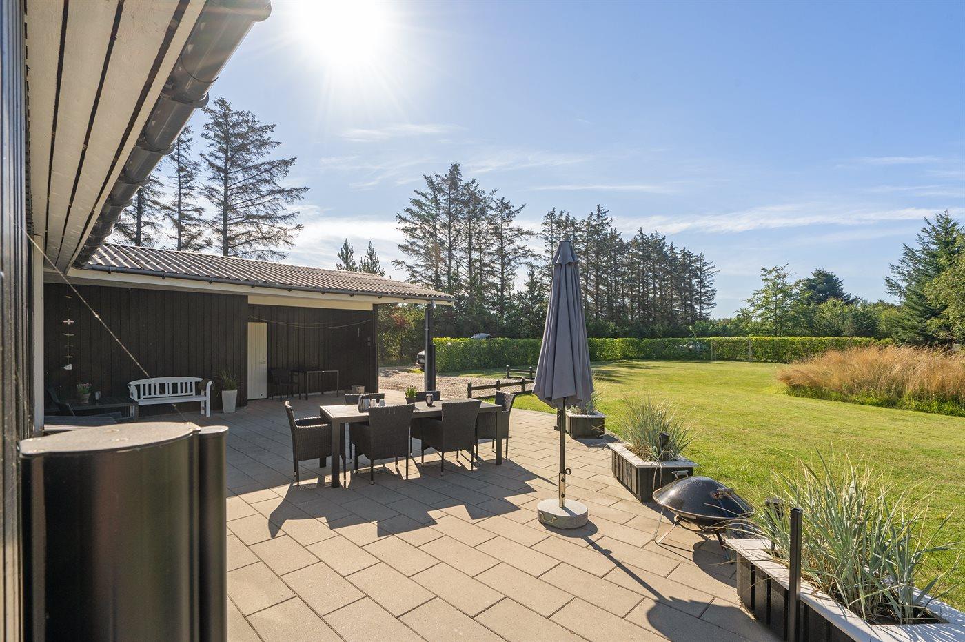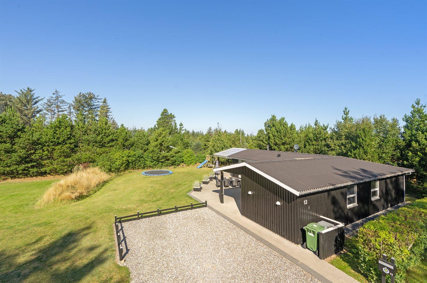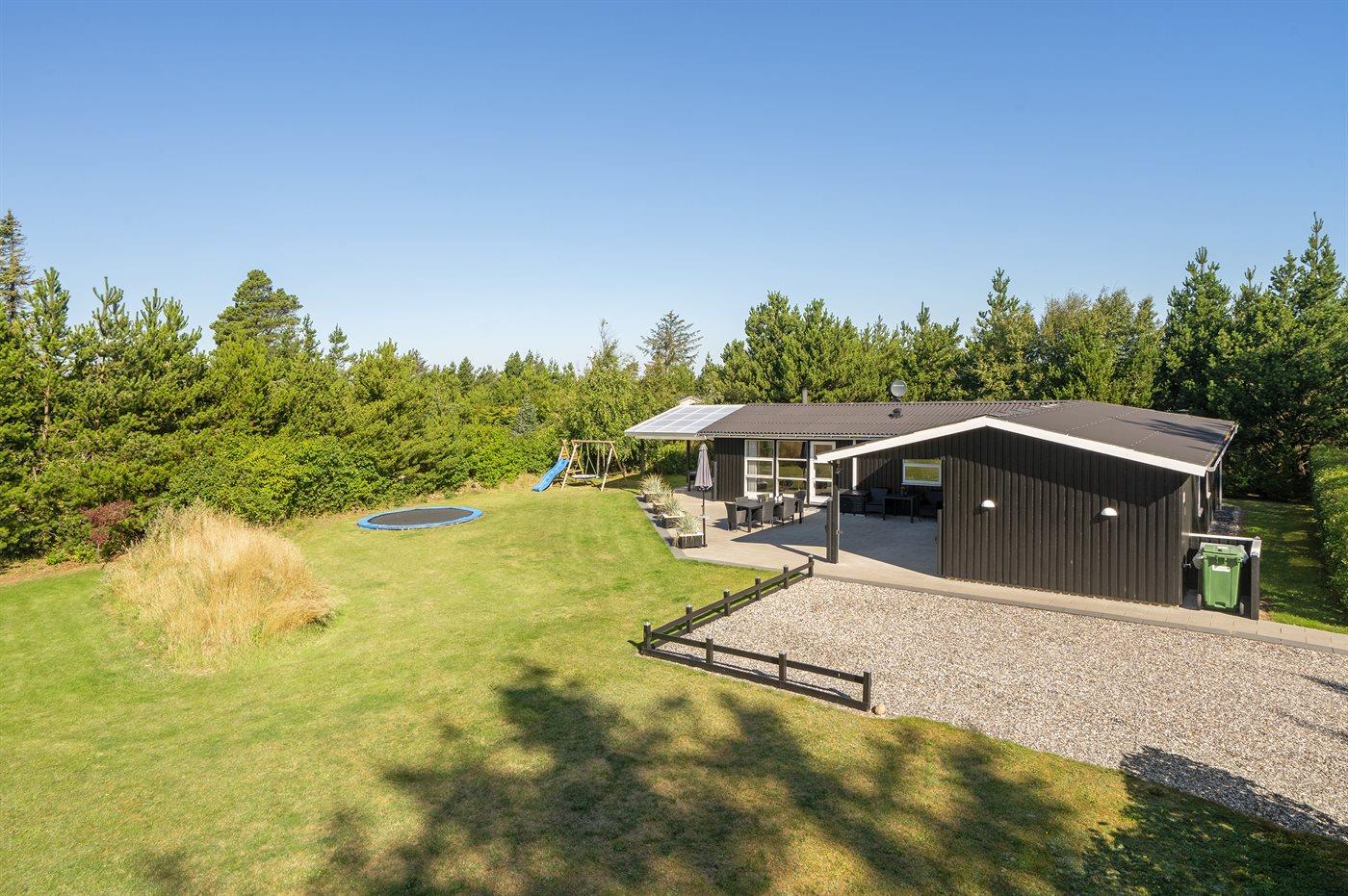 Die Ferienunterkunft liegt auf einem 1700 m² großen Naturgrundstück. Die Entfernung zum Meer beträgt 400 m. Die nächste Einkaufsmöglichkeit liegt 1000 m entfernt. Es steht ein 65 m² Terrassenareal zur Verfügung. Außerdem gibt es 30 m² überdachte Terrasse. Geräteraum. Schaukel. Trampolin. Fußballtor. Es ist ein Ladestecker für Elektroautos installiert. Ladestecker Typ 2. Mit einer Ladeleistung von 11 kW. Parkplatz auf dem Grundstück.