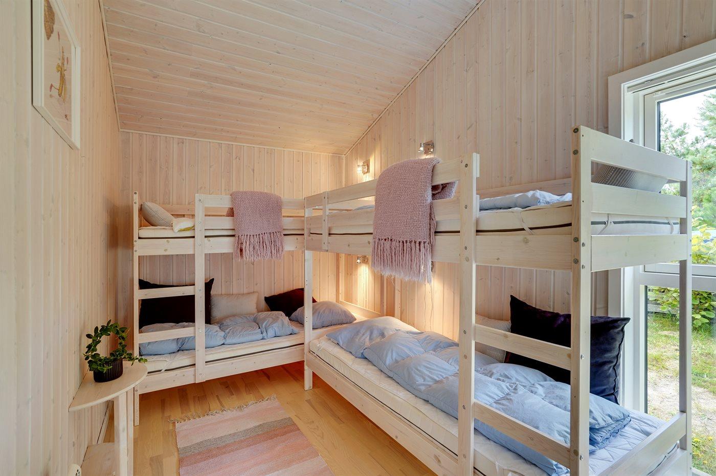Die Schlafplätze verteilen sich auf 4 Schlafräume. 6 Schlafplätze in Doppelbetten. 4 Schlafplätze in Etagenbetten. Ferner steht ein Kinderbett zur Verfügung.
