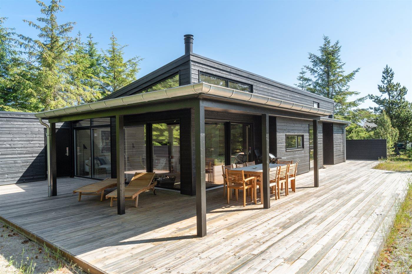Modernes Ferienhaus in Thorup Strand mit Kamin, Fußbodenheizung und Elektroauto-Ladestation.