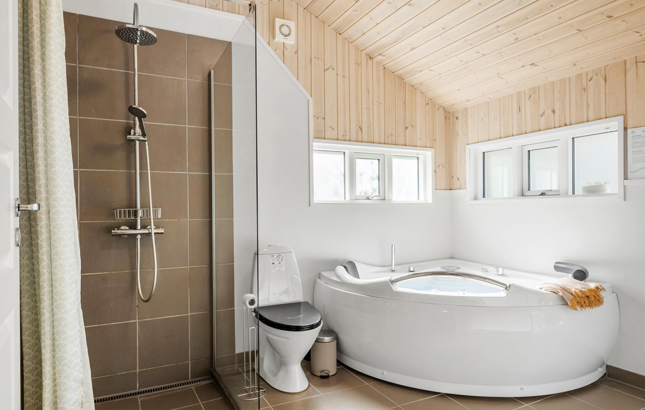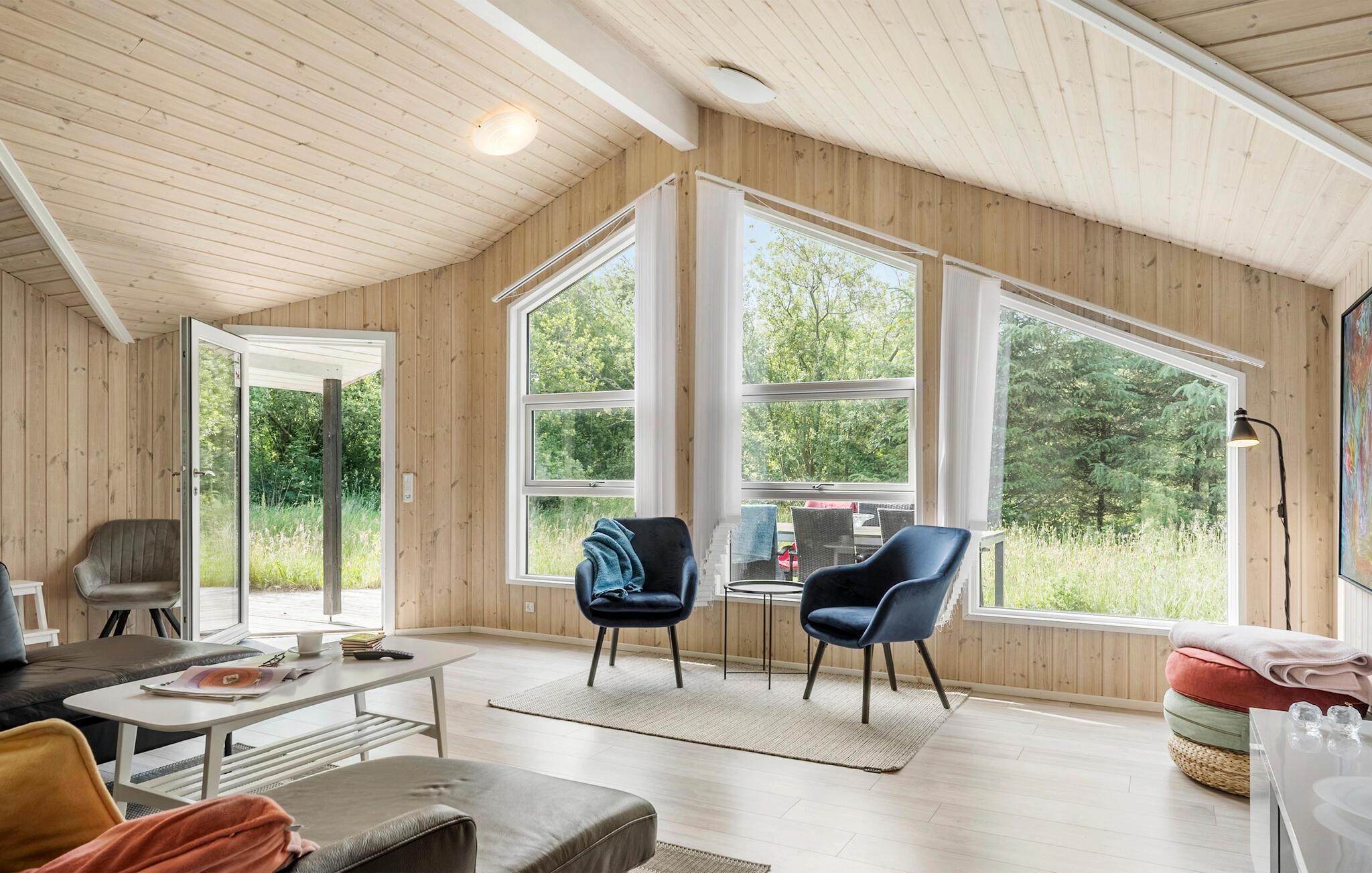 Dieses helle und geräumige Ferienhaus liegt eingebettet in ein ruhiges, grünes Naturgrundstück und verwöhnt Sie mit einem freundlichen, komfortabel ausgestatteten Interieur. Freuen Sie sich auf gesellige Mahlzeiten im offenen Wohnbereich, wo große Fensterfronten den Blick in den Garten freigeben. Gönnen Sie sich wohlige Momente in der Sauna oder im Whirlpool, während sich die Kinder an den Spielmöglichkeiten erfreuen und andere den Kochlöffel in der Küche schwingen.