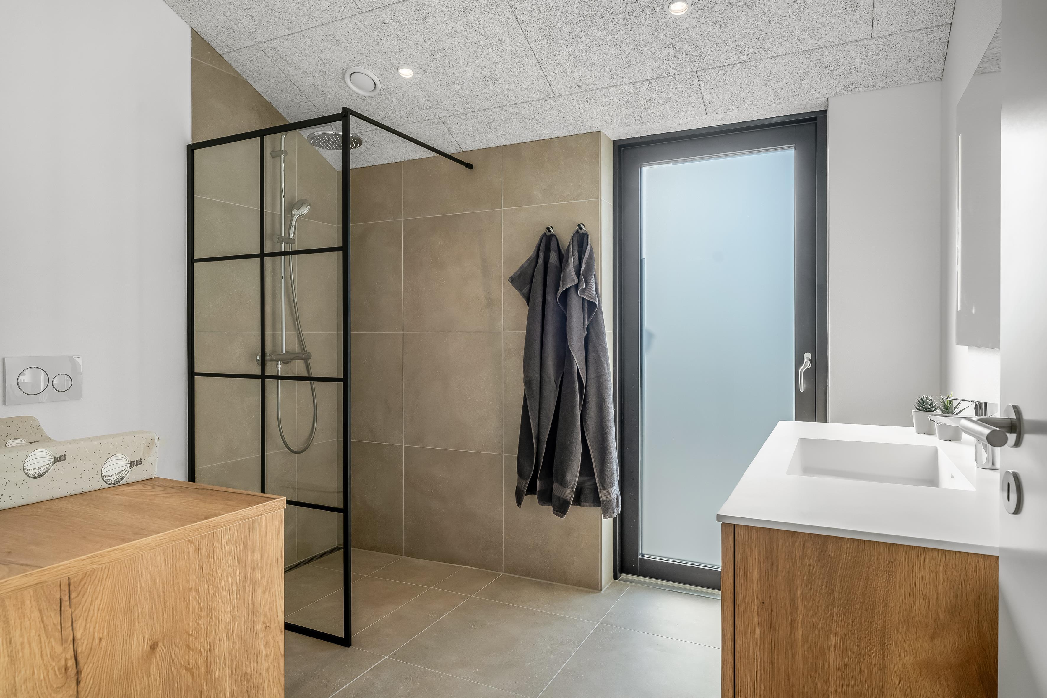 Das Haus wurde mit Fokus auf Familienfreundlichkeit und Komfort gestaltet. Es verfügt über drei moderne Badezimmer, jeweils mit WC und Dusche, sodass morgens kein Anstehen beim Duschen ist. Im gesamten Haus, inklusive der Badezimmer, sorgt eine Fußbodenheizung dank energiesparender Wärmepumpe für angenehme Wärme an kalten Tagen.
