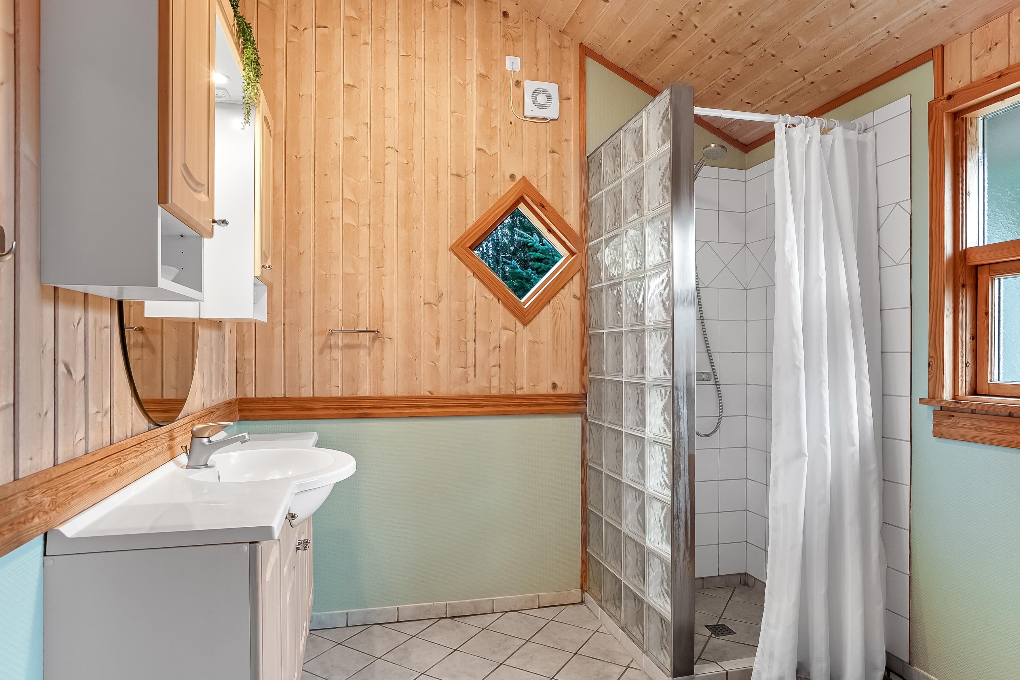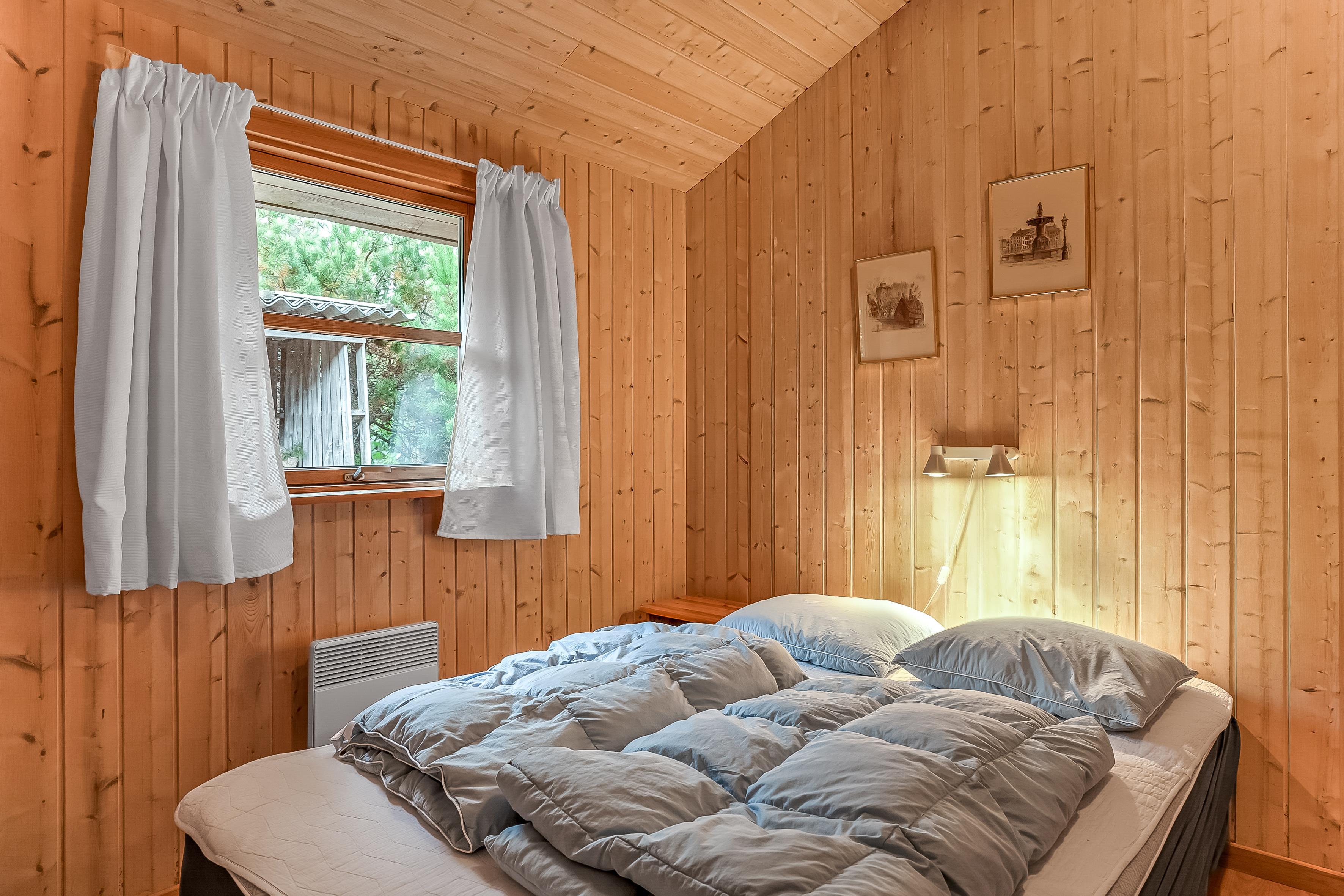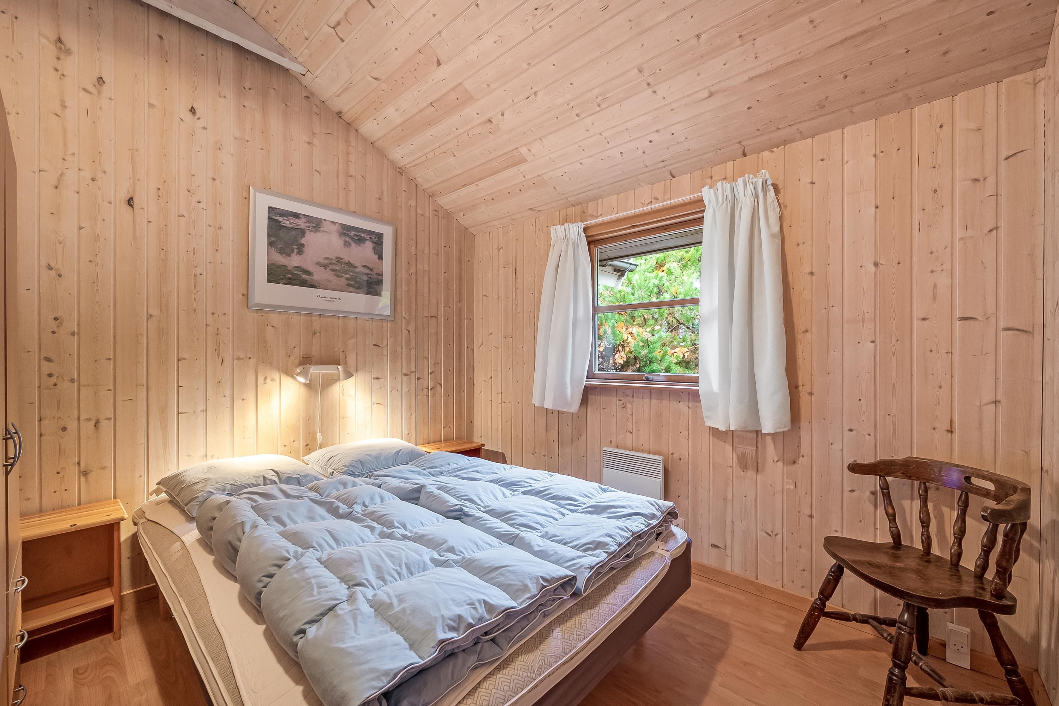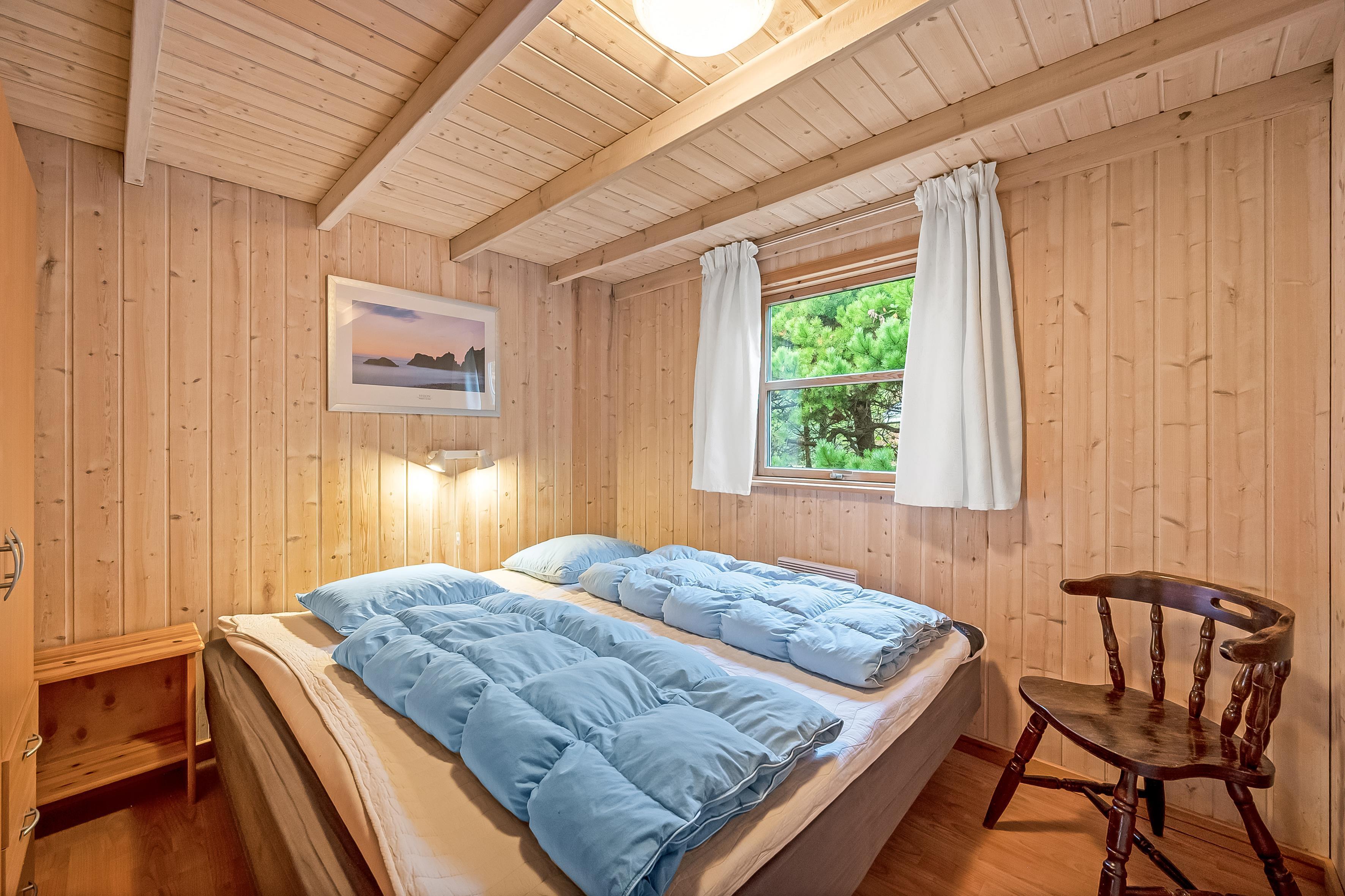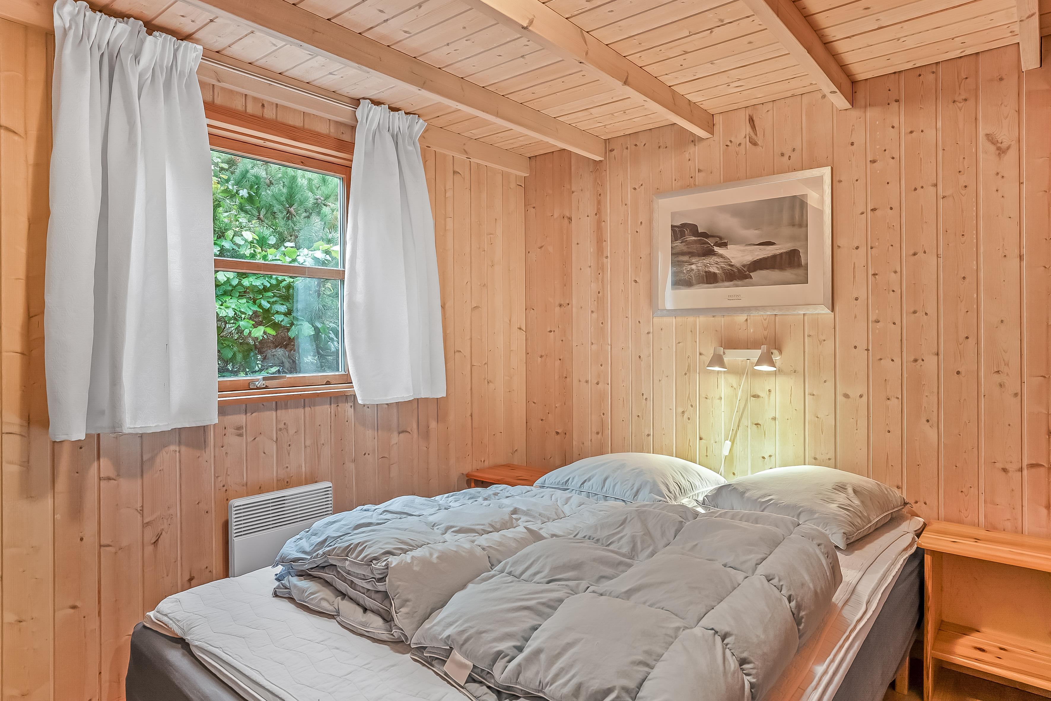 Die Schlafplätze verteilen sich auf 4 Schlafzimmer mit Doppelbetten sowie eine Schlafempore mit Platz für 4 Personen auf Matratzen – perfekt für Kinder oder zusätzliche Gäste. Das Ferienhaus verfügt über zwei Badezimmer; das größere bietet Fußbodenheizung, eine Duschkabine, einen luxuriösen 2-Personen-Whirlpool und direkten Zugang zur Sauna, während das kleinere Badezimmer ebenfalls Fußbodenheizung und eine Duschkabine hat.
