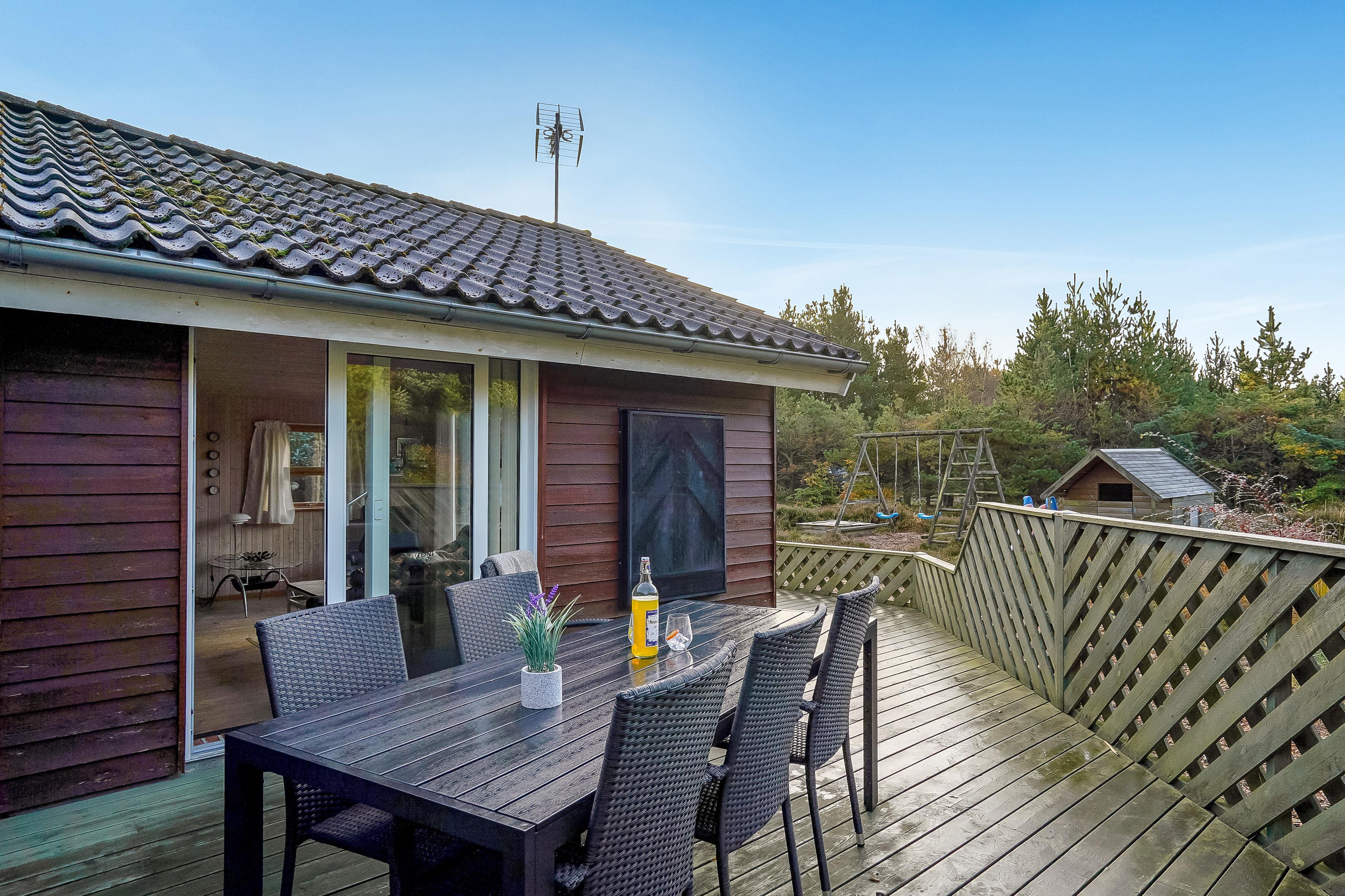 Dieses schöne Ferienhaus an der Tyttebærstien 43 bei Torup Strand, bietet eine fantastische Lage nahe der Nordsee und viel Platz für die ganze Familie. Das Haus liegt auf einem herrlichen Naturgrundstück, wo Sie die Feuerstelle und einen aufregenden Spielbereich für die Kinder mit Schaukel, Sandkasten, Spielhaus und Rutsche genießen können – eine wahre Oase für Groß und Klein.