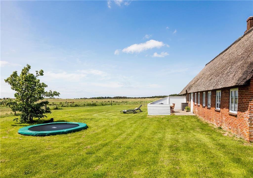 Das Bauernhaus steht schon seit mehr als zwei Jahrhunderten am nördlichen Ende der Insel Rømø. Das Design ist daher auch ganz klassisch mit Reetdach, Sprossenfenstern und einer verzierten Terrassentür, während die Deckenhöhe etwa 1,80 Meter beträgt. Gleichzeitig macht der schöne Gesamteindruck des Hauses deutlich, dass es mit liebevoller Hand renoviert und modernisiert wurde. Die hellen Farbtöne und die geschmackvollen Möbel prägen alle Räume des Hauses, die aus drei Schlafzimmern, einem Hauswirtschaftraum mit Waschmöglichkeit und einem gut ausgestatteten Badezimmer mit Fußbodenheizung bestehen. Die Küche ist auf eine gemütliche Art und Weise mit einem kleinen Esstisch eingerichtet, und wenn du deine Zeit nicht dort verbringst, kannst du dich im anliegenden Wohnbereich aufhalten, wo du Playstation spielen, Filme anschauen oder einfach nur die Wärme des Brennofens in Ruhe auf dem Sofa genießen kannst.