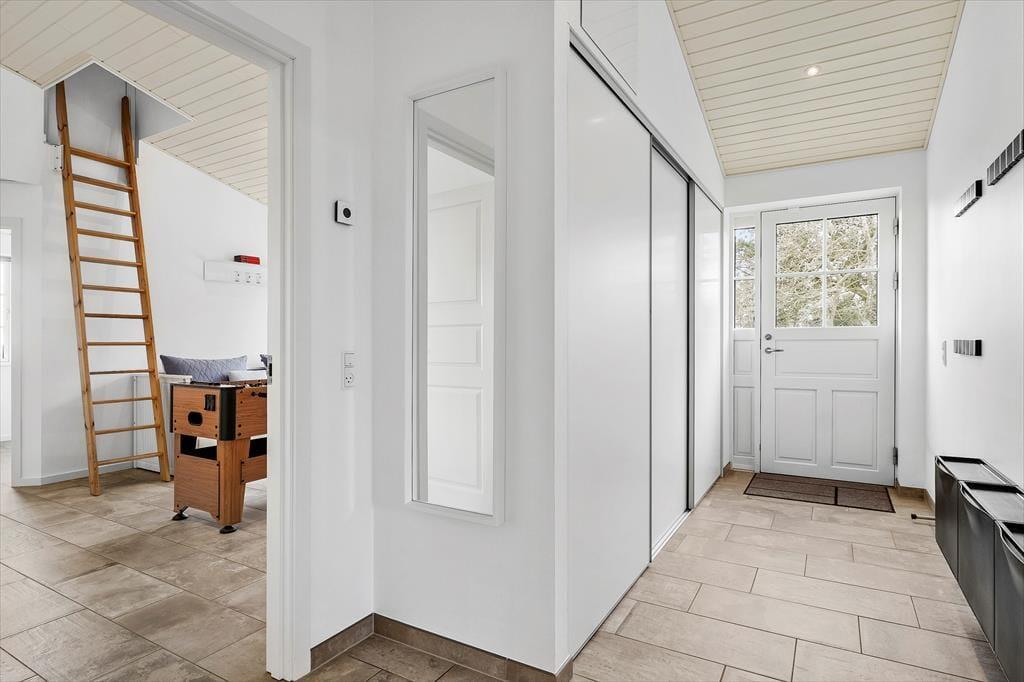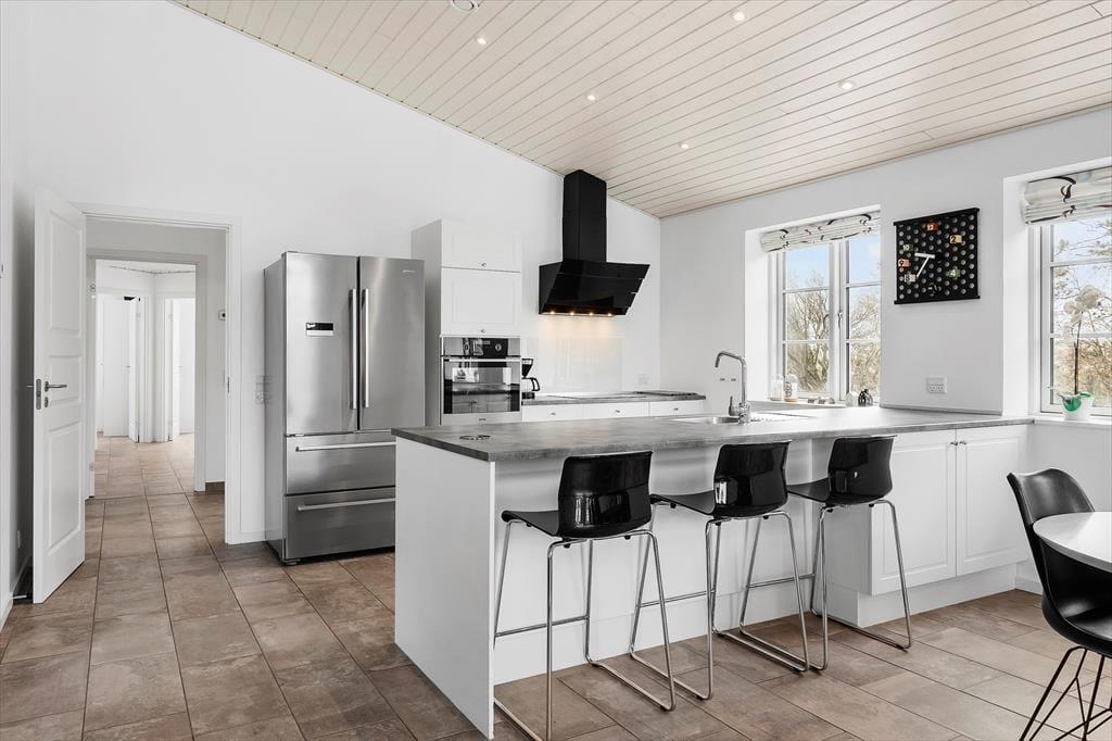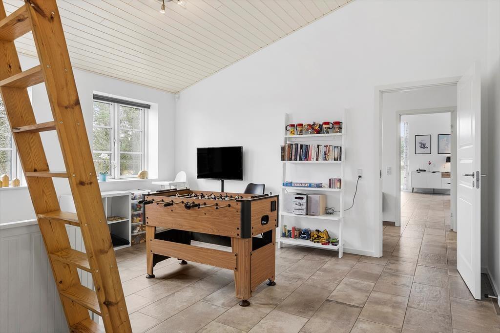 Das Ferienhaus ist ein solides Steinhaus aus dem Jahr 2017 und verfügt über eine Wohnfläche von 146 m², sodass der Rahmen um deinen Urlaub sowohl modern als auch geräumig ist. Alle Räume sind hell und freundlich eingerichtet, auch der Eingangsbereich und die zwei Badezimmer, von denen eines mit Sauna und Whirlpool ausgestattet ist. Im großen, hohen Aufenthaltsraum kann sich die ganze Urlaubsgesellschaft versammeln, um beim Kochen zu entspannen, Gesellschaftsspiele zu spielen oder sich einfach nur in der Sofaecke vor dem Brennofen auszuruhen. Darüber hinaus kannst du dich auch im Aktivitätsraum vergnügen, der mit einem Tischfußballspiel und Playstation 3 ausgestattet ist. Hier können Groß und Klein spielen und um die Wette „gamen“. In diesem Raum steht ebenfalls ein Schlafsofa für 2 Personen, das eine gute Ergänzung zu den Schlafplätzen in den drei Schlafzimmern und auf der Dachnische darstellt.