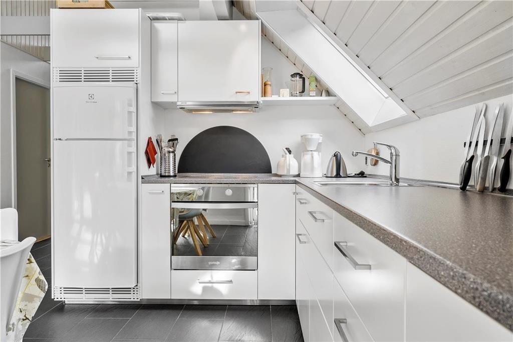 Es herrscht eine helle und freundliche Atmosphäre im Haus, das in einem schön aktualisierten Zustand präsentiert wird. Man fühlt sich hier sofort wohl, und im großen Wohnbereich tragen die gewölbte Decke und die freiliegenden Balken zur charmanten Stimmung bei. Die großen Fenster lassen viel Tageslicht herein, und an warmen Sommertagen kann man die Tür zur nach Süden ausgerichteten Terrasse öffnen, sodass Innen- und Außenbereich nahezu verschmelzen. Die Einrichtung ist funktional und bietet die besten Voraussetzungen für gesellige Zusammenkünfte mit Familie und Freunden während Ihres Urlaubs: Das natürliche Herz des Hauses ist der große Wohnbereich mit Kamin und integrierter Küche, die 2019 renoviert wurde. Hinzu kommen drei gute Schlafzimmer sowie ein Dachgeschoss mit zusätzlichen Schlafplätzen und einem schönen Blick auf das Grün draußen. Seit 2024 gibt es neue Betten und Matratzen im Haus, mit Ausnahme des Zimmers mit den beiden Einzelbetten. Schließlich gibt es ein schönes Badezimmer mit Duschnische und Sauna.
