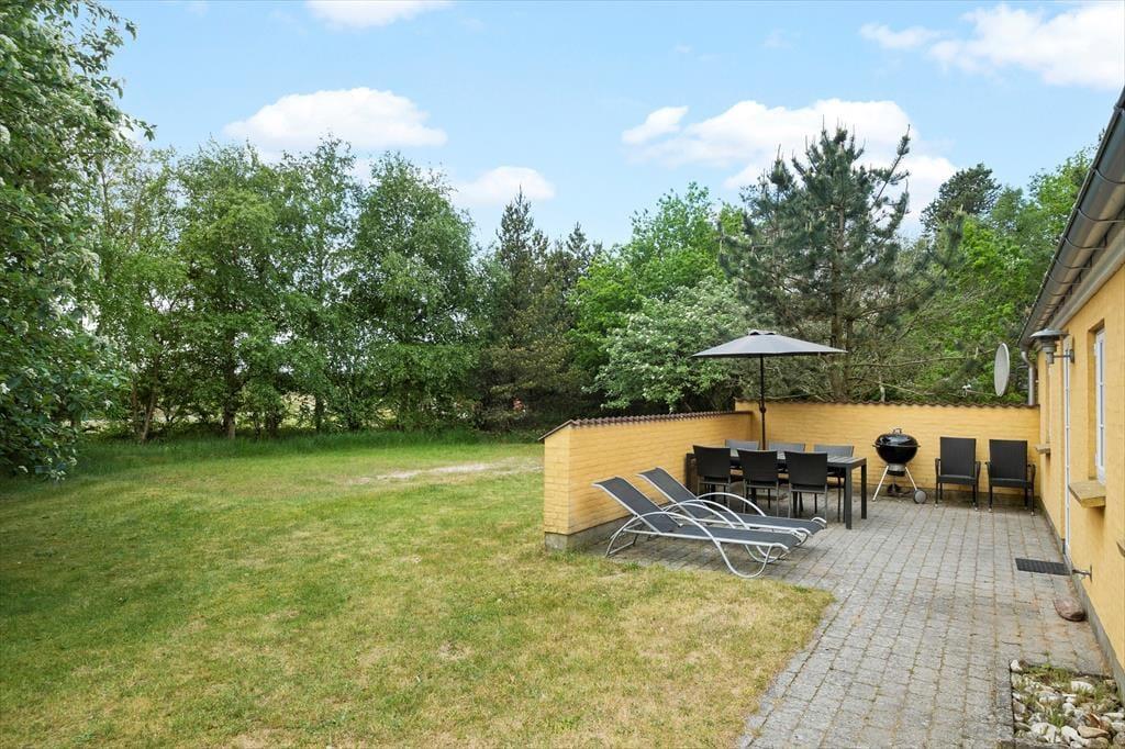 Auch draußen auf dem 2.500 m² großen Grundstück, das sich rund um das Haus erstreckt, sind die Urlaubsbedingungen bestens. Kiefern und andere Randbepflanzungen schirmen den Rasen ab, und es gibt auch eine halbe Mauer auf der Terrasse, die Schutz bietet, wenn du dich in den Liegestühlen sonnst oder eine köstliche Mahlzeit mit frischen Zutaten genießst, die auf dem Grill zubereitet wurden.