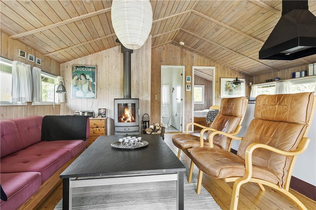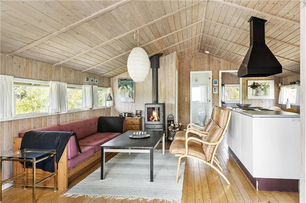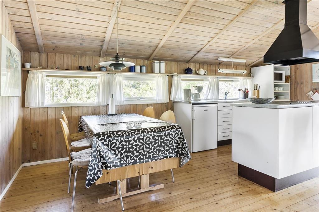 Das Ferienhaus ist eines der typischen Exemplare mit heller Holzfassade, das gut in die naturschöne Umgebung passt. Im Inneren des Hauses ist die Atmosphäre ebenfalls harmonisch. Die hohen, getäfelten Räume und die zahlreichen Fenster sorgen für einen guten Lichteinfall aus allen Richtungen. Die Stube und die gut ausgestattete Küche sind im Wohnbereich integriert, und hier wird der Ort sein, an dem du in Ruhe kochen, Gesellschaftsspiele spielen, neben dem Brennofen in guten Büchern lesen oder einen Film sehen kannst. Wenn sich der Urlaubstag dem Ende zuneigt, kannst du dich auf eine gute Nacht in den drei Schlafzimmern freuen. Und wenn du gemütlich unter deiner Bettdecke liegst, kannst du davon träumen, welche tollen Ereignisse der morgige Urlaubstag wohl mit sich bringen wird.
