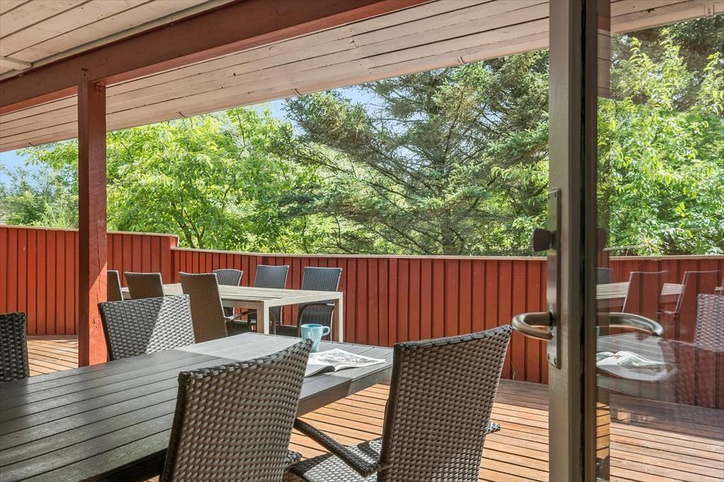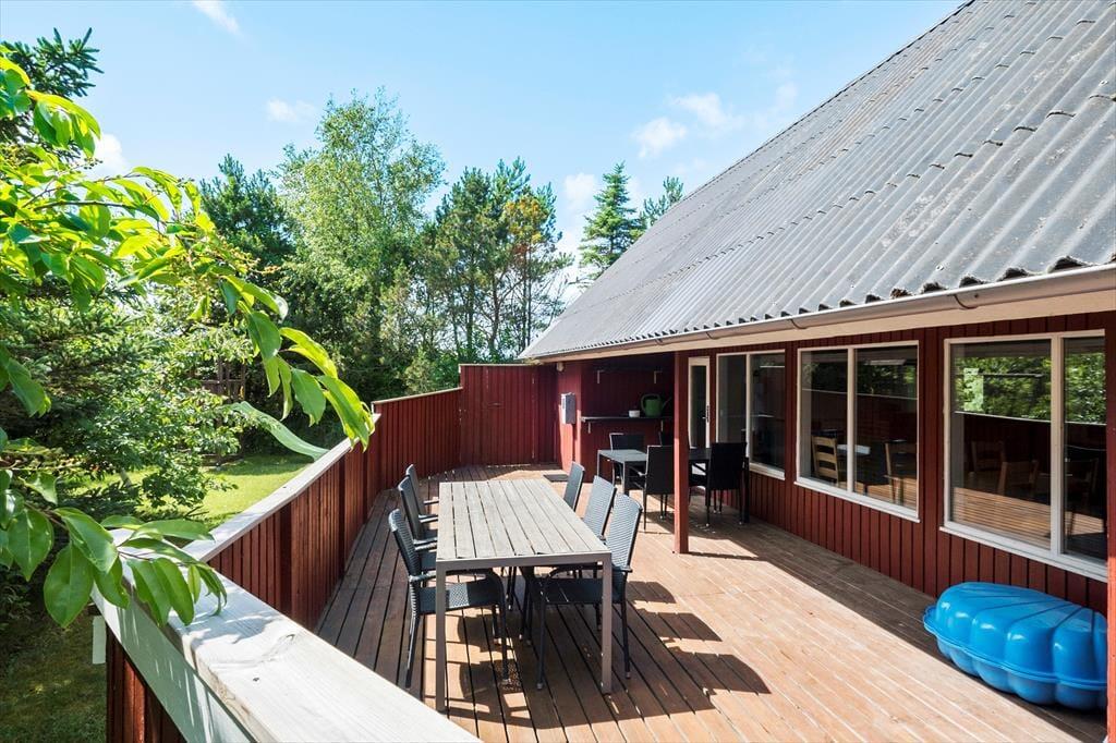 Wenn du morgens aufwachst und blauer Himmel sowie warme Temperaturen auf dich warten, warum nicht das Frühstück draußen servieren? Die große Holzterrasse lädt dazu ein, das gute Wetter zu genießen, und dank der Abschirmung findest du auch Schutz vor dem Wind. Für die Kinder gibt es ein Spielgerüst mit Rutsche und Schaukeln, und auf der großen Rasenfläche ist genug Platz zum Toben. Hast du deinen Hund mitgebracht, kannst du ihn sicher im eingezäunten Bereich hinter dem Haus frei laufen lassen.