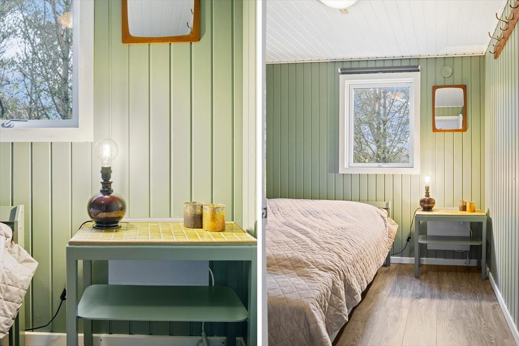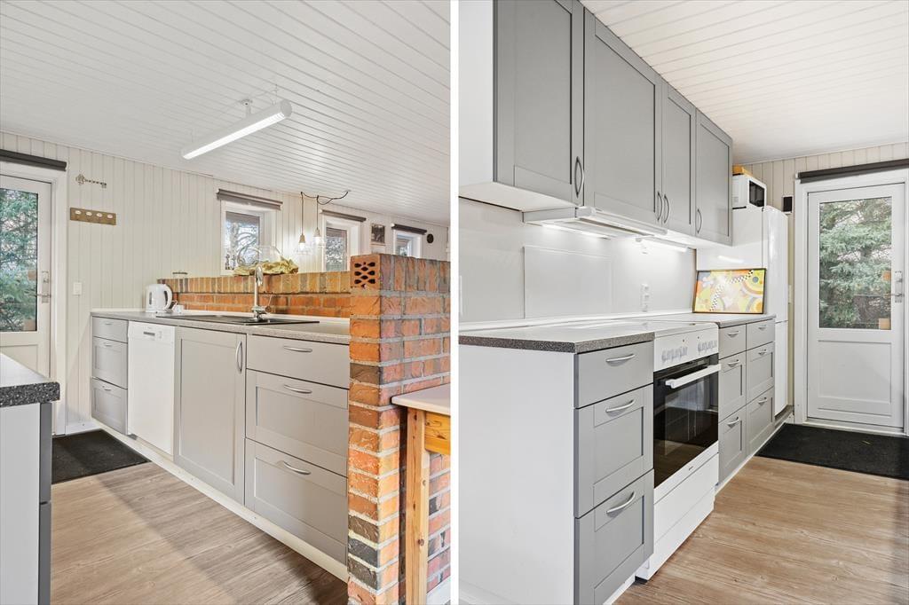 Hinter der rot gestrichenen Holzfassade erwartet dich eine gemütliche Einrichtung mit schönen Möbeln und warmen Farben, die für eine entspannte Urlaubsatmosphäre sorgen. Das Ferienhaus hat drei Schlafzimmer und ein Badezimmer. Der Mittelpunkt des Hauses ist der offene Wohnbereich, in dem Küche und Wohnzimmer miteinander verbunden sind. Hier kannst du mit deiner Familie oder deinen Freunden Brettspiele spielen, ein gutes Buch lesen, gemeinsam kochen oder einfach die Zeit zusammen genießen. An kühleren Tagen kannst du den Kamin anzünden und den Duft von selbst gebackenem Kuchen aus der Küche genießen. An warmen Sommertagen kannst du die Terrassentür offenlassen, damit drinnen und draußen ineinander übergehen.