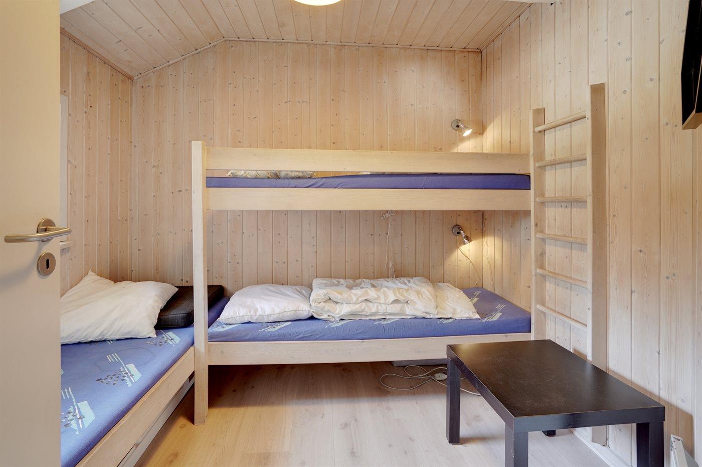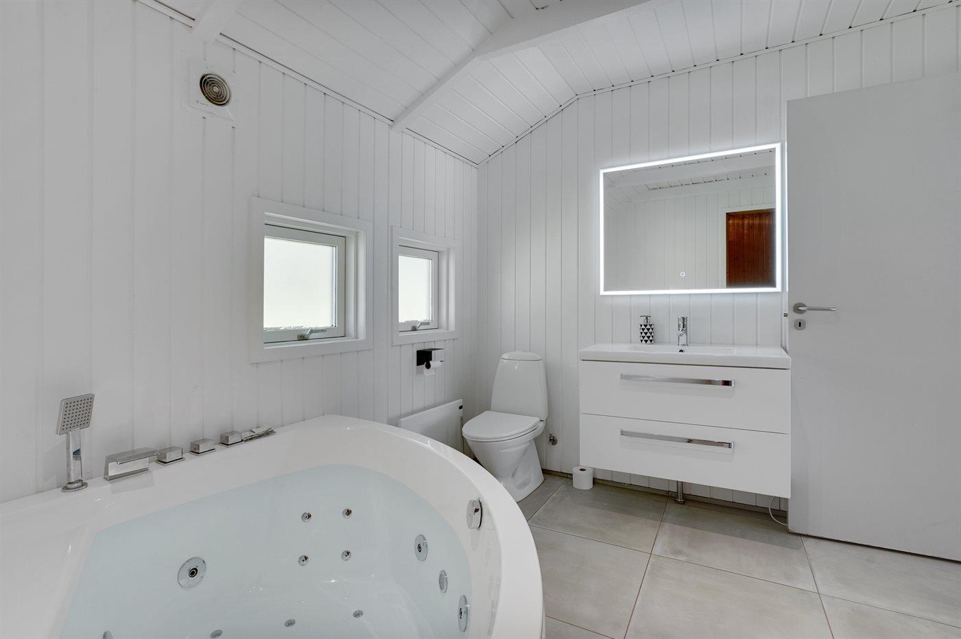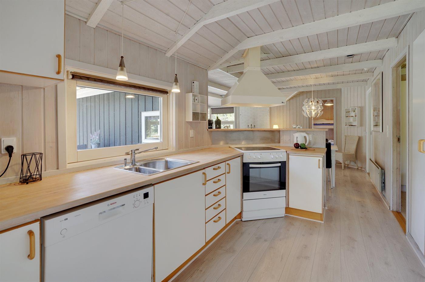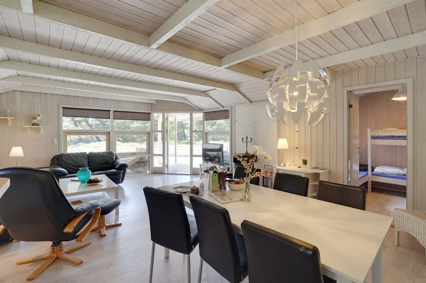 Hübsches Ferienhaus aus Holz mit Reetdach, 1992 gebaut und 2011 renoviert, auf einem großen, zurückgezogenen Naturgrundstück mit Heidekraut gelegen. Das Grundstück liegt ungestört und ist von Bäumen umzäunt. Zum Haus gehört eine große, teils überdachte Terrasse mit gutem Windschutz und Gartenmöbeln. Badezimmer mit 2-Pers. Whirlpool, Fußbodenheizung, Dusche und direktem Zutritt zur Sauna. Die hübsche, helle Küche ist mit dem Esszimmer kombiniert und ist mit u. a. Geschirrspüler, Waschmaschine und Wäschetrockner. Das Wohnzimmer ist mit großen Fenstern, Kaminofen, DVD-Spieler, TV mit Satellitenanschluss und Stereoanlage mit CD-Spieler eingerichtet. Ferner kostenlose, kabellose Internetverbindung vorhanden (Computer ist mitzubringen). Die Schlafplätze verteilen sich auf 3 Zimmer; 1 mit Doppelbett, 1 mit Doppelbett und 1 Einzelbett sowie 1 mit Etagenbett und 1 Einzelbett. Für die kleinen Feriengäste stehen Kinderbett, Kinderhochstuhl, Sandkasten und Schaukel zur Verfügung.