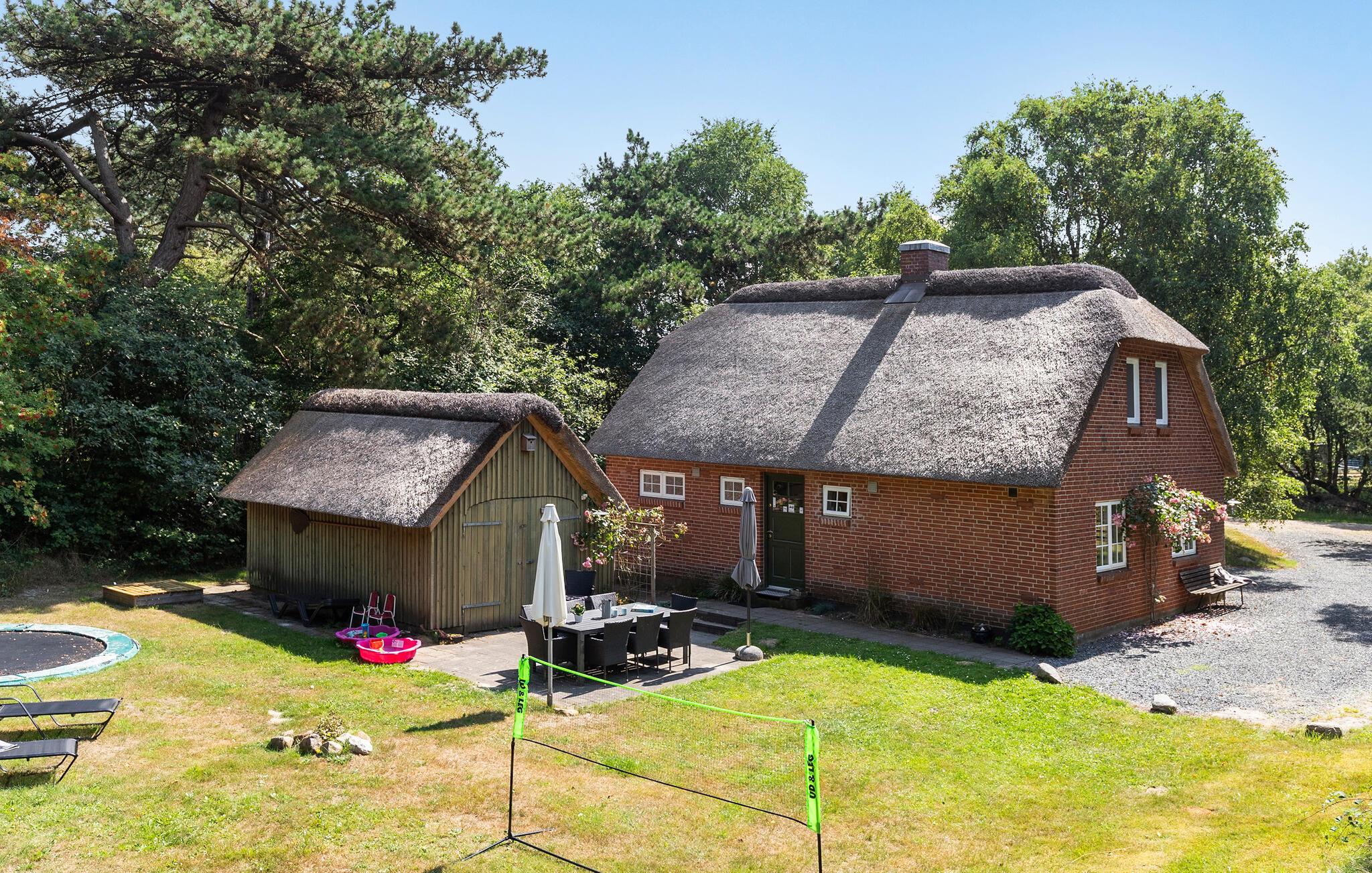 Charmantes Ferienhaus mit Strohdach und großem Garten in Toftum auf Rømø, ideal für einen naturnahen und komfortablen Urlaub.
